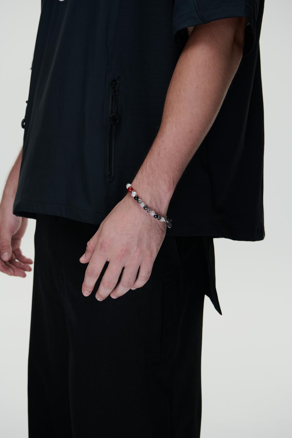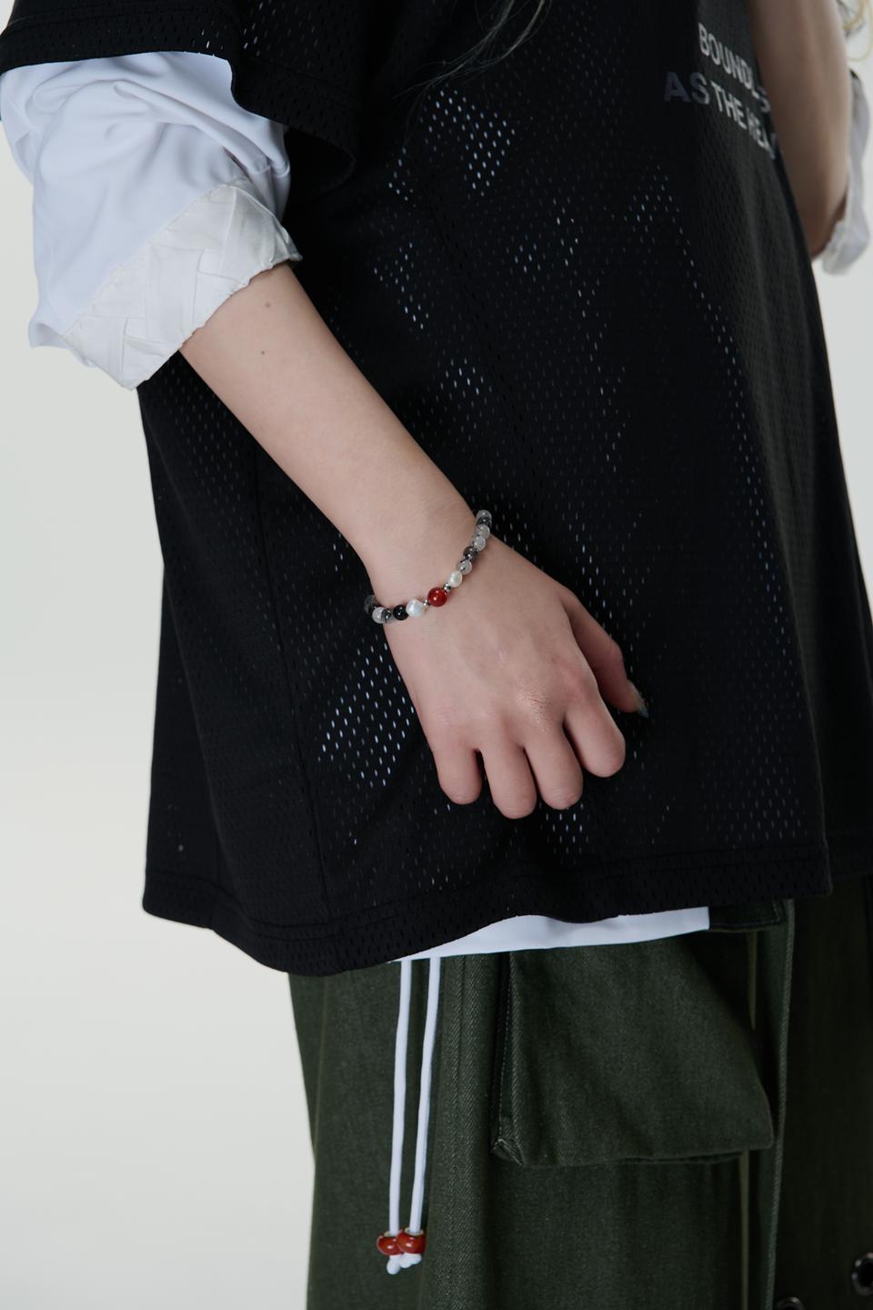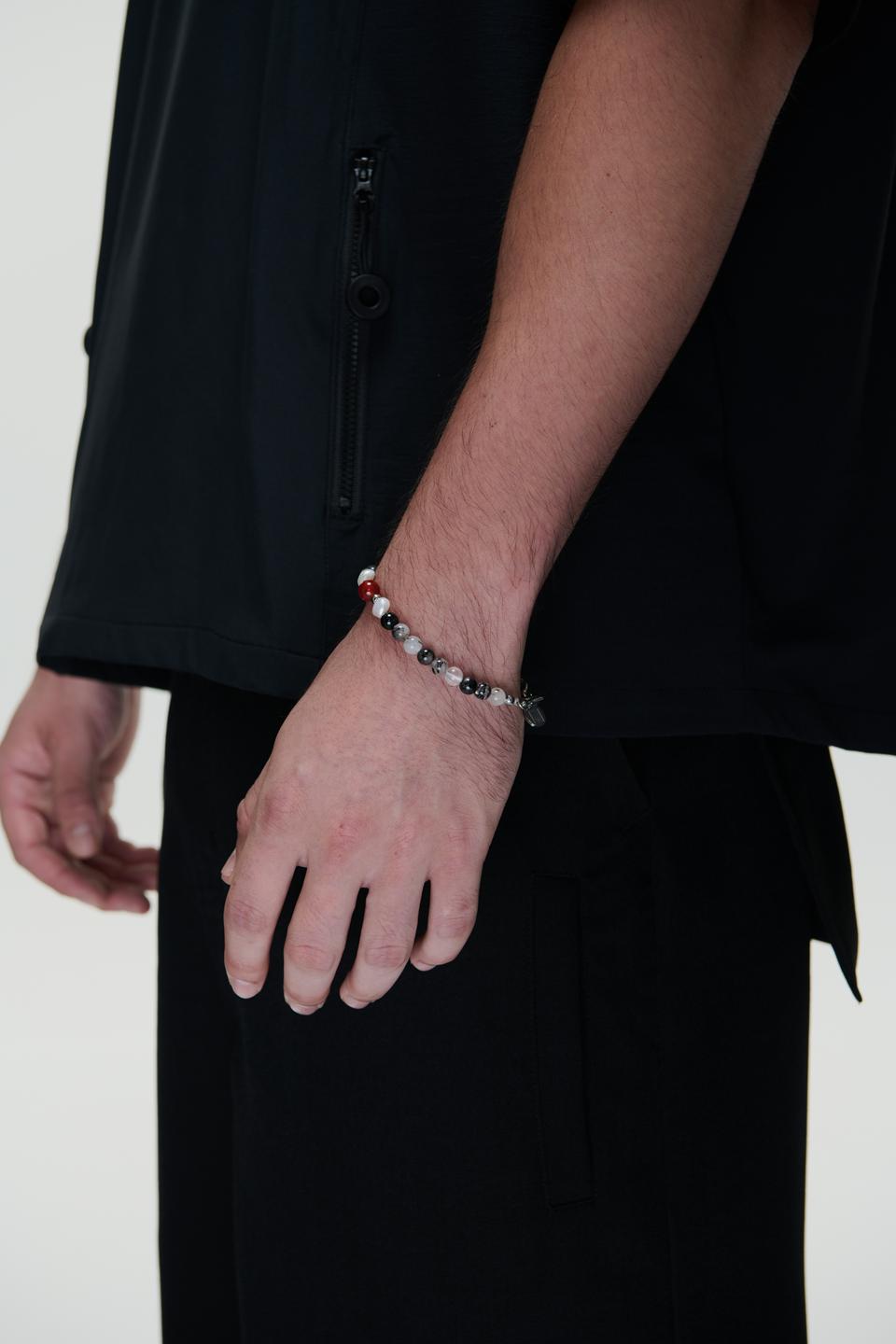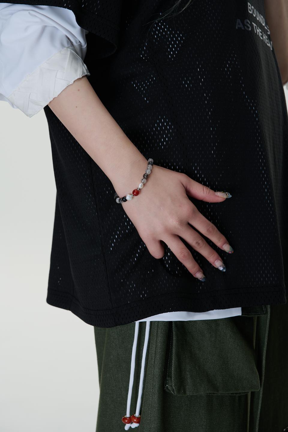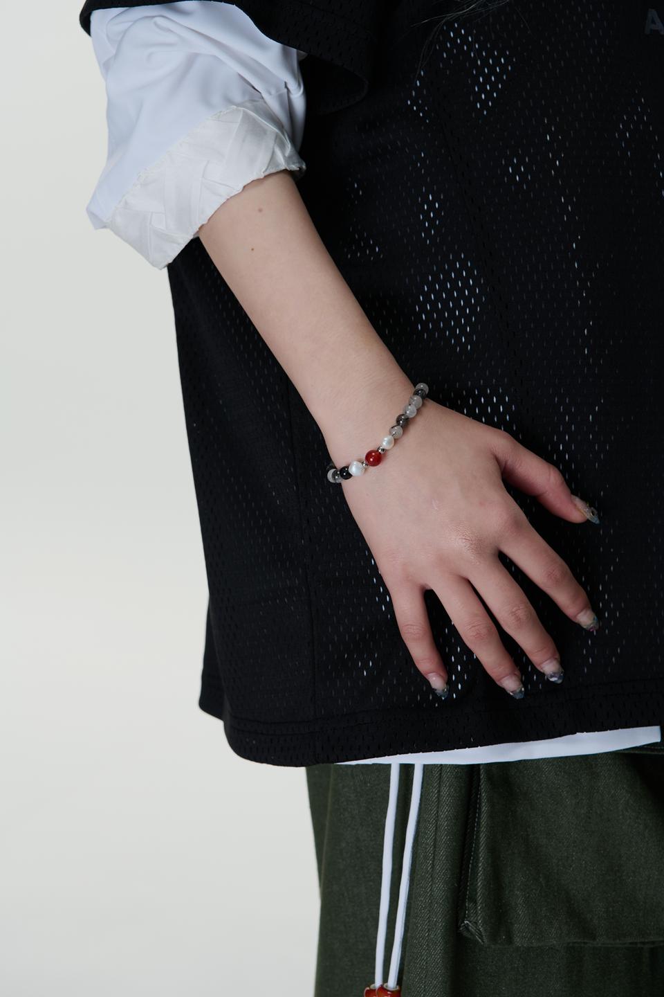 朱雀-淡水珍珠/黑髮晶/月光石/紅瑪瑙/天然石-手鍊