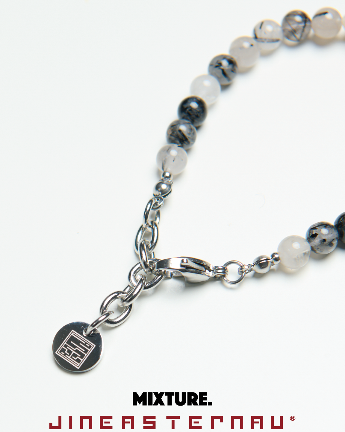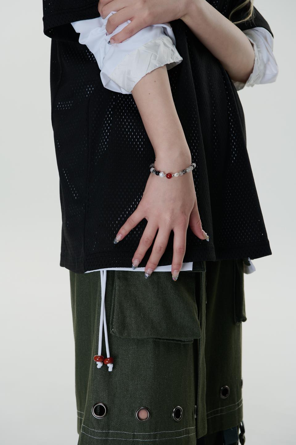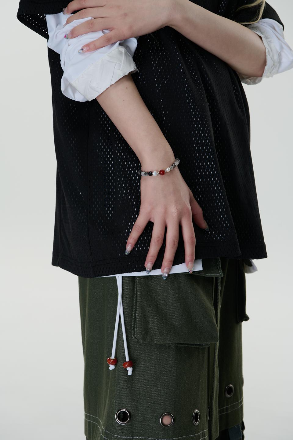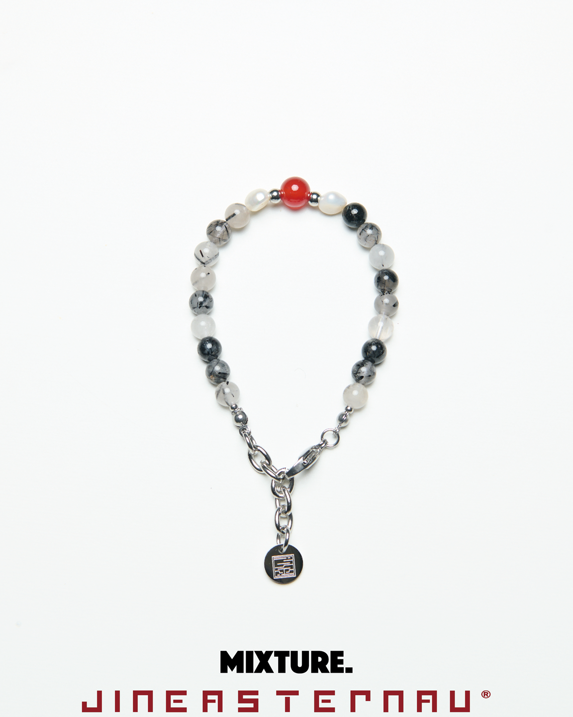 *材質:使用鋼/ 淡水珍珠 / 天然黑髮晶切割圓珠/天然紅瑪瑙切割圓珠/因皆為天然生成之玉石珠,每款顏色及紋路皆為獨一無二之款式。尾部扣有雙品牌特製聯名鋼牌