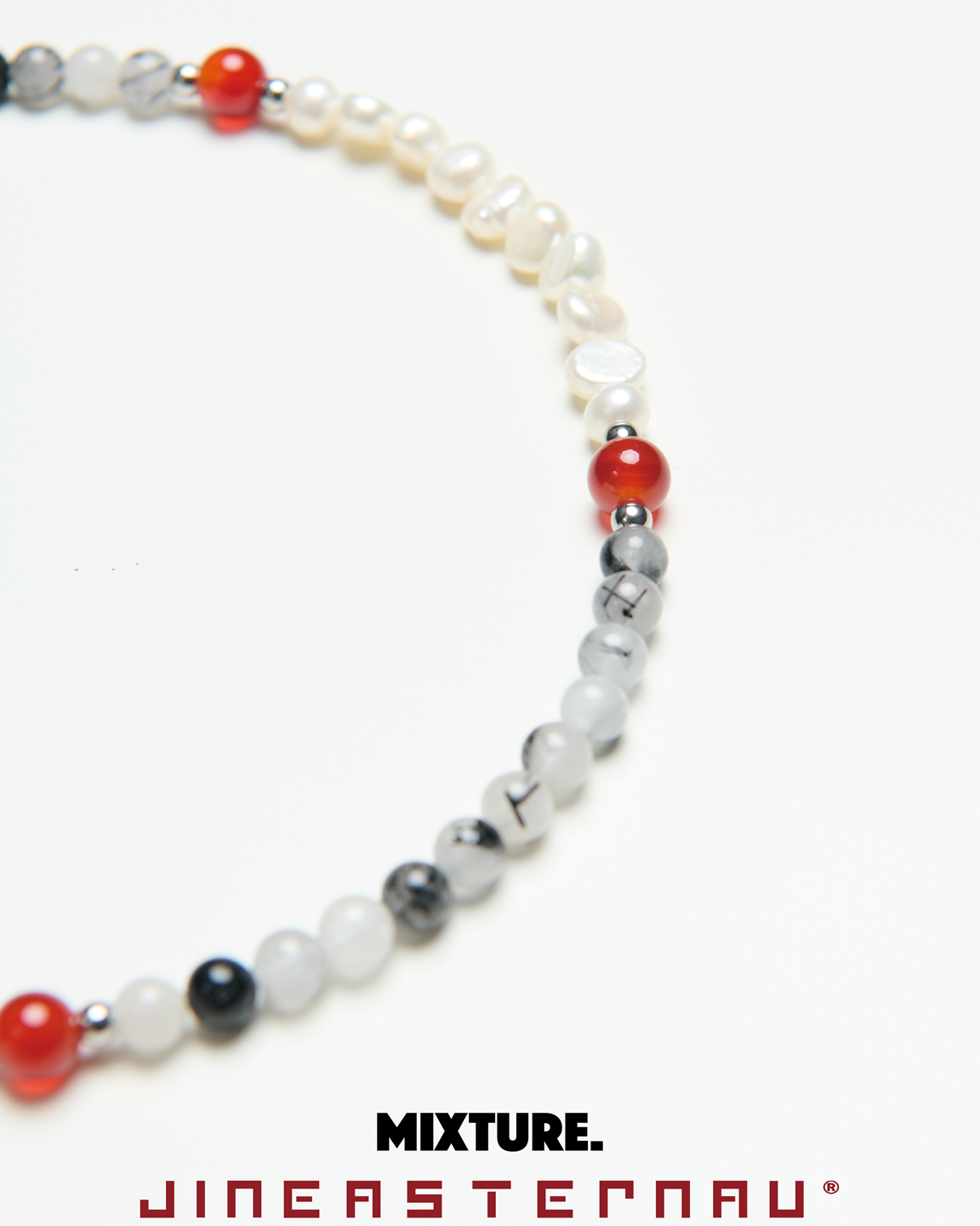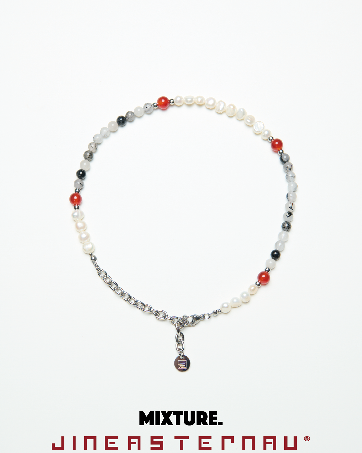 *材質:純鋼/ 淡水珍珠 / 天然黑髮晶切割圓珠 / 天然月光石切割圓珠 / 天然紅瑪瑙切割圓珠,因皆為天然生成之玉石珠,每款顏色及紋路皆為獨一無二之款式。使用較長的延長鏈使佩戴有更多的搭配自由性。尾部扣有雙品牌特製聯名鋼牌