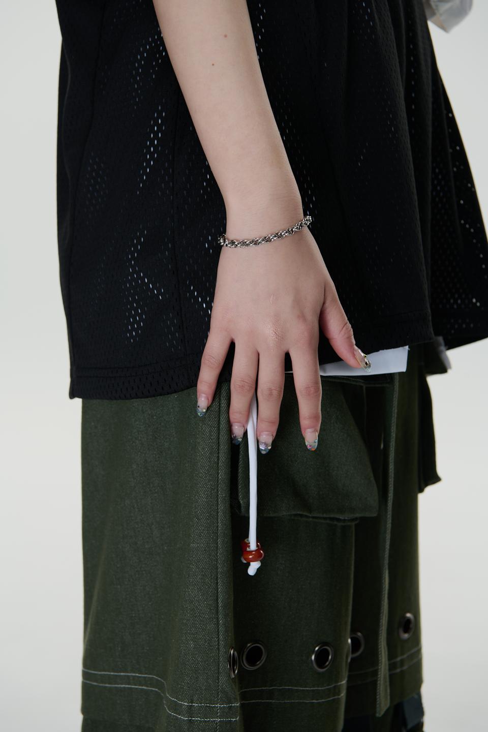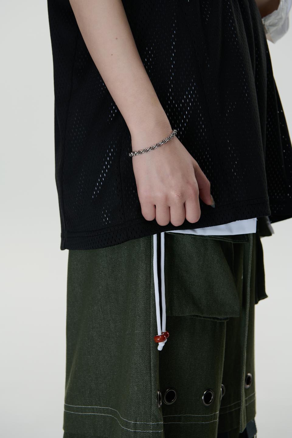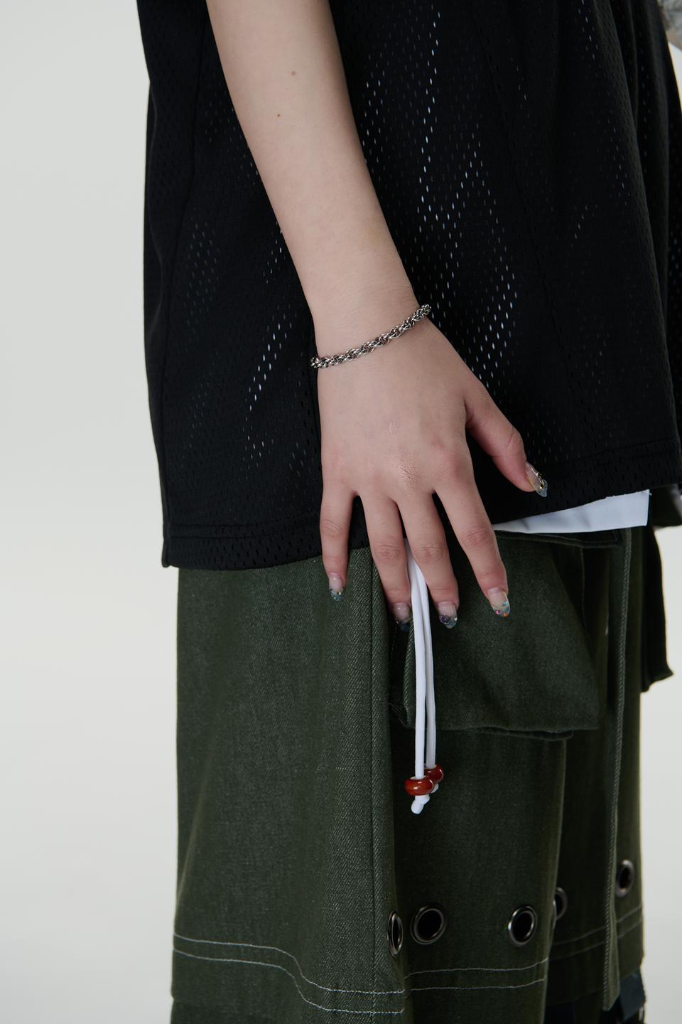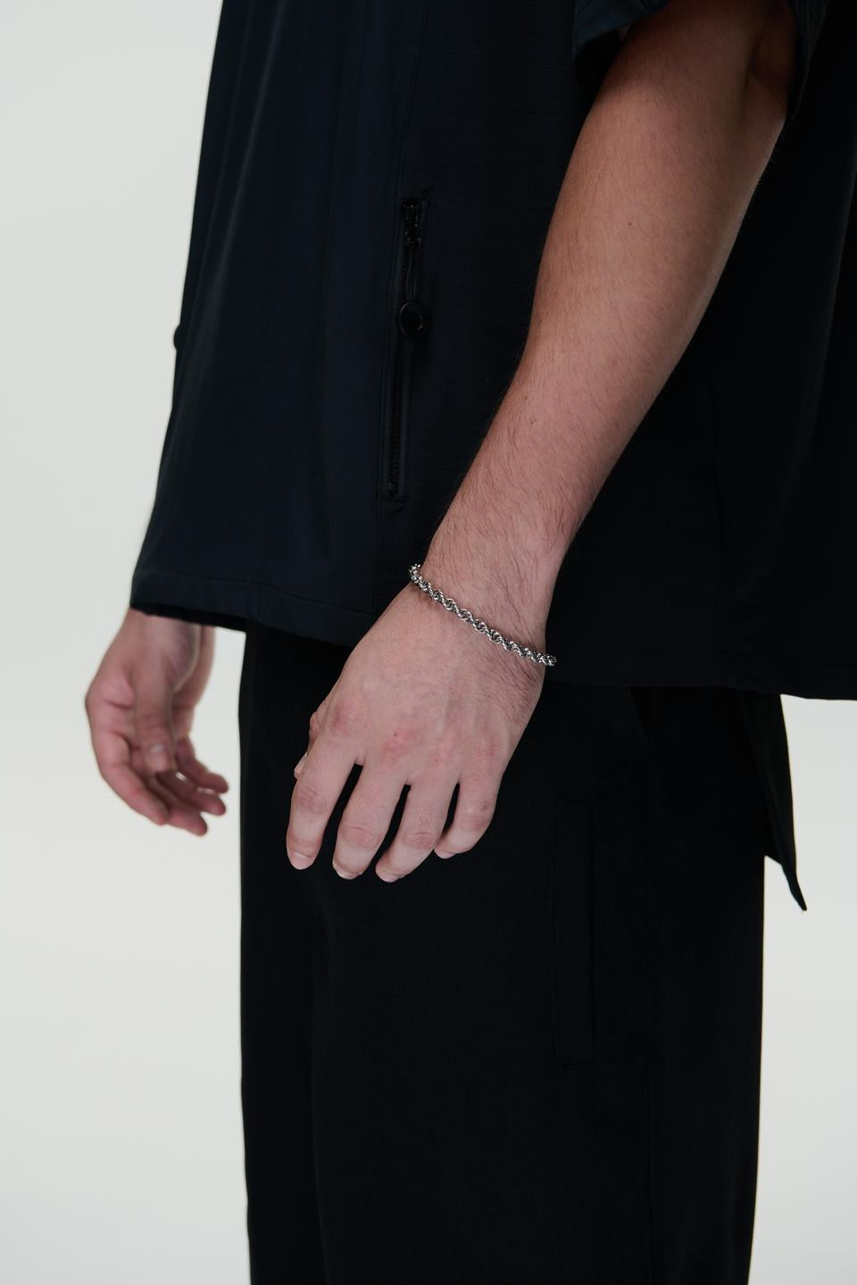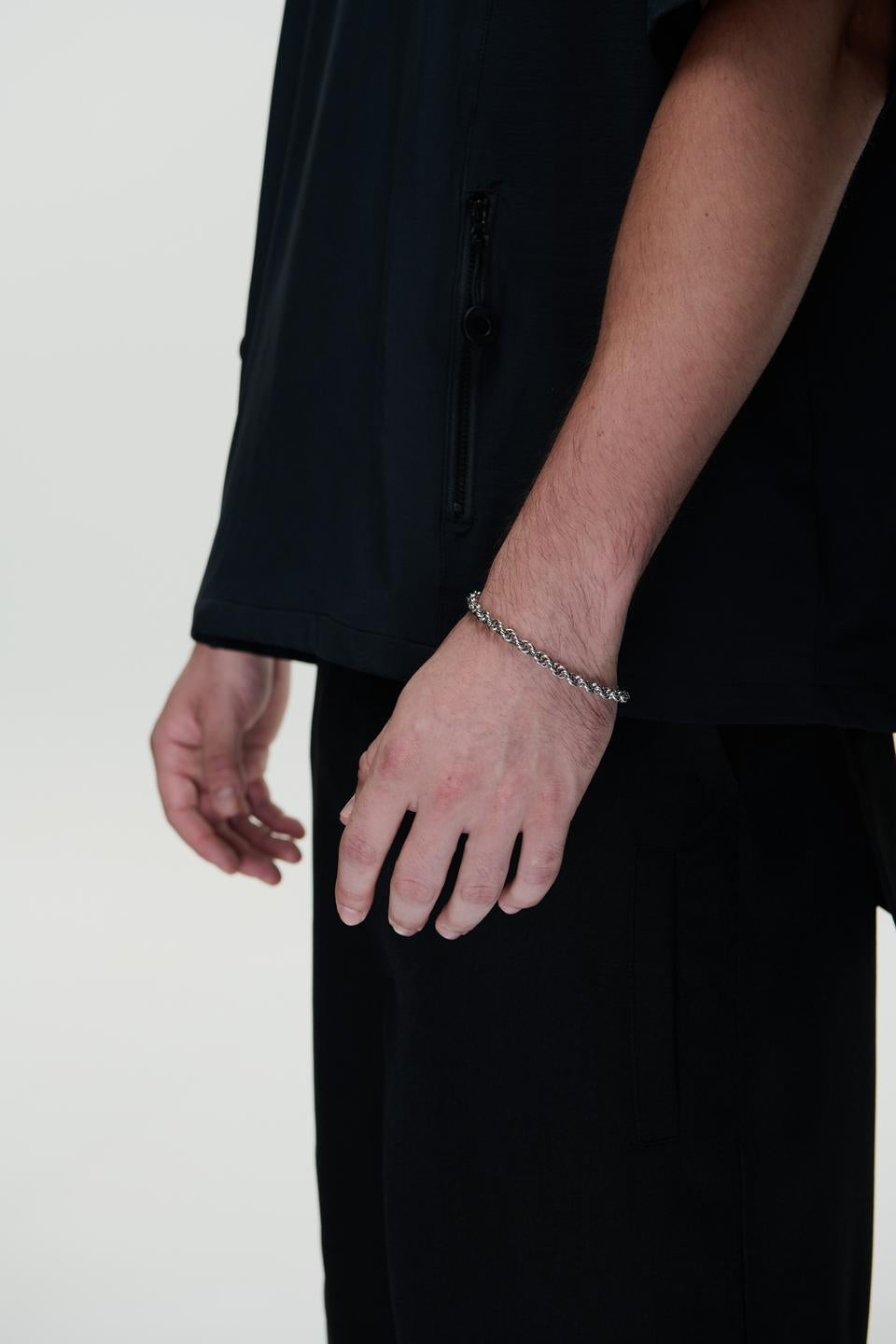 *使用雙股交織編織鏈,以強烈的立體編織紋理打造出極具份量感的輪廓,鍊身細節採用細密鏈節層層交織,象徵中式結繩文化中的「連結」、「守護」寓意。亦有同款項鍊可成套搭配。尾部扣有雙品牌特製聯名鋼牌