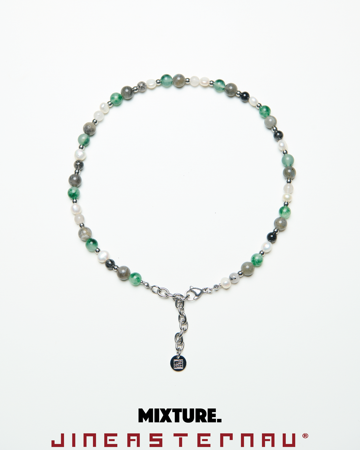 *材質:鋼/ 淡水珍珠 / 天然黑髮晶切割圓珠/ 天然綠水晶切割圓珠 / 天然月光石切割圓珠 /因皆為天然生成之玉石珠,每款顏色及紋路皆為獨一無二之款式。尾部扣有雙品牌特製聯名鋼牌