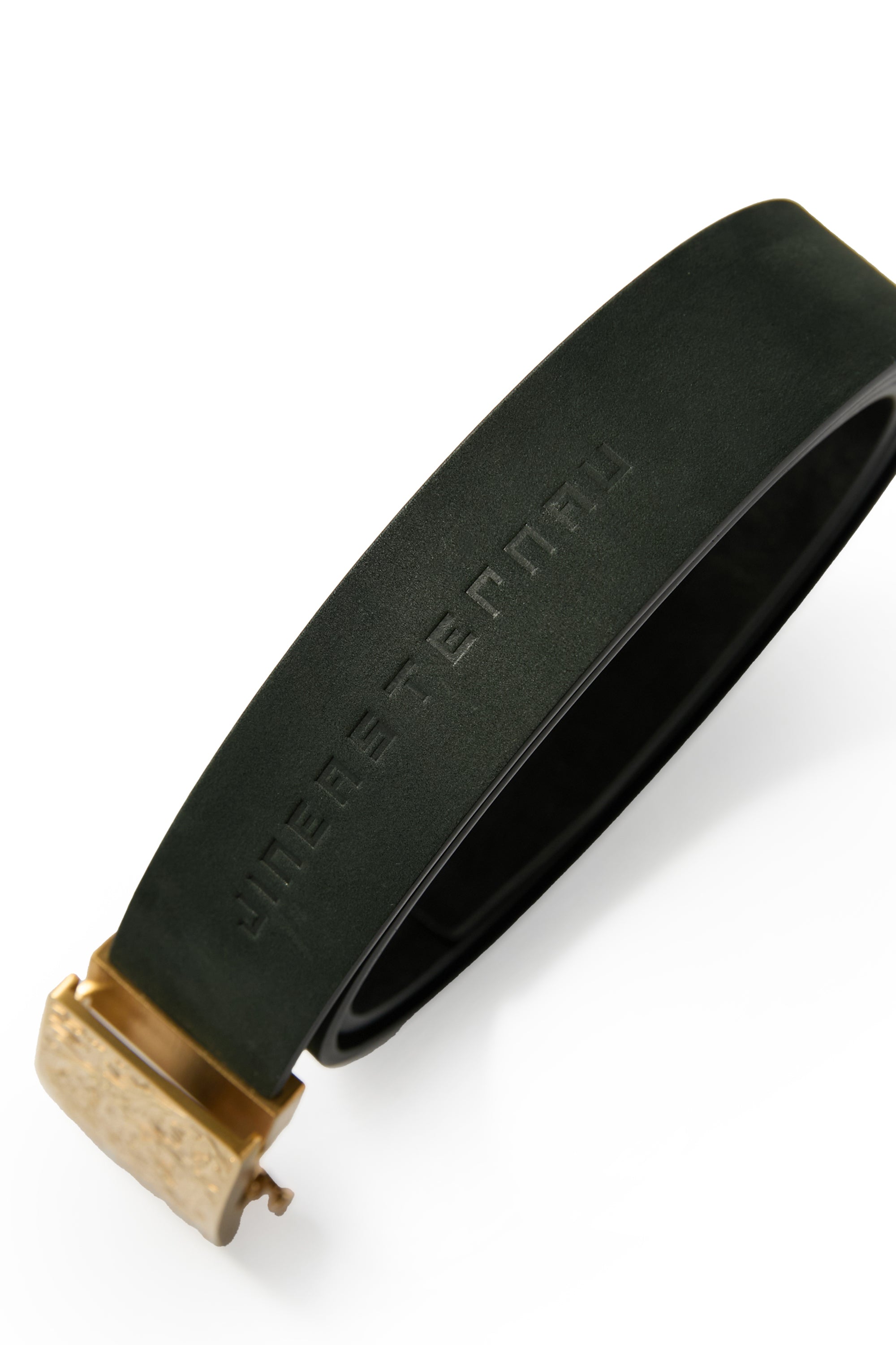 皮帶帶身同樣採用頭層牛皮麂皮革,油脂含量與密度優於一般皮革,其天然韌性也使整條皮帶更具壽命,無論日常穿搭或儀式場合,都能維持高質感的呈現。