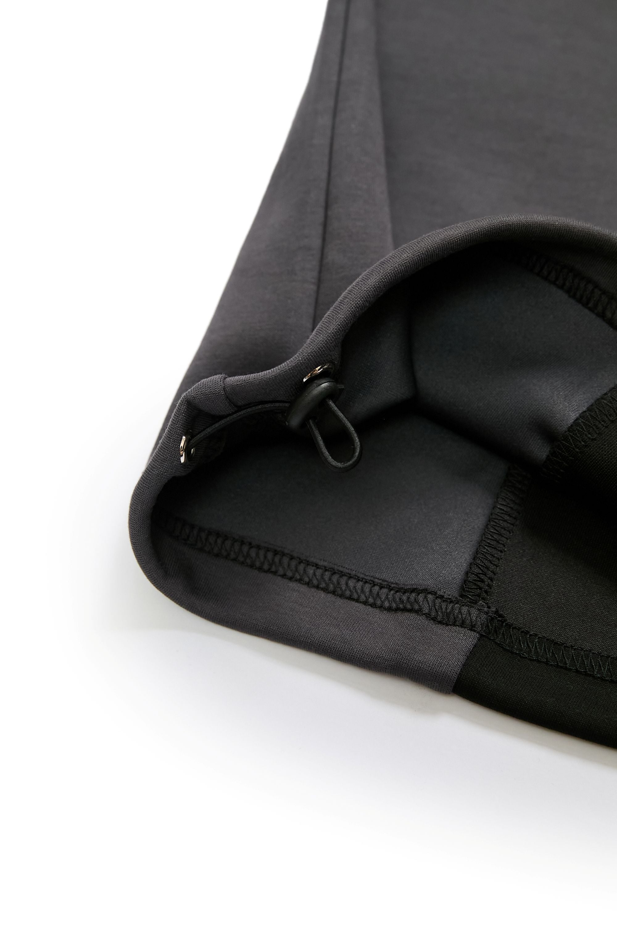 下擺兩側抽繩可自由調整輪廓,袖口金屬夾標則低調彰顯品牌識別。