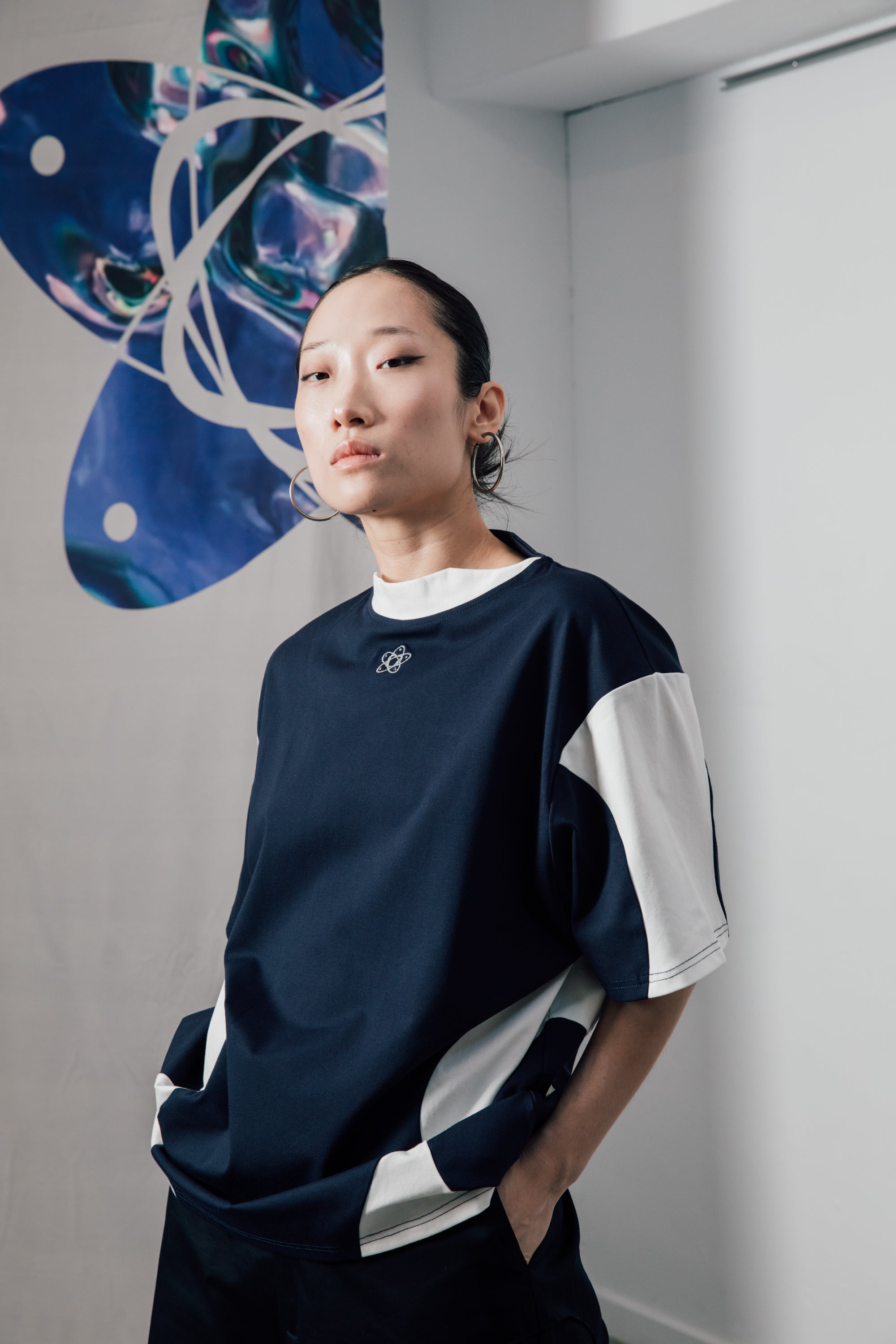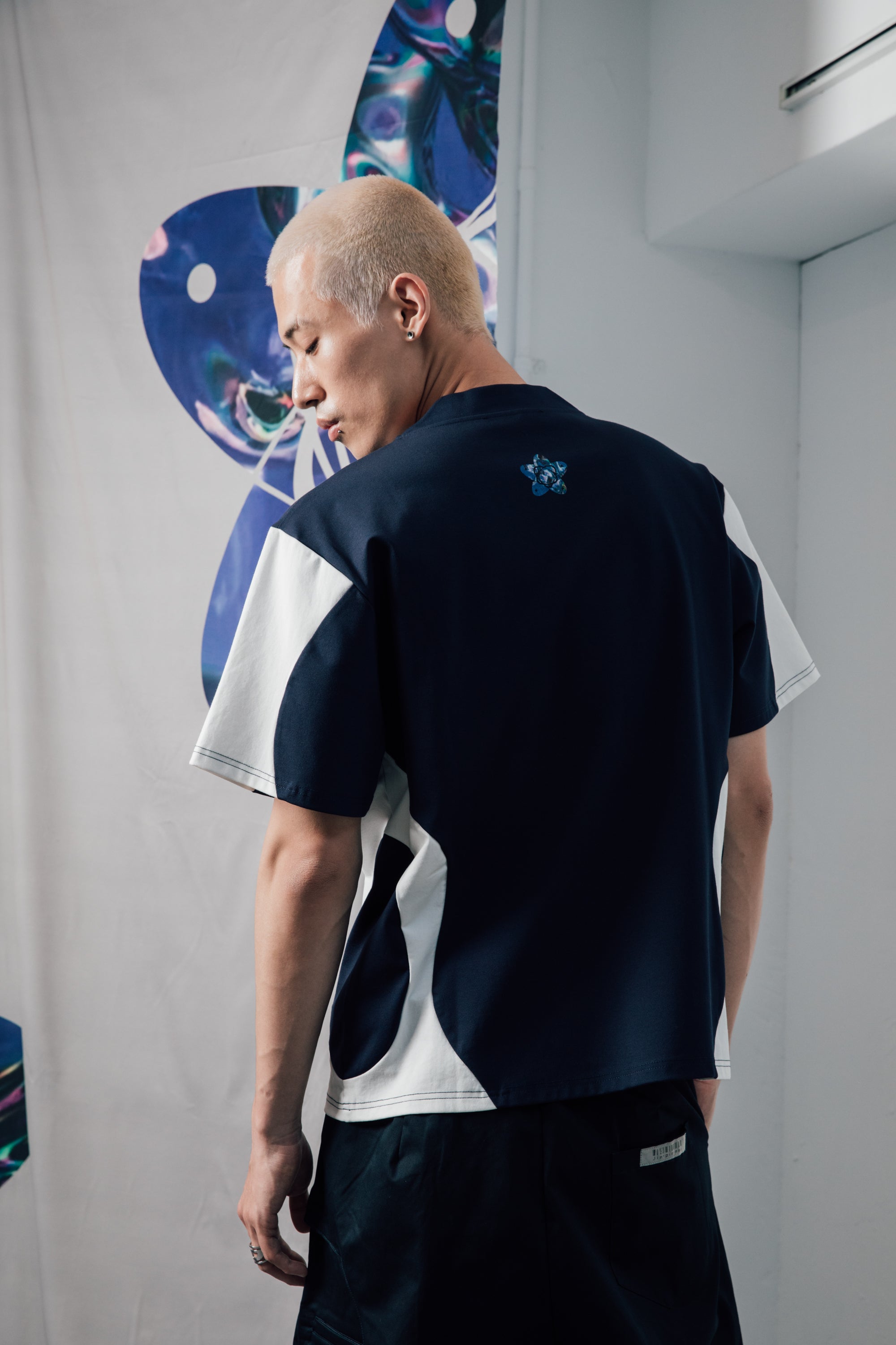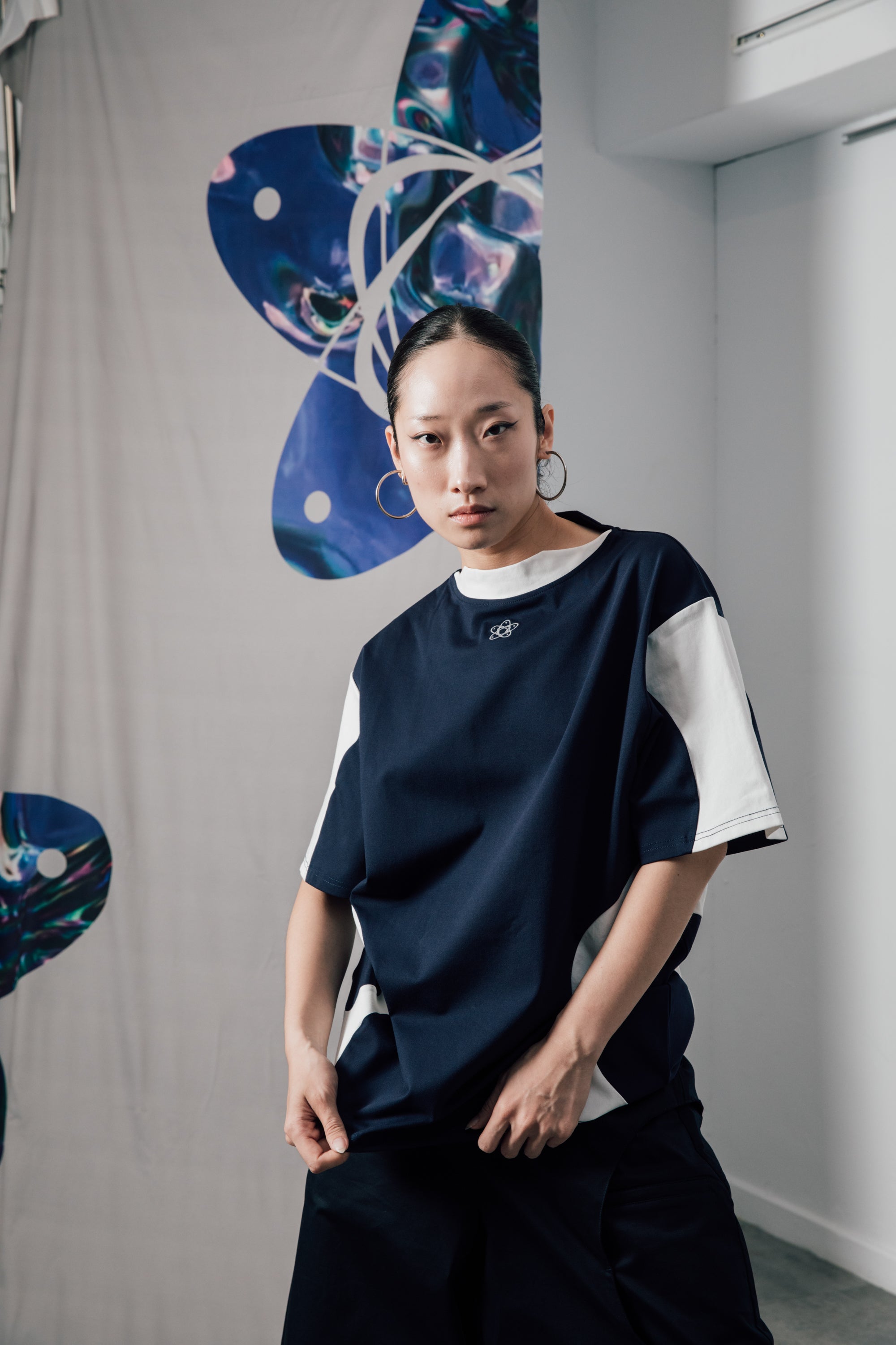 這件立領上衣結合未來感與東方想像,打破傳統T-shirt對稱的制式印象。領片設計融合梅花意象與解構手法,延伸出具有雕塑感的輪廓,修飾頸部線條的同時,重新思考衣服上身後的視覺感,是一件柔中帶剛、個性明確的上衣單品。
