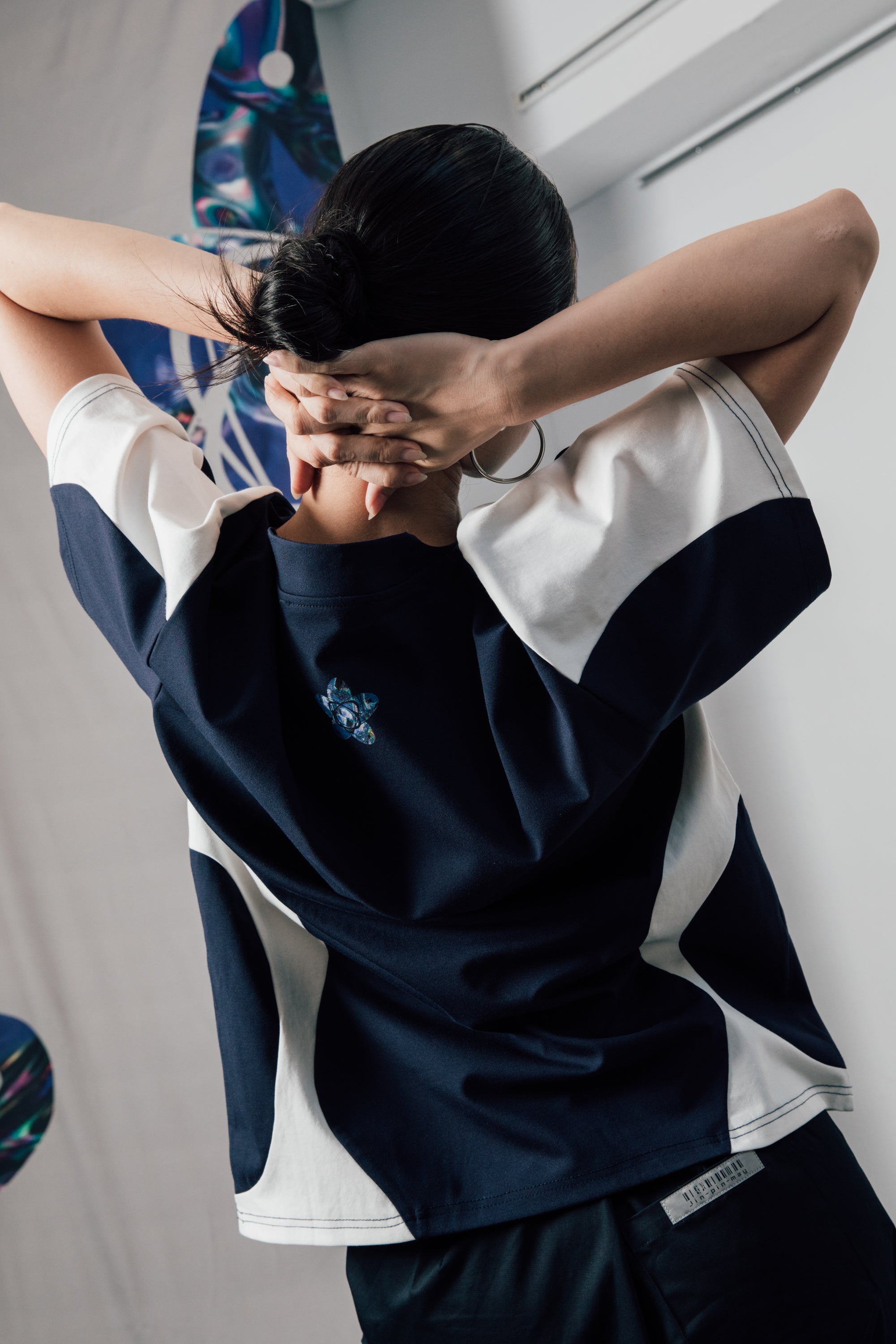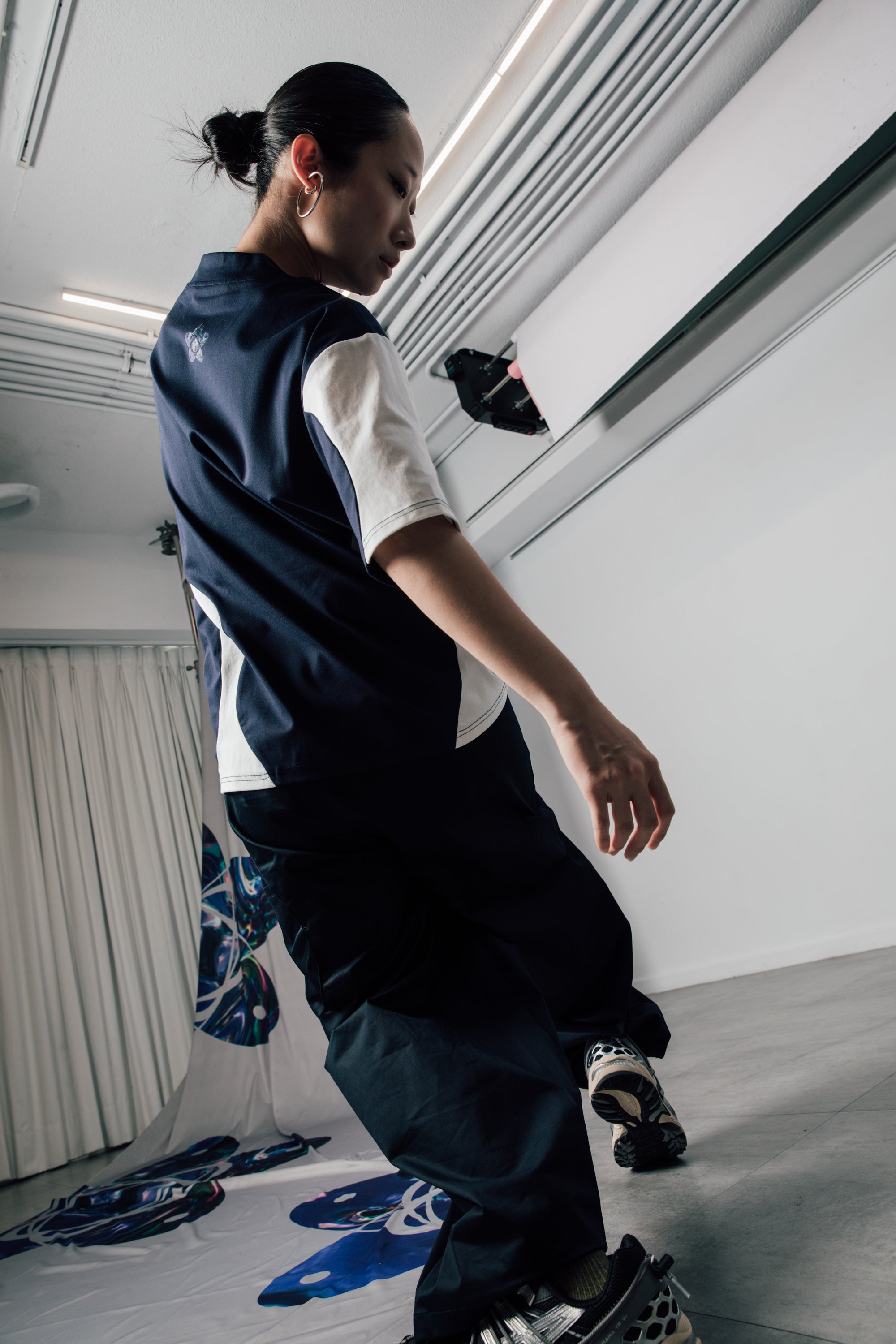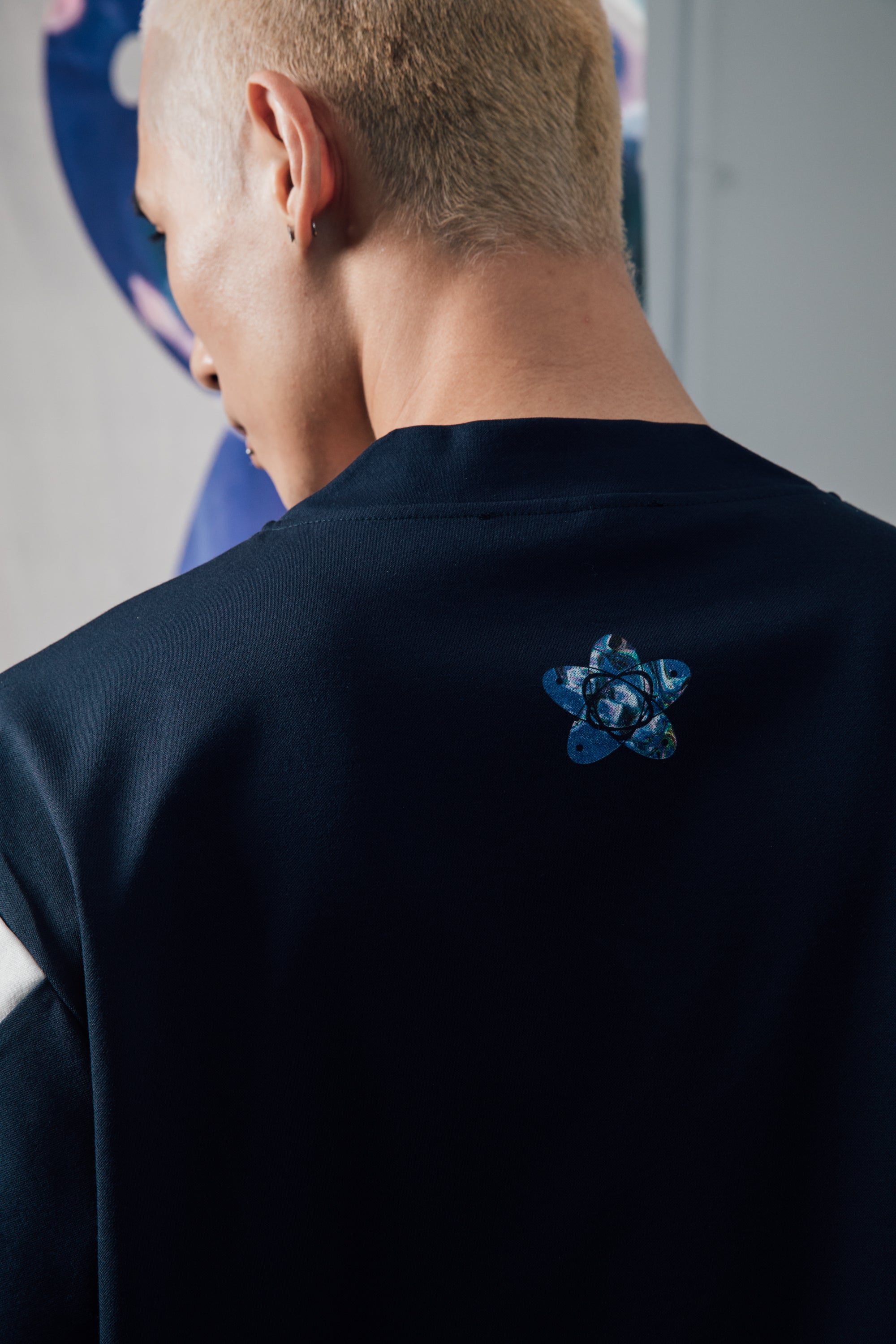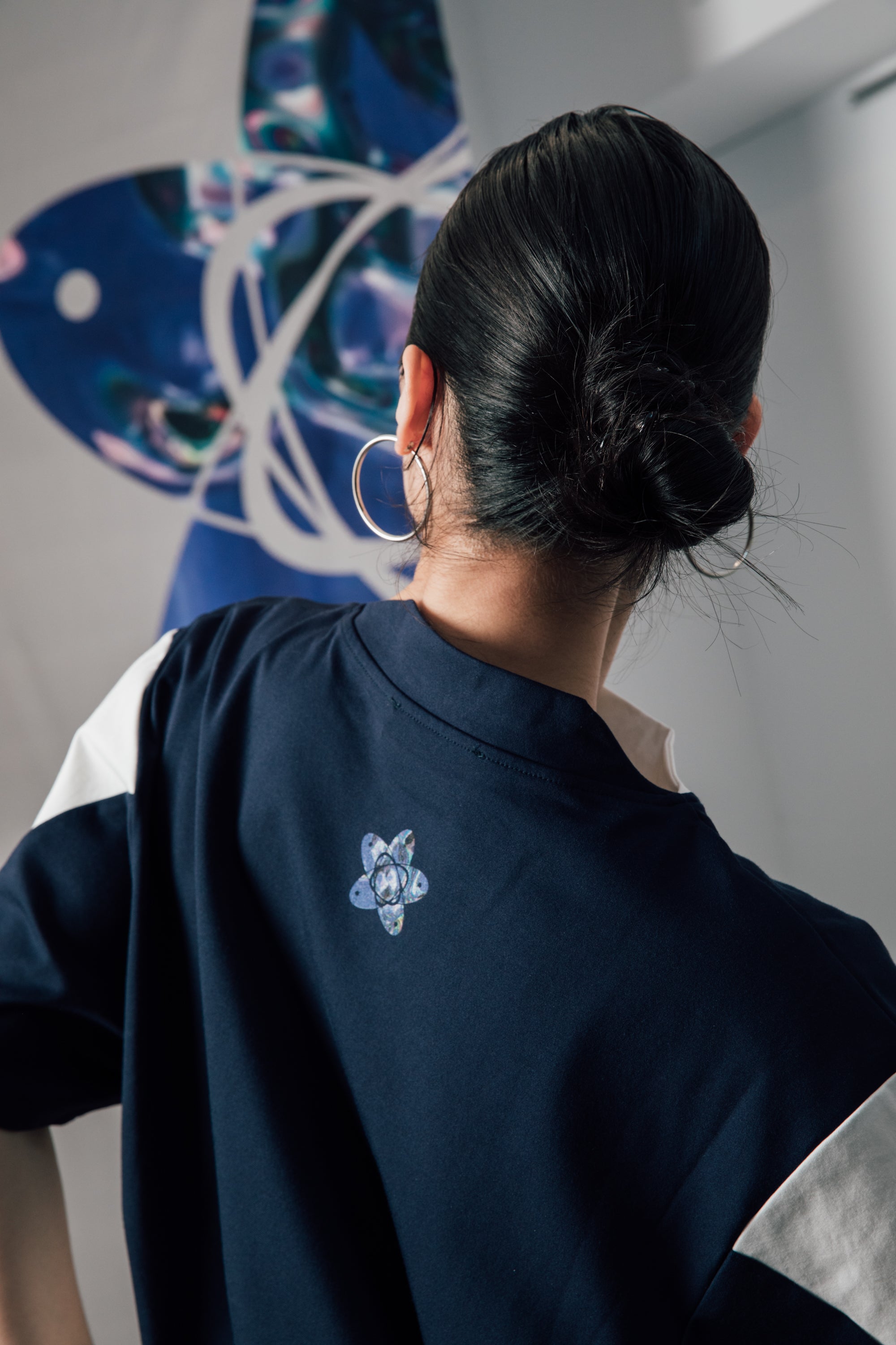 這件立領上衣結合未來感與東方想像,打破傳統T-shirt對稱的制式印象。領片設計融合梅花意象與解構手法,延伸出具有雕塑感的輪廓,修飾頸部線條的同時,重新思考衣服上身後的視覺感,是一件柔中帶剛、個性明確的上衣單品。