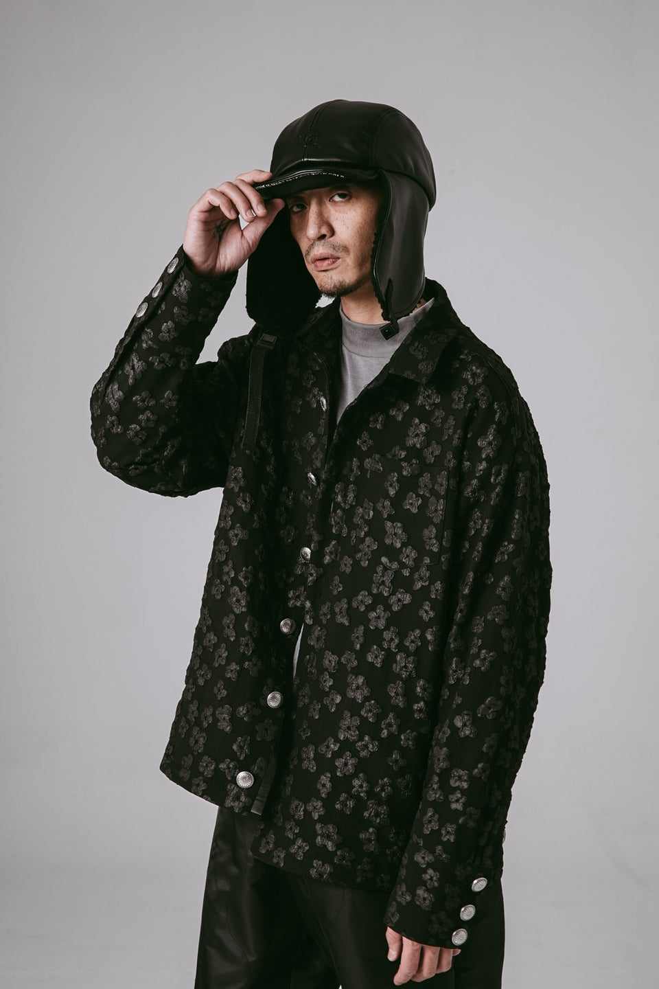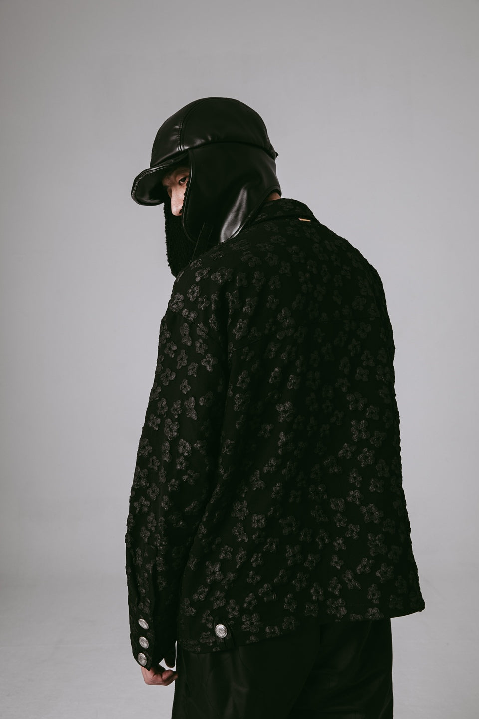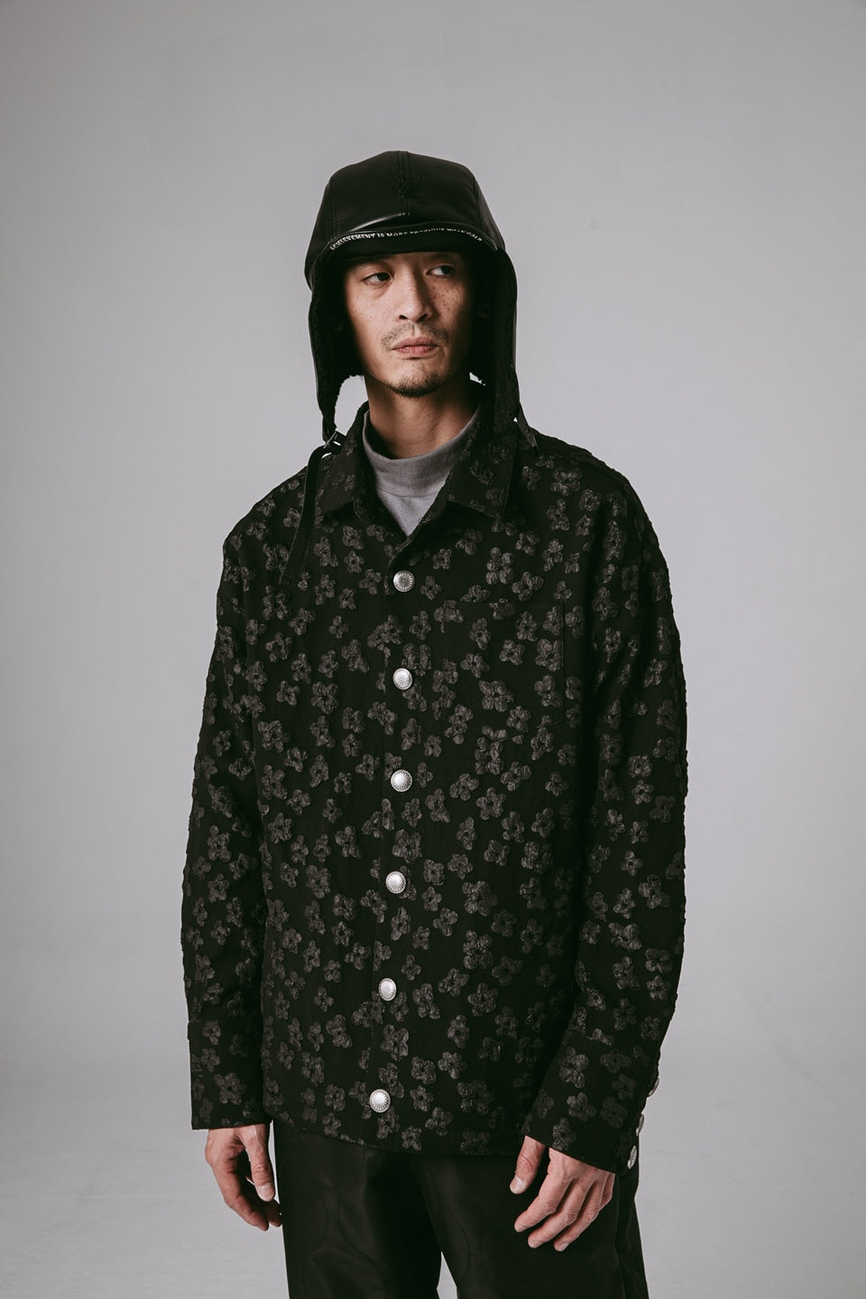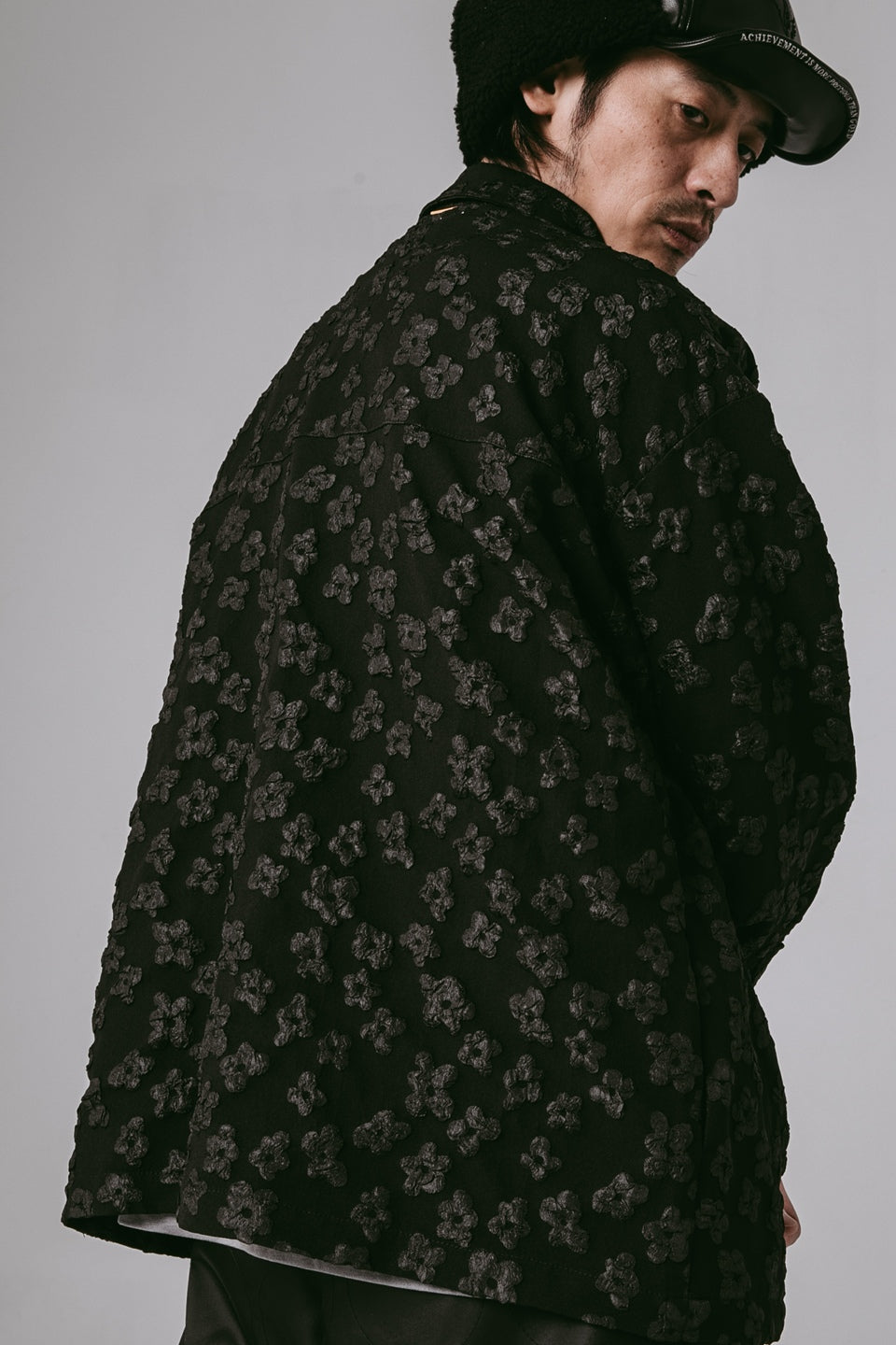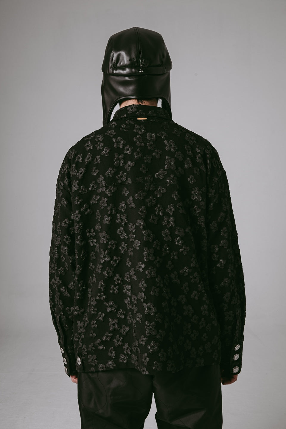 JINEASTERNAU 浮雕滿版緹花襯衫-黑色