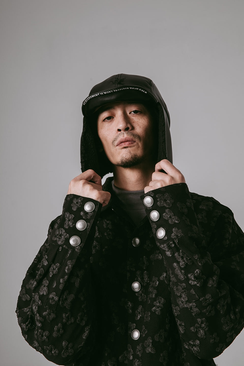 銀色帶有傳統工藝的民族風鈕扣,點綴著全黑的襯衫,為低調的注入精神性的視覺重點。