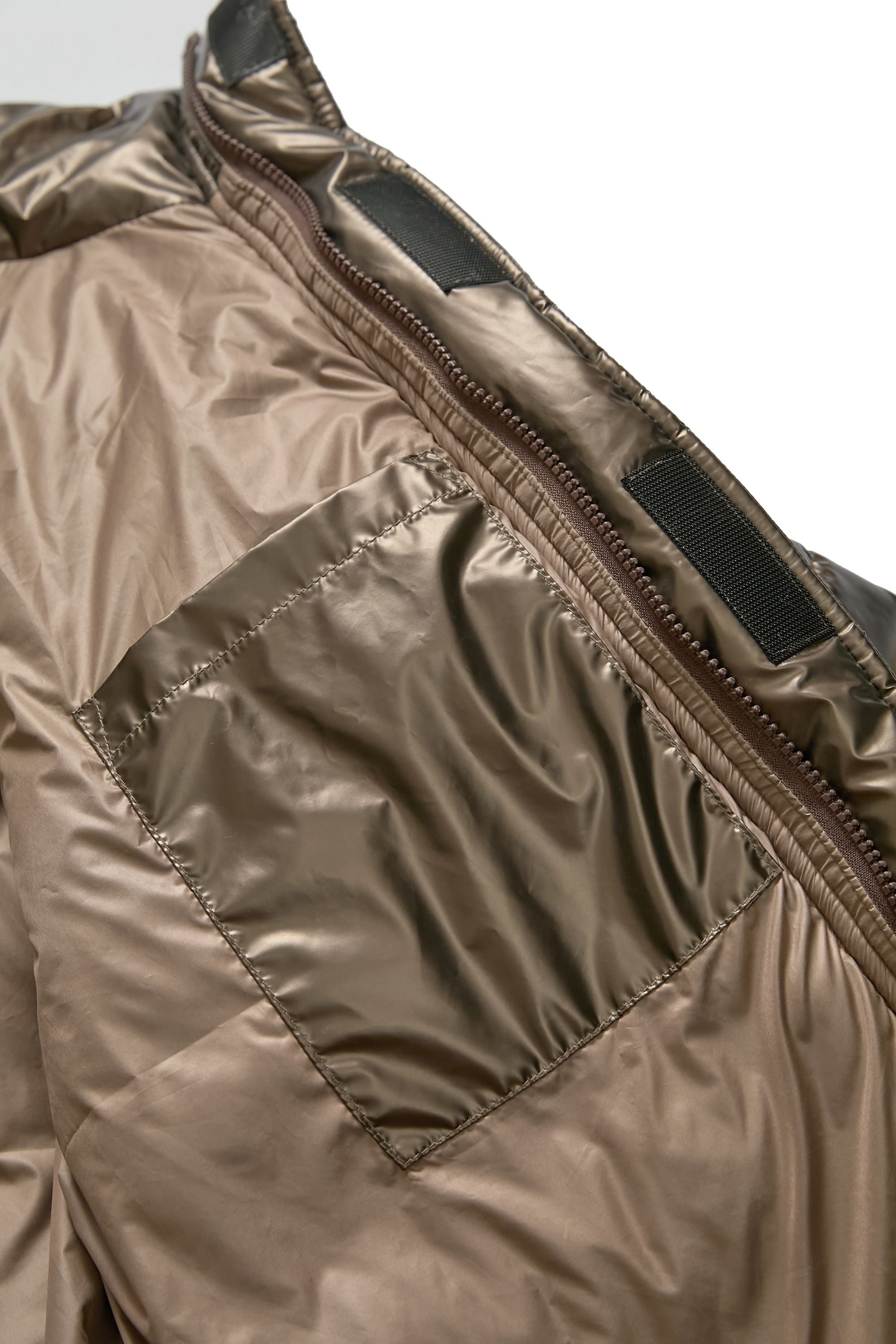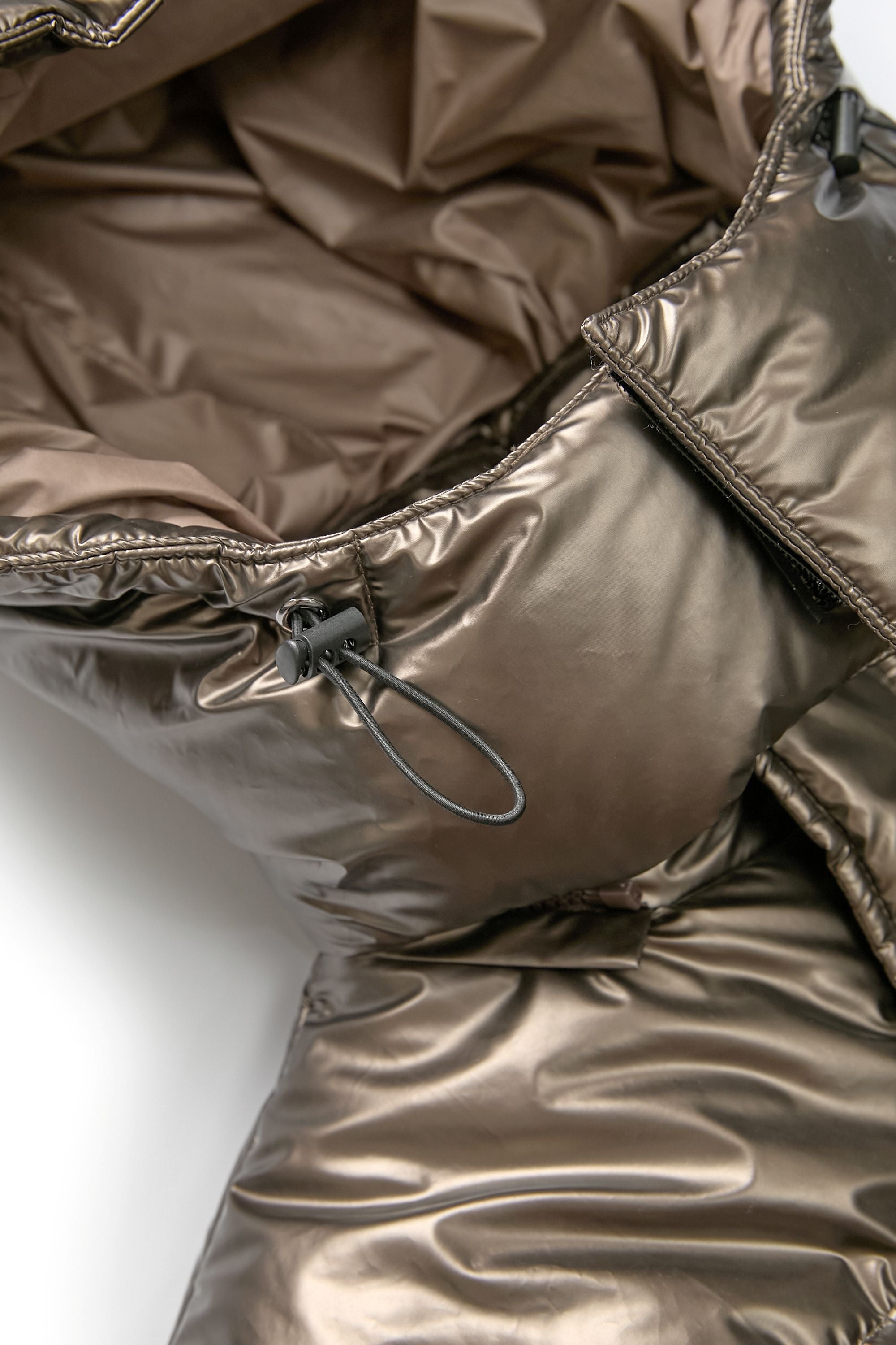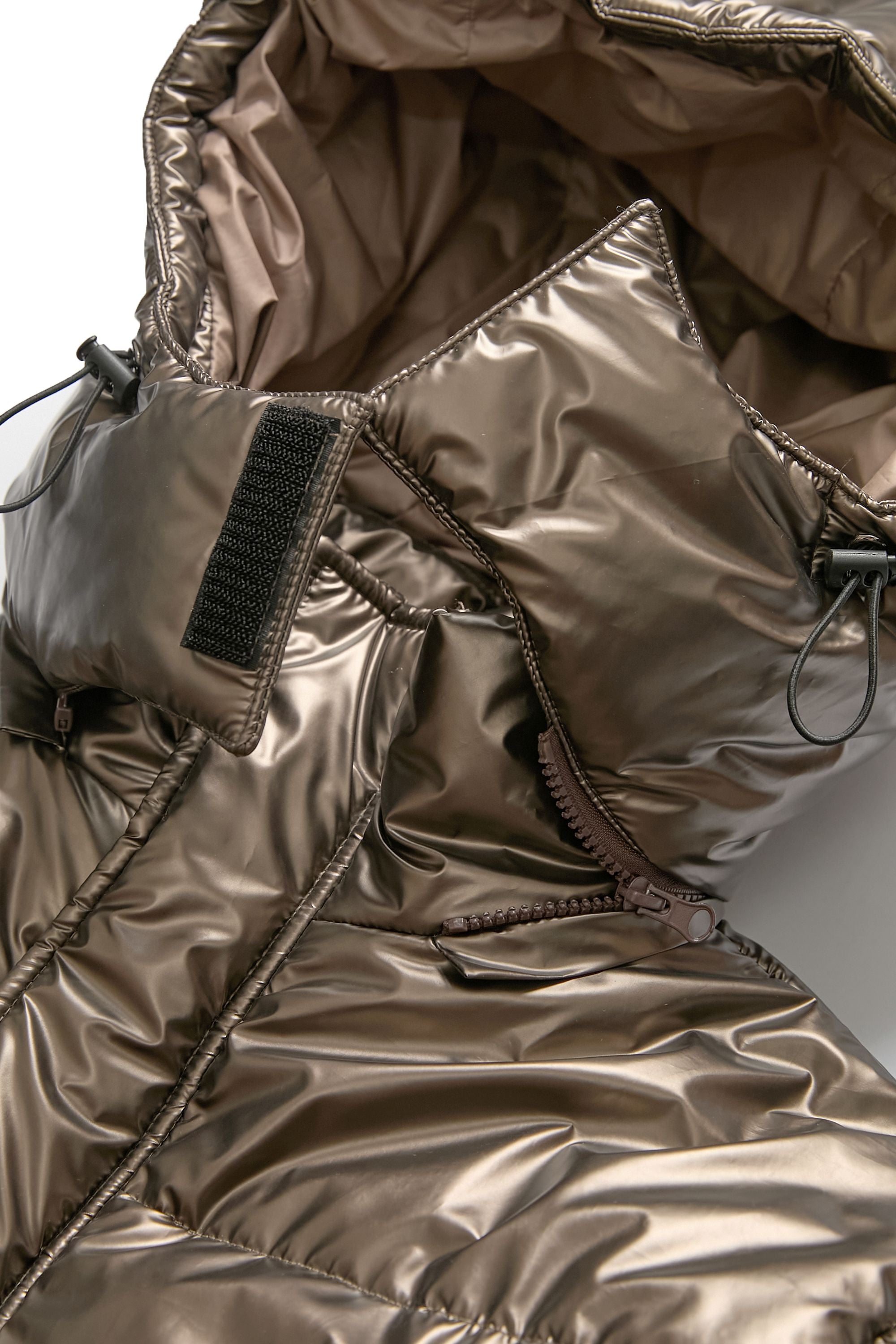 具金屬光澤與未來質地感,防風、防潑水且輕盈保暖。