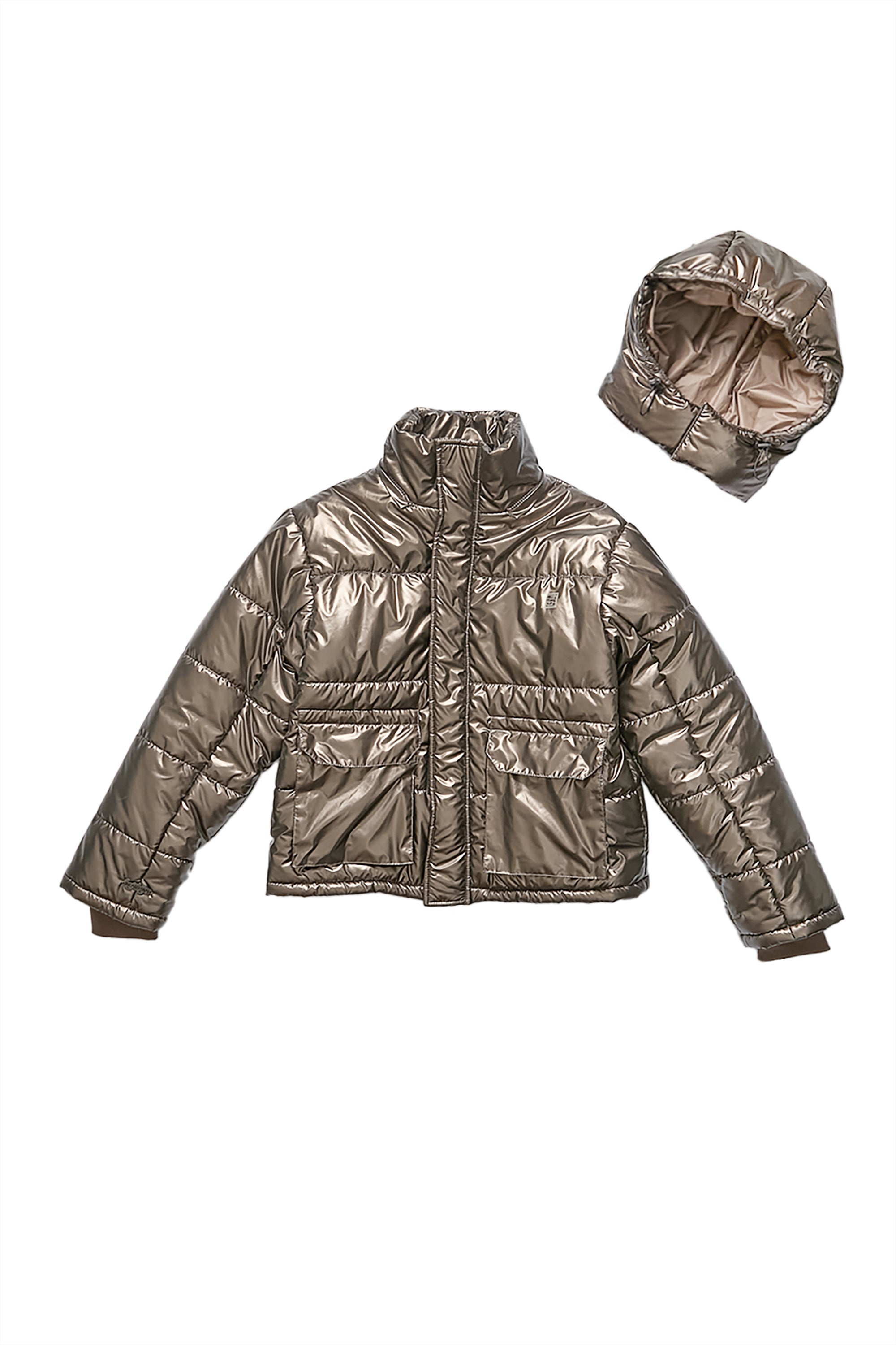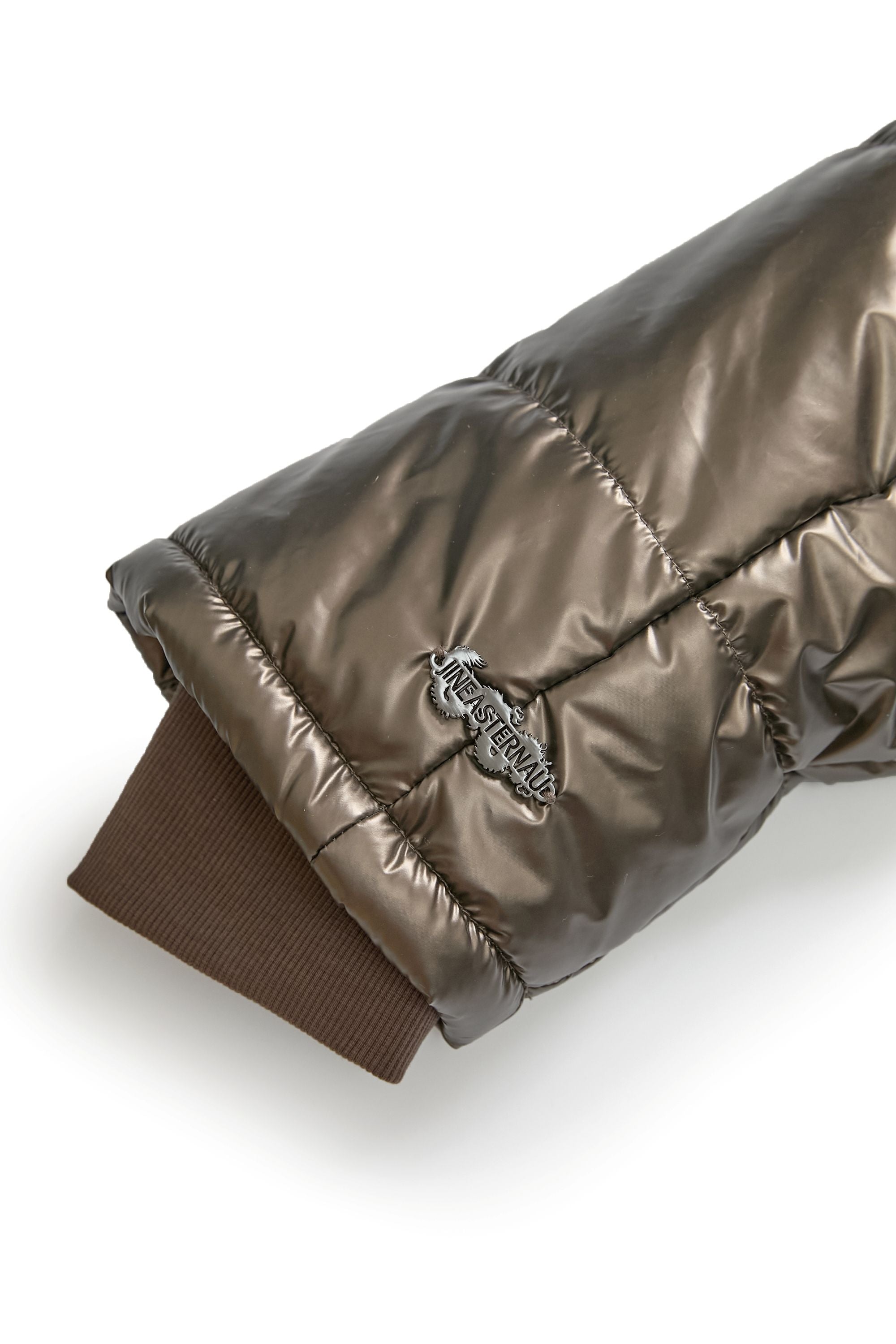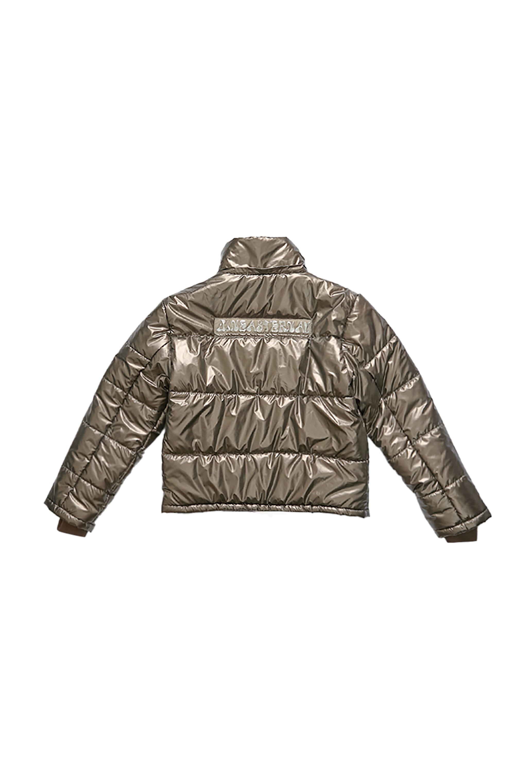 具金屬光澤與未來質地感,防風、防潑水且輕盈保暖。