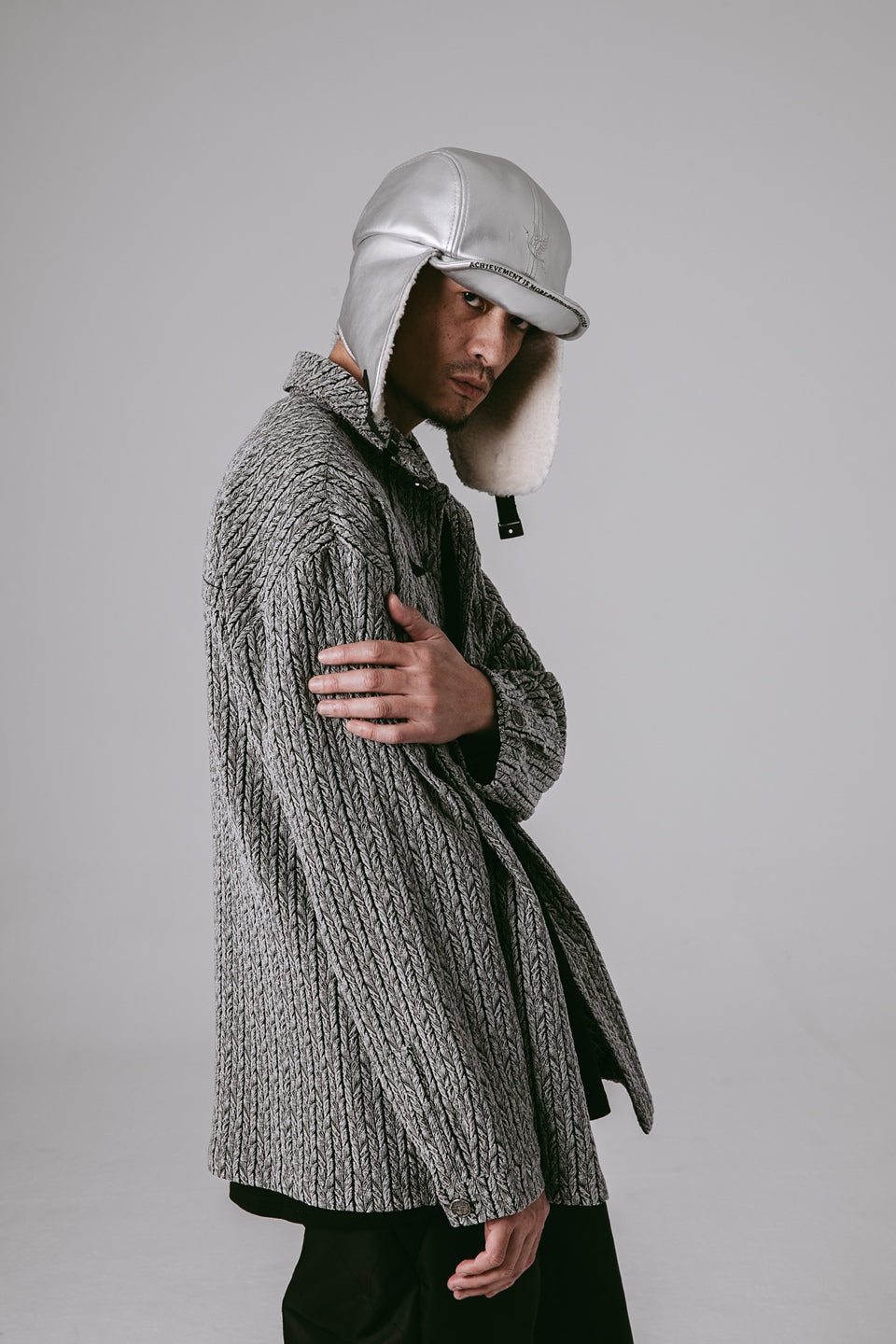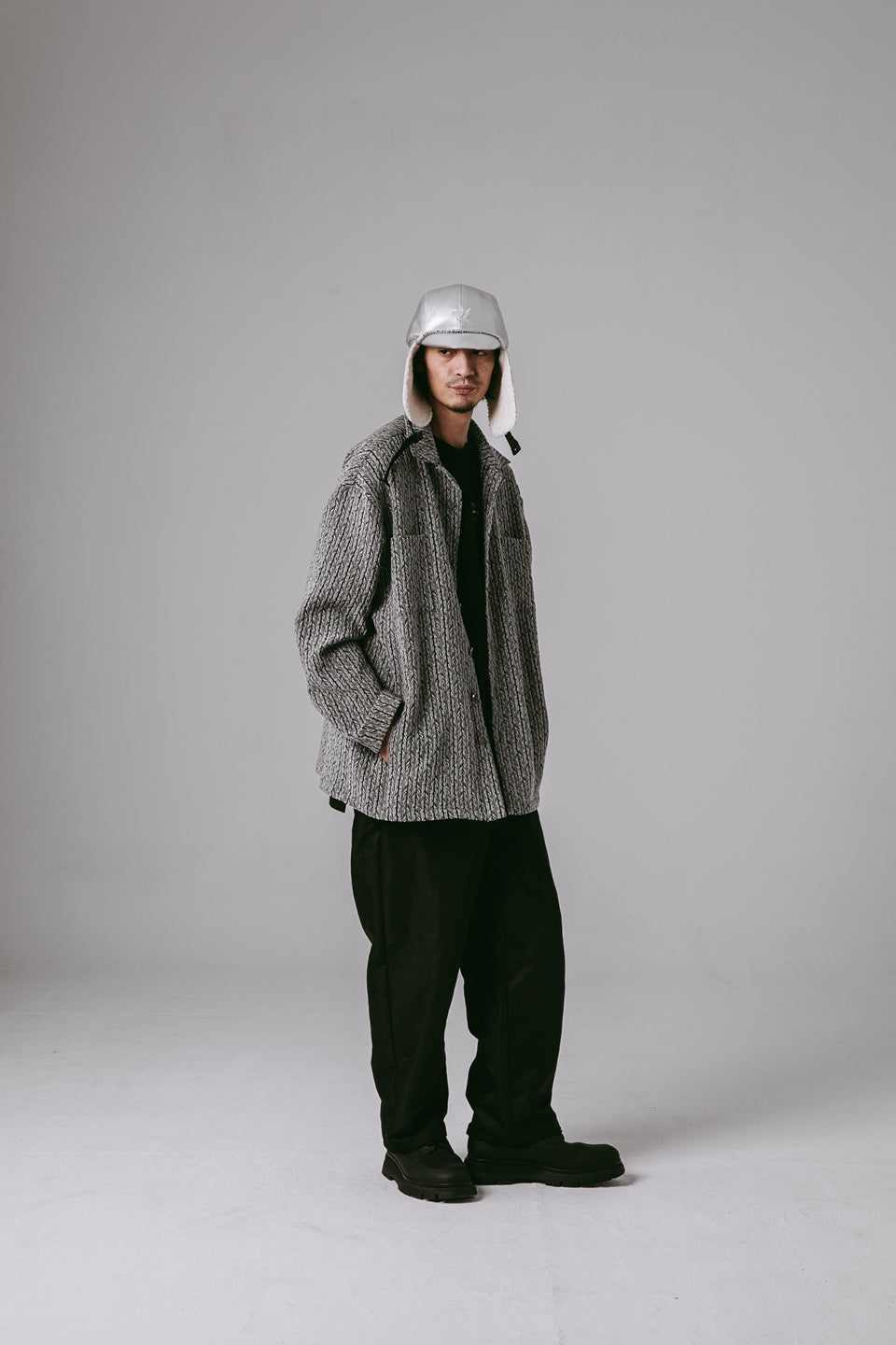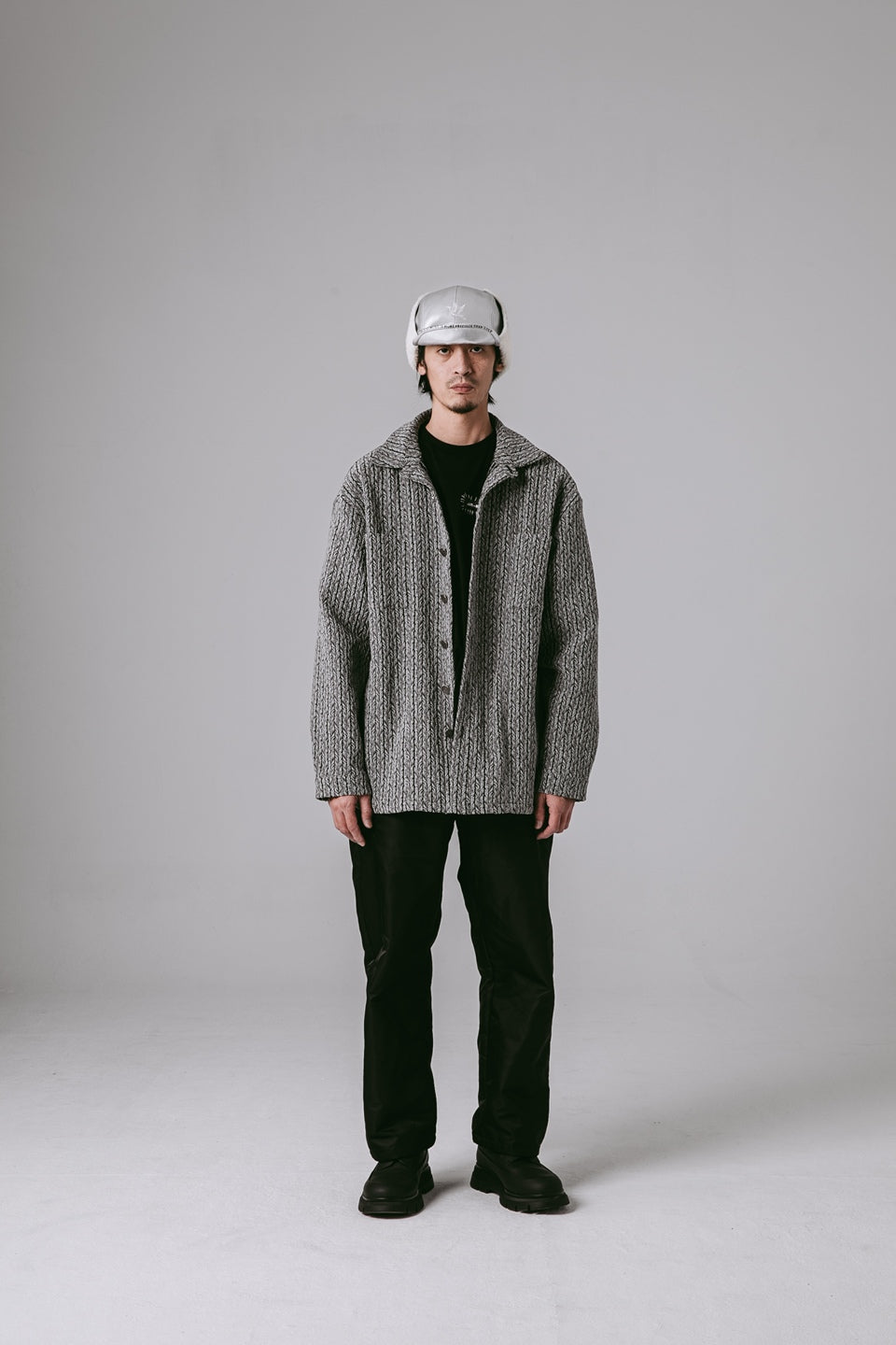 兩側胸口新增對稱口袋與插手袋設計,兼具機能與造型的平衡,呼應品牌「文化 × 功能」的融合精神。鈕扣部分以特製紋理製作,讓細節與布料共鳴。