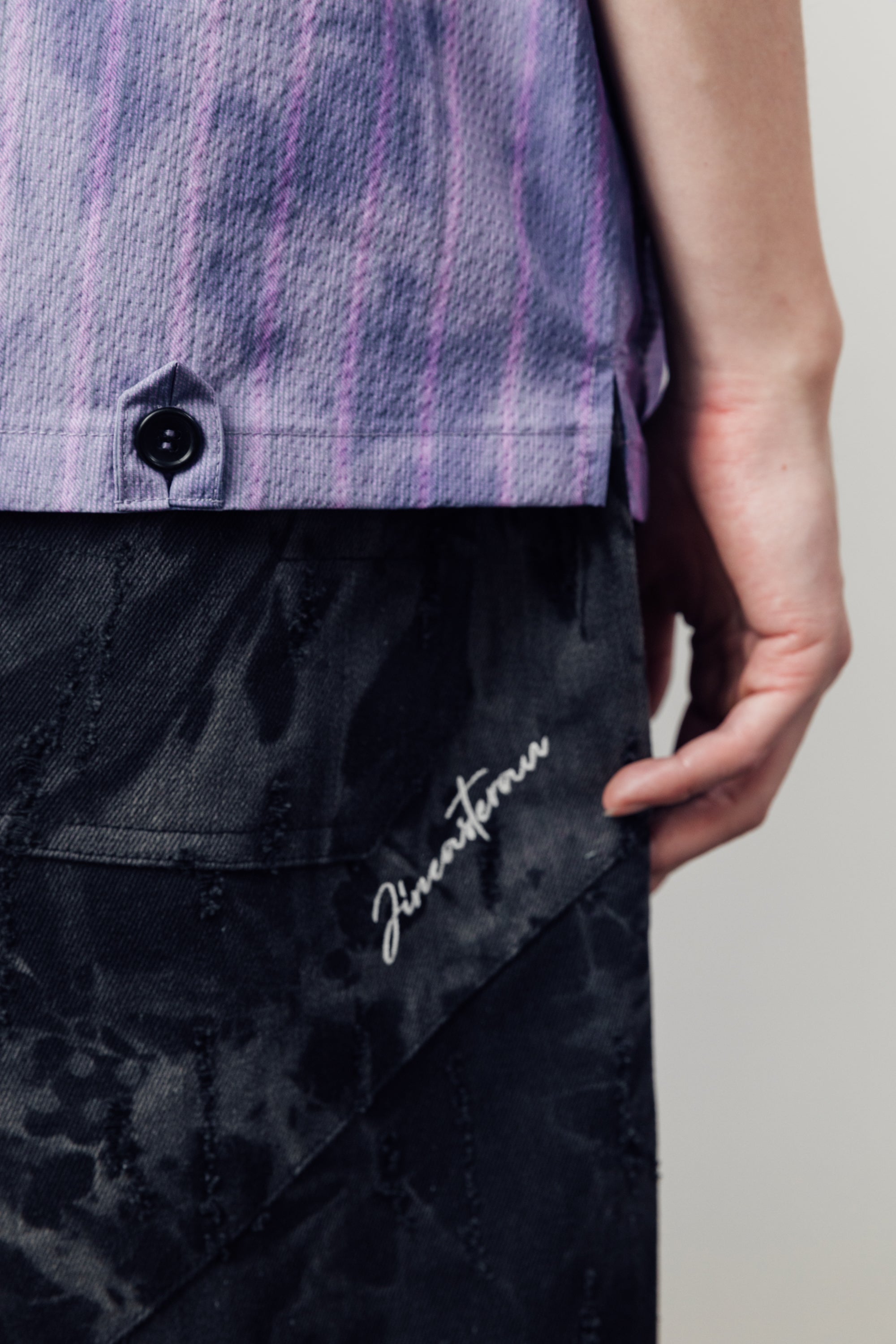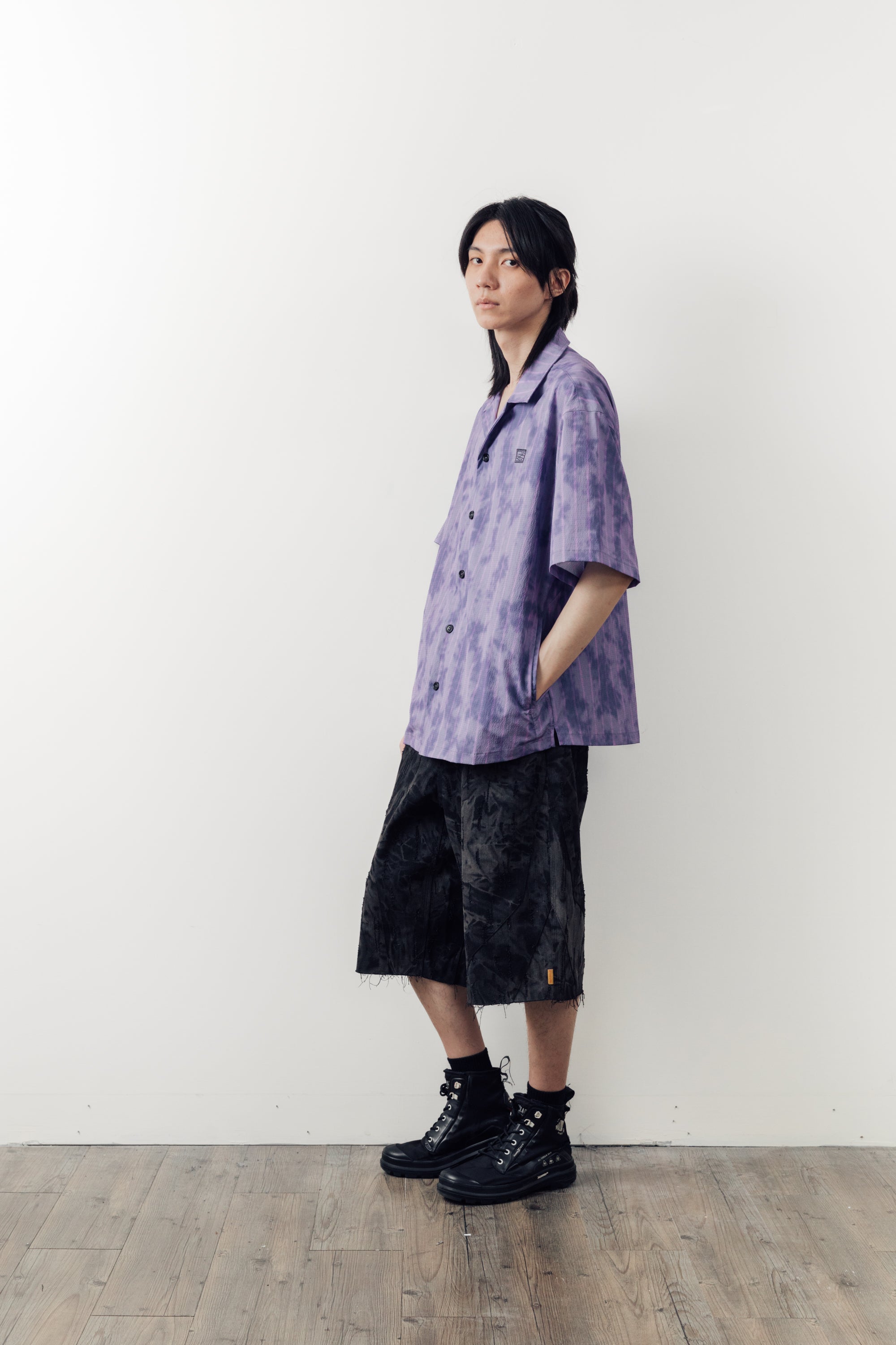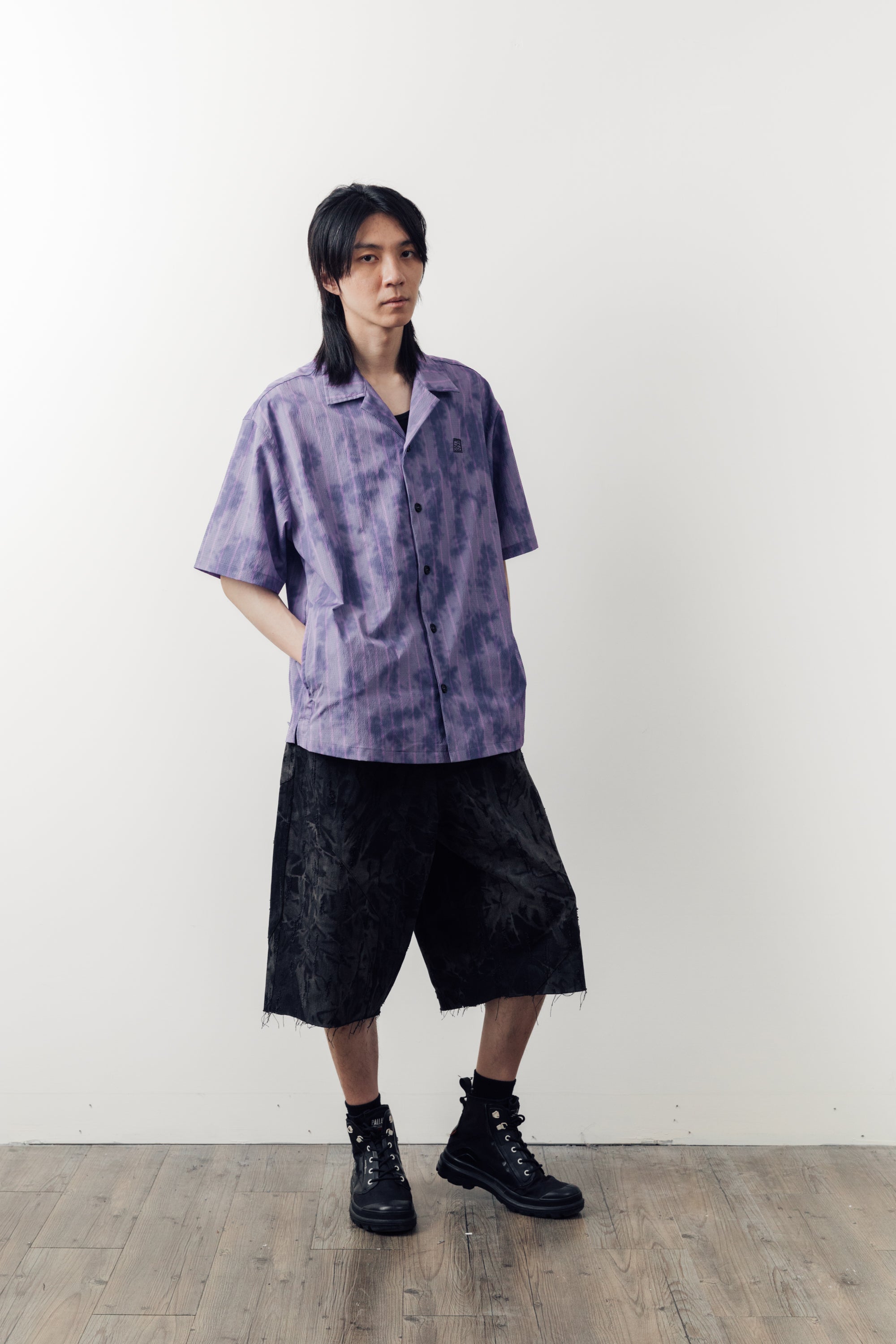 泡泡紗源於因應熱帶地區的產物,透過兩種不同彈性的紗線交織,形成自然起伏的紋路,使肌膚保有乾爽的穿著感。經過特殊的雙重壓印工藝,在布面留下若隱若現的水墨、條紋圖層,如同主題無界般簡約增添一抹動態張力。下擺同樣加入品牌標誌性「耳仔」結構,增加細節與識別度。