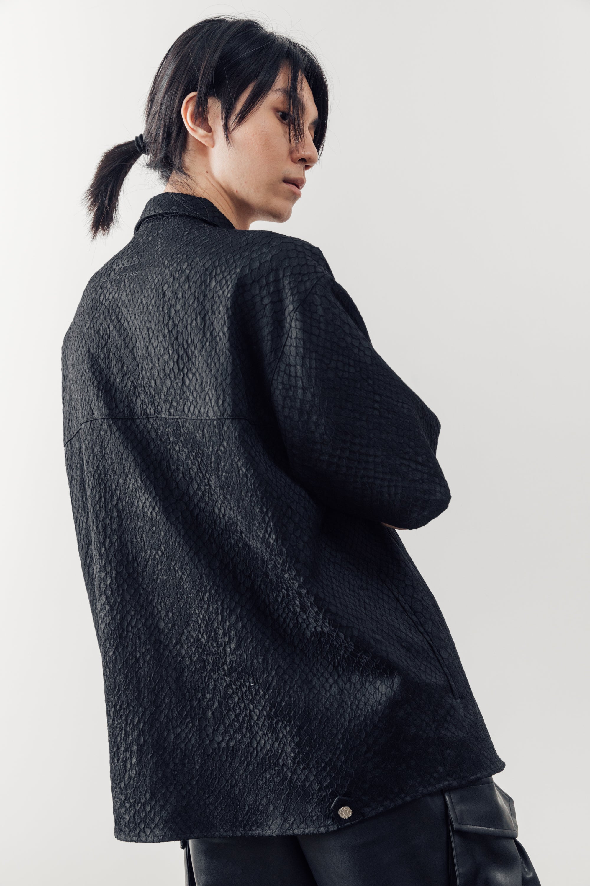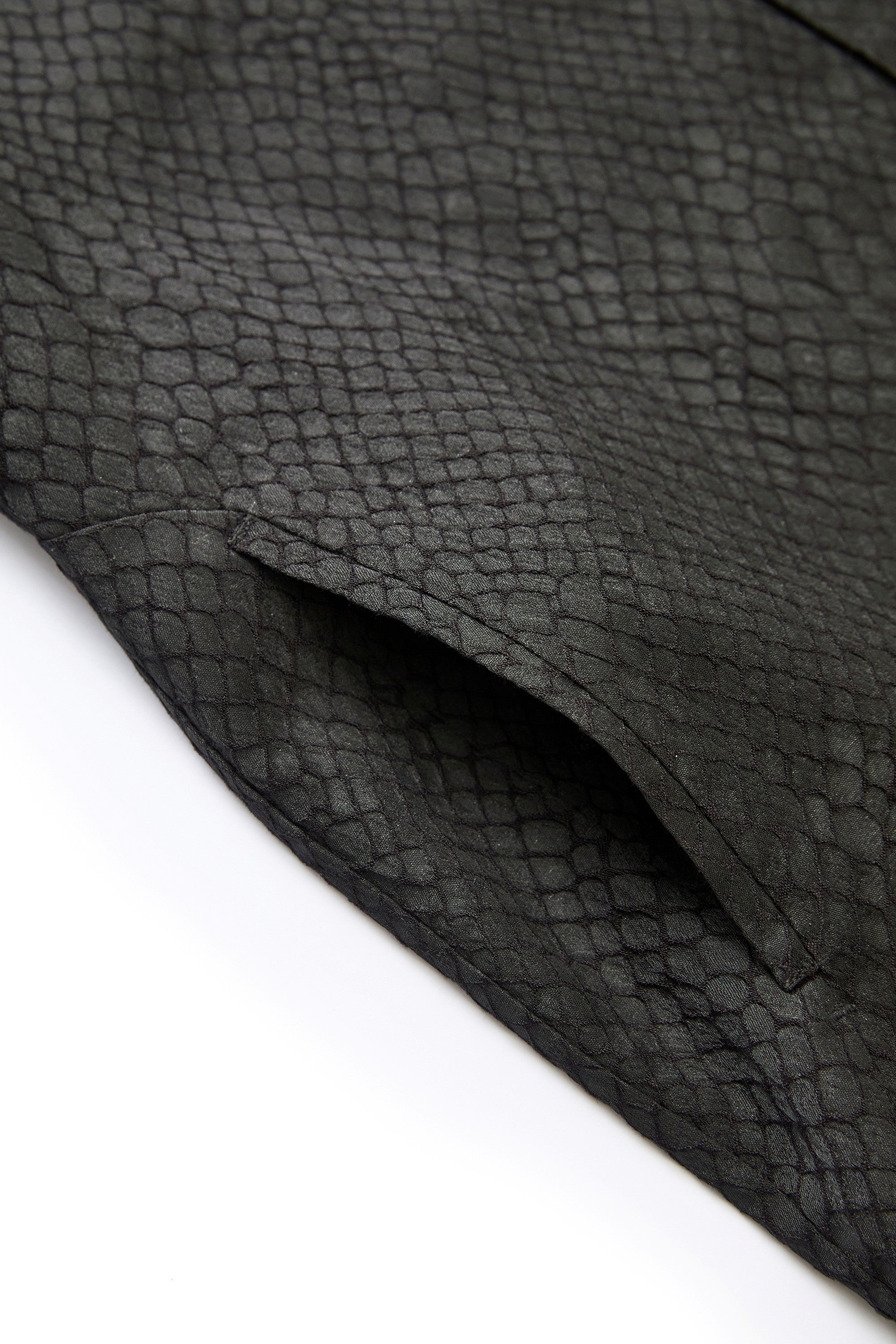 立體緹花技術呈現浮雕般的鱗紋紋理,展現張力與視覺的饗宴。