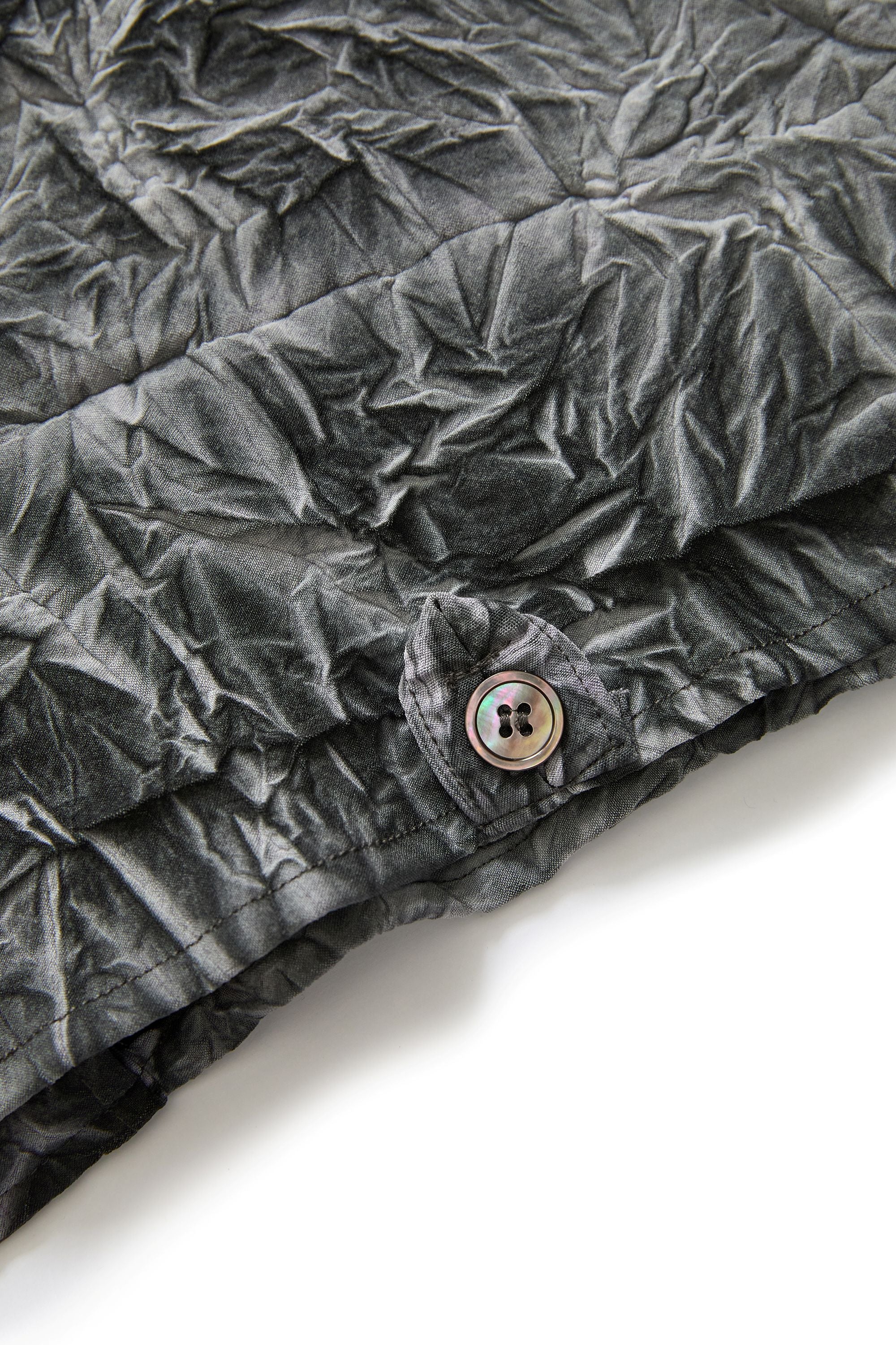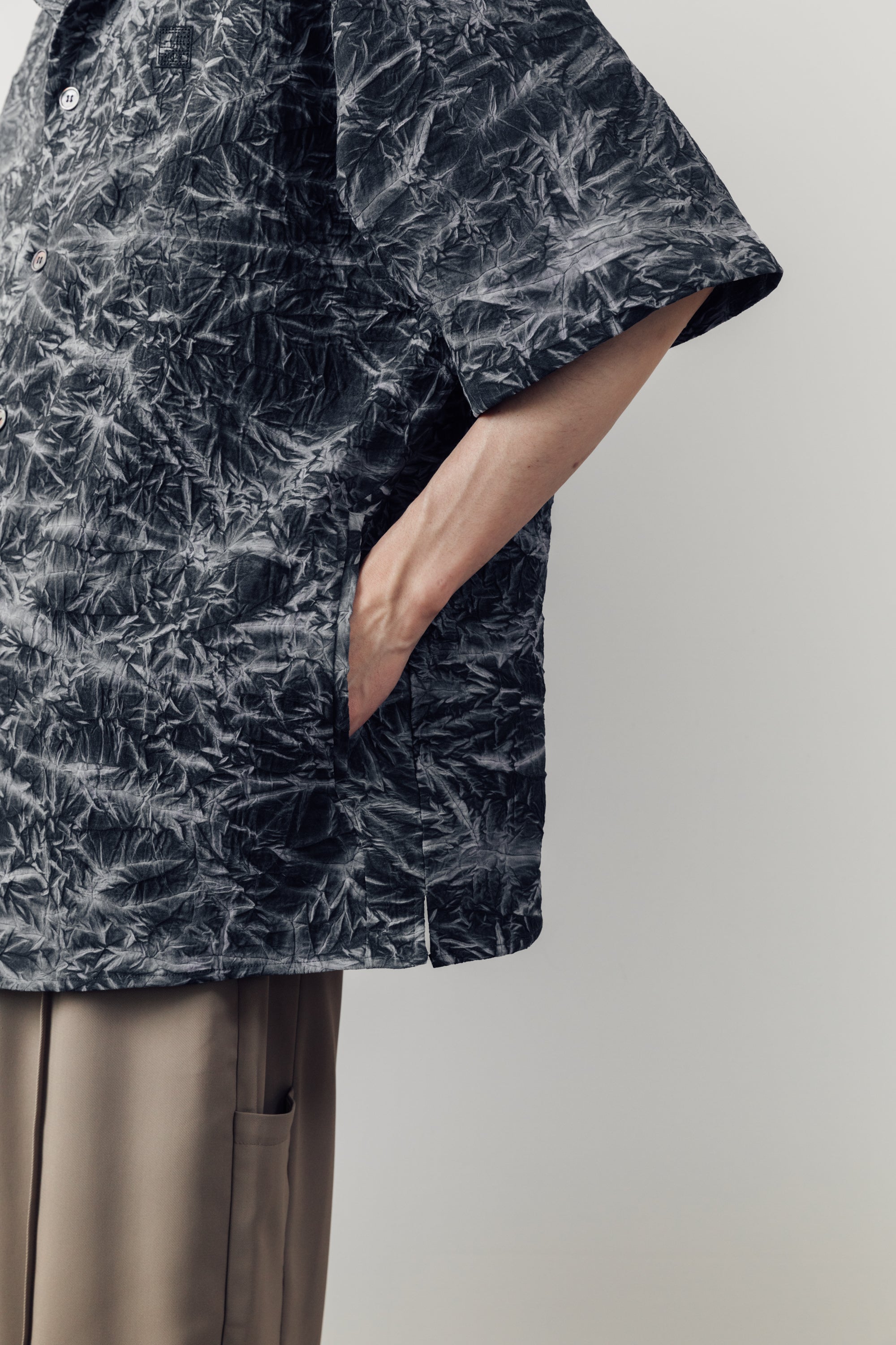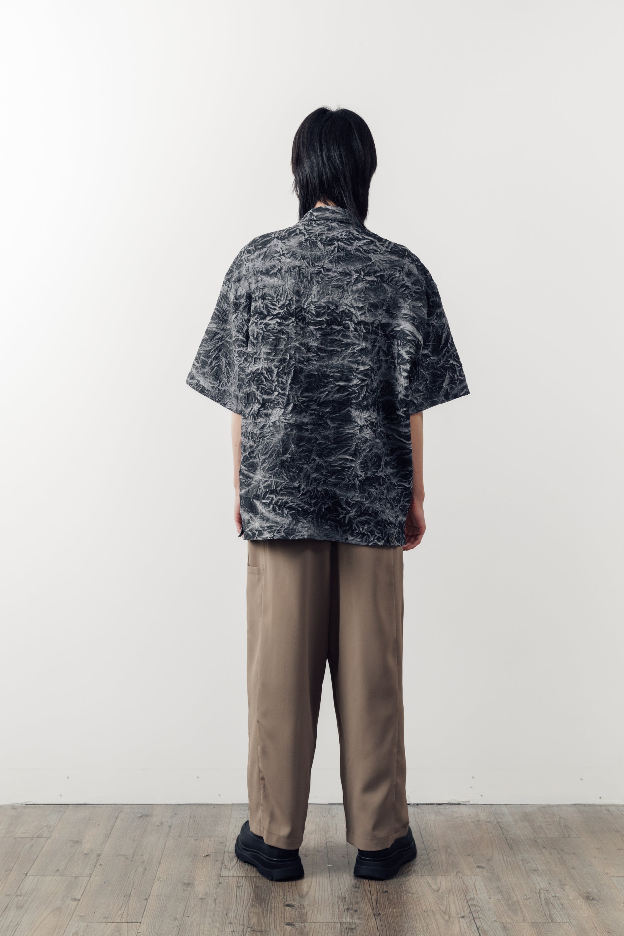 褪色的不是態度,是更野的輪廓。以時間為筆、布料為紙為出發點推出的全新褪色皺褶水洗襯衫。選用略具份量但透氣富彈性的材質,經過工藝層層疊染下,打造出獨特的立體皺摺與水洗褪色效果,紋理如同斑駁水墨,在光影中流轉,寫下時間流動的詩行。一首是經過時間雕刻後留下的藝術詩詞。