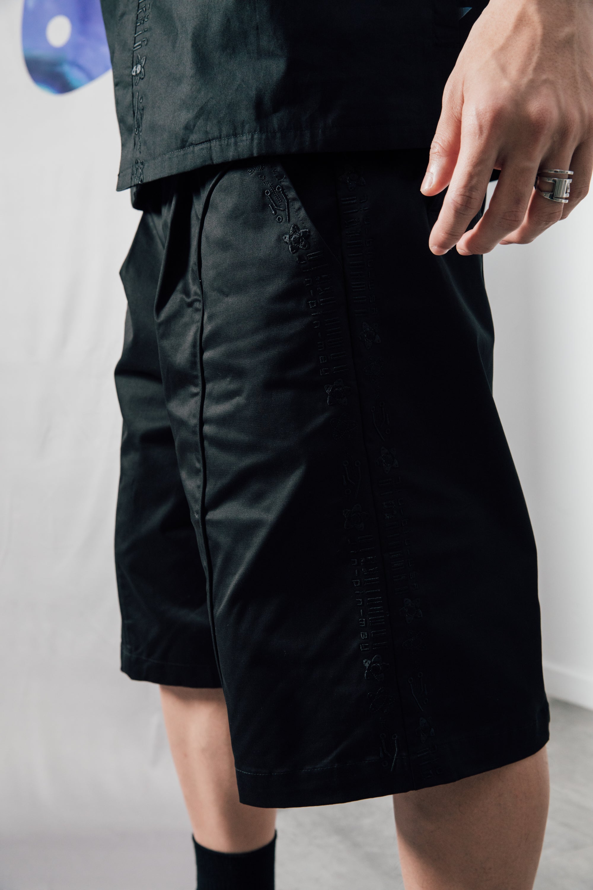Jinpinmay 繡花重磅短袖襯衫-黑色