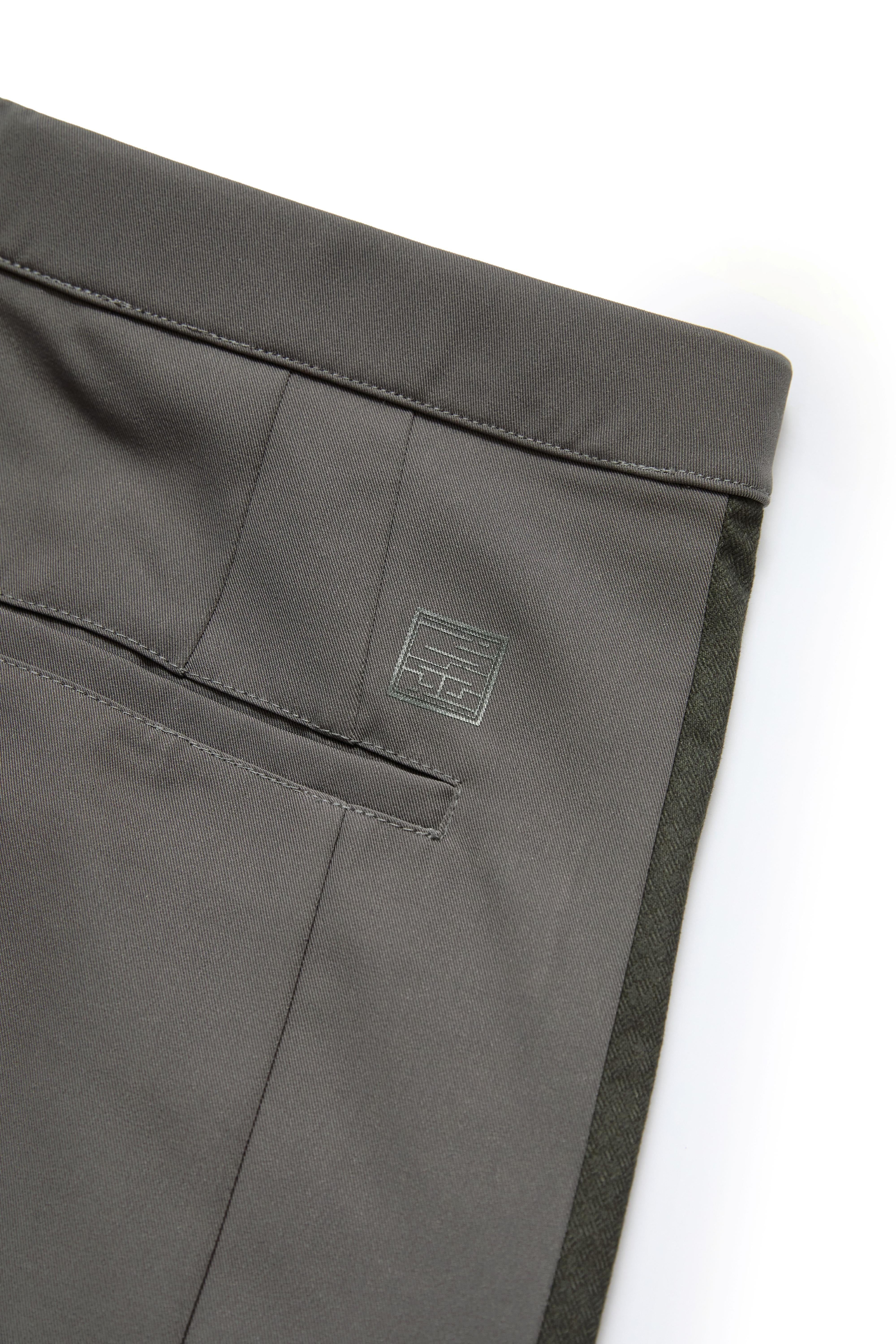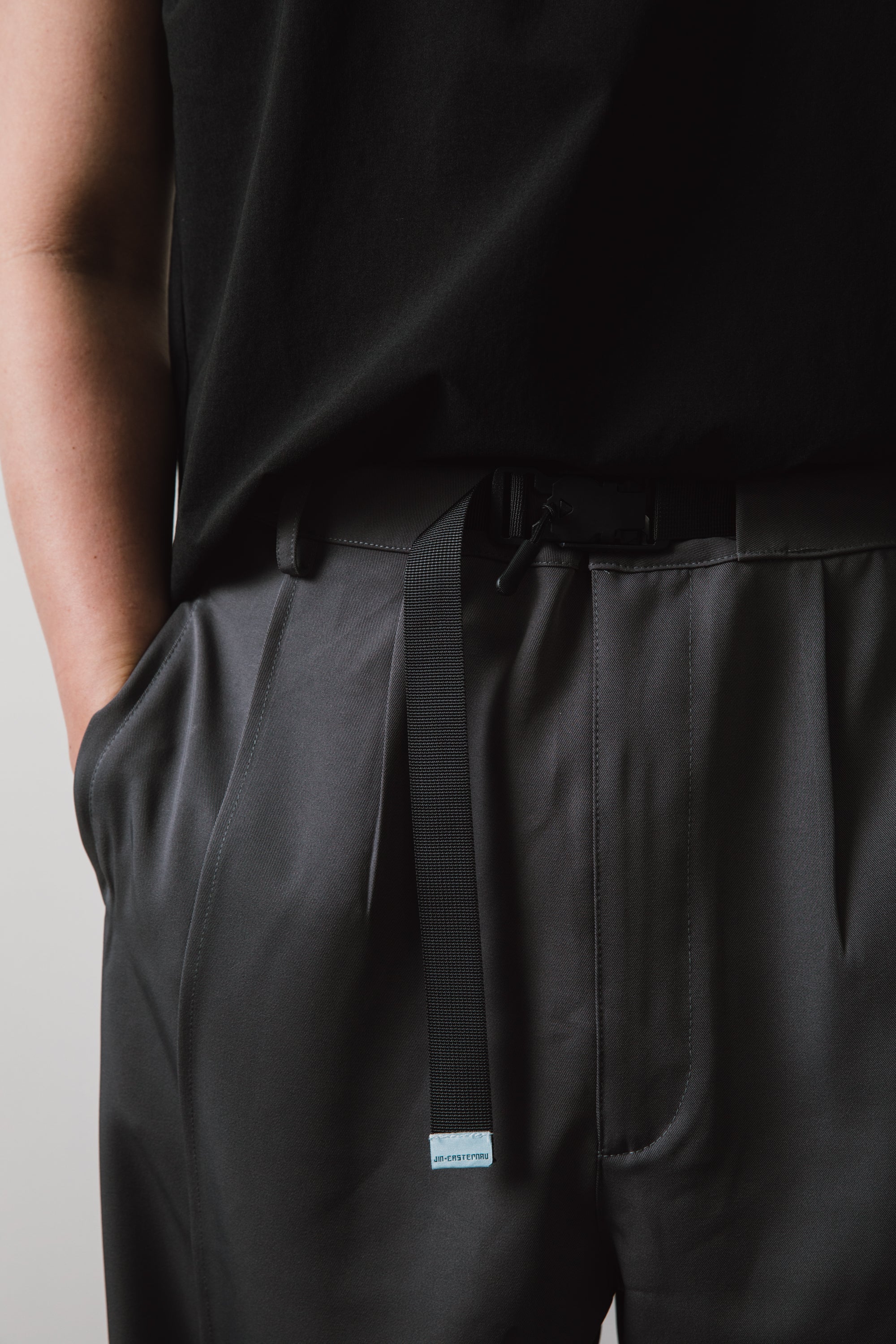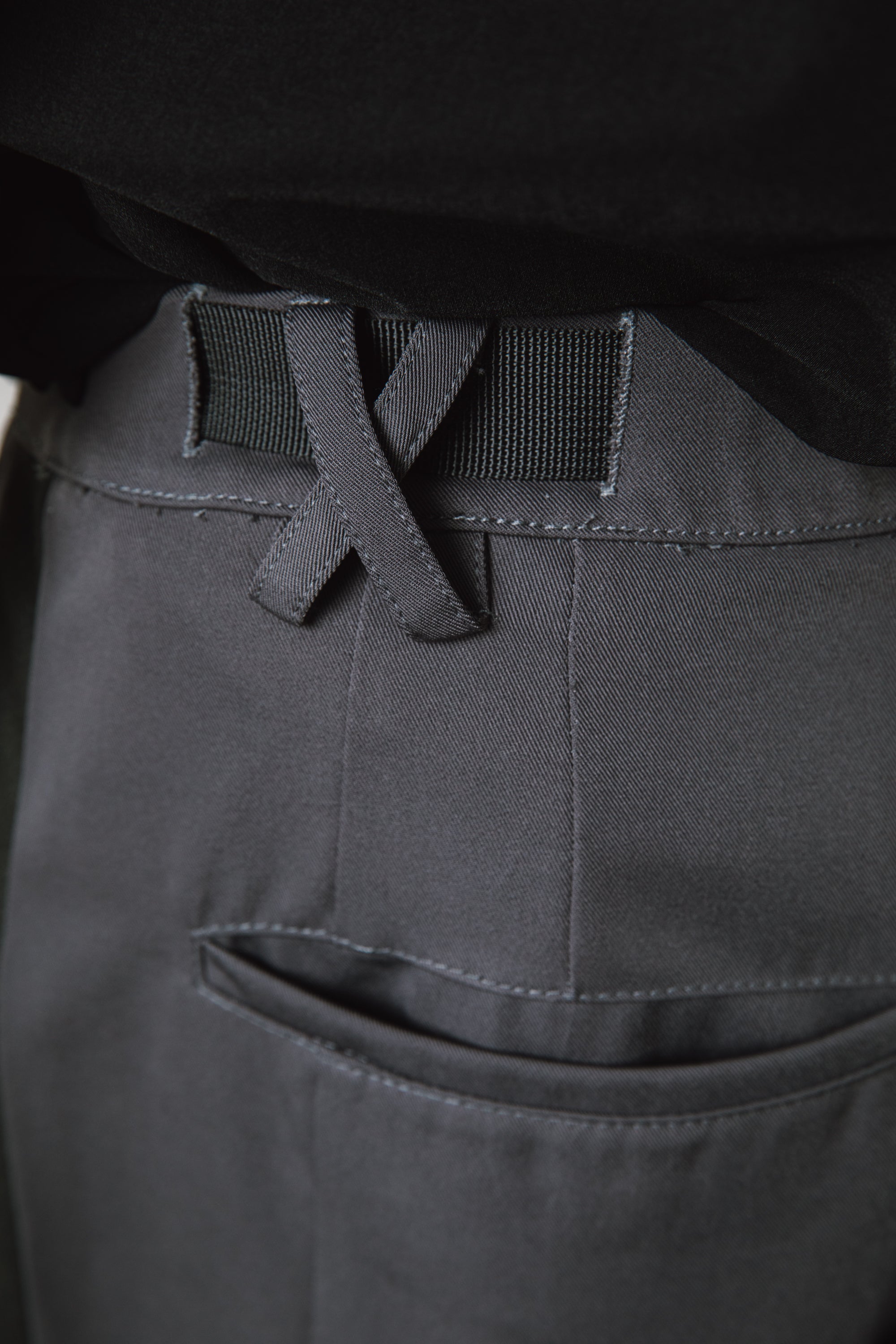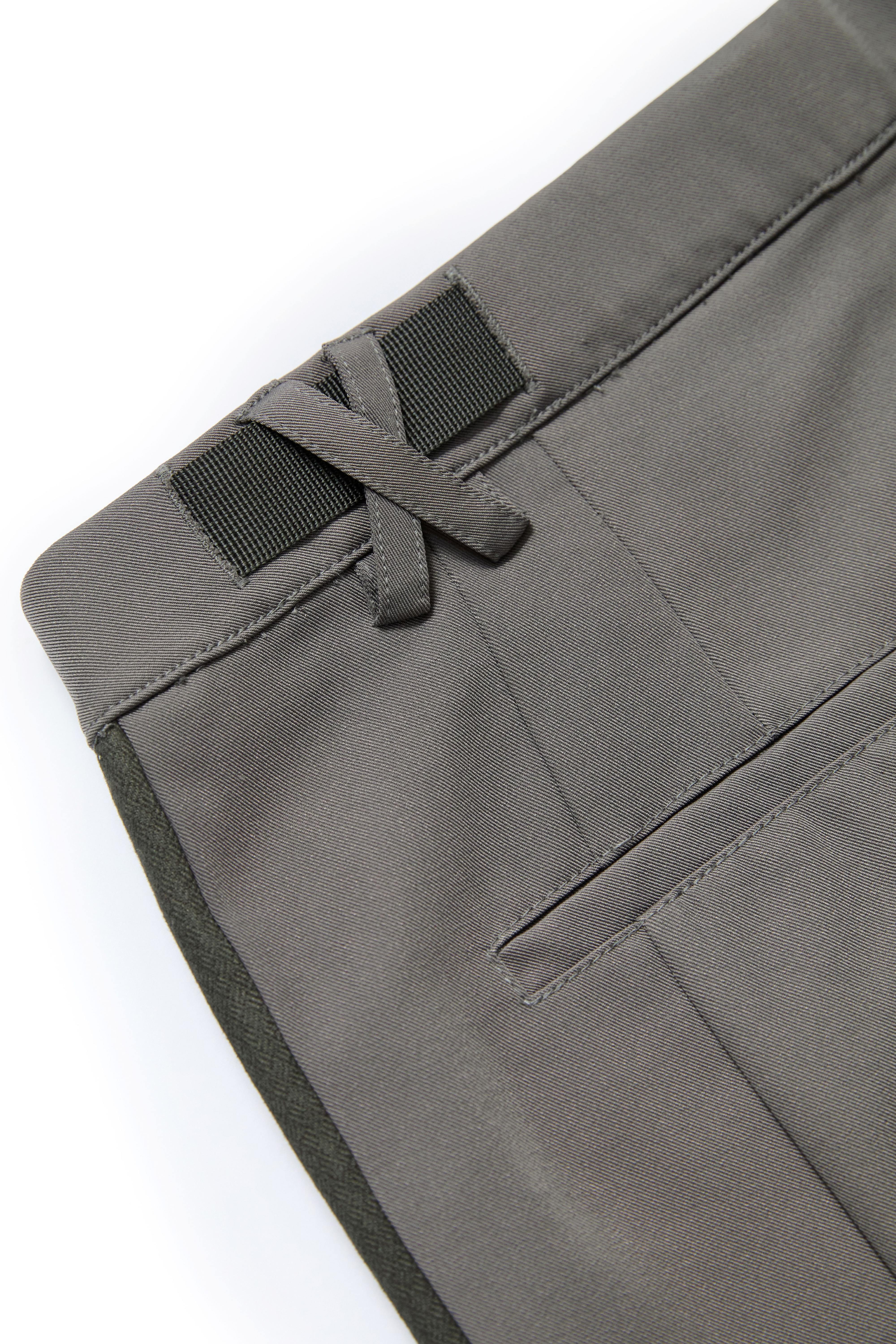 布料用上聚酯混紡,兼顧柔軟手感與挺度,在透氣舒適中保有俐落輪廓,搭配經典設計的磁吸式腰帶扣環,穿脫更為方便。