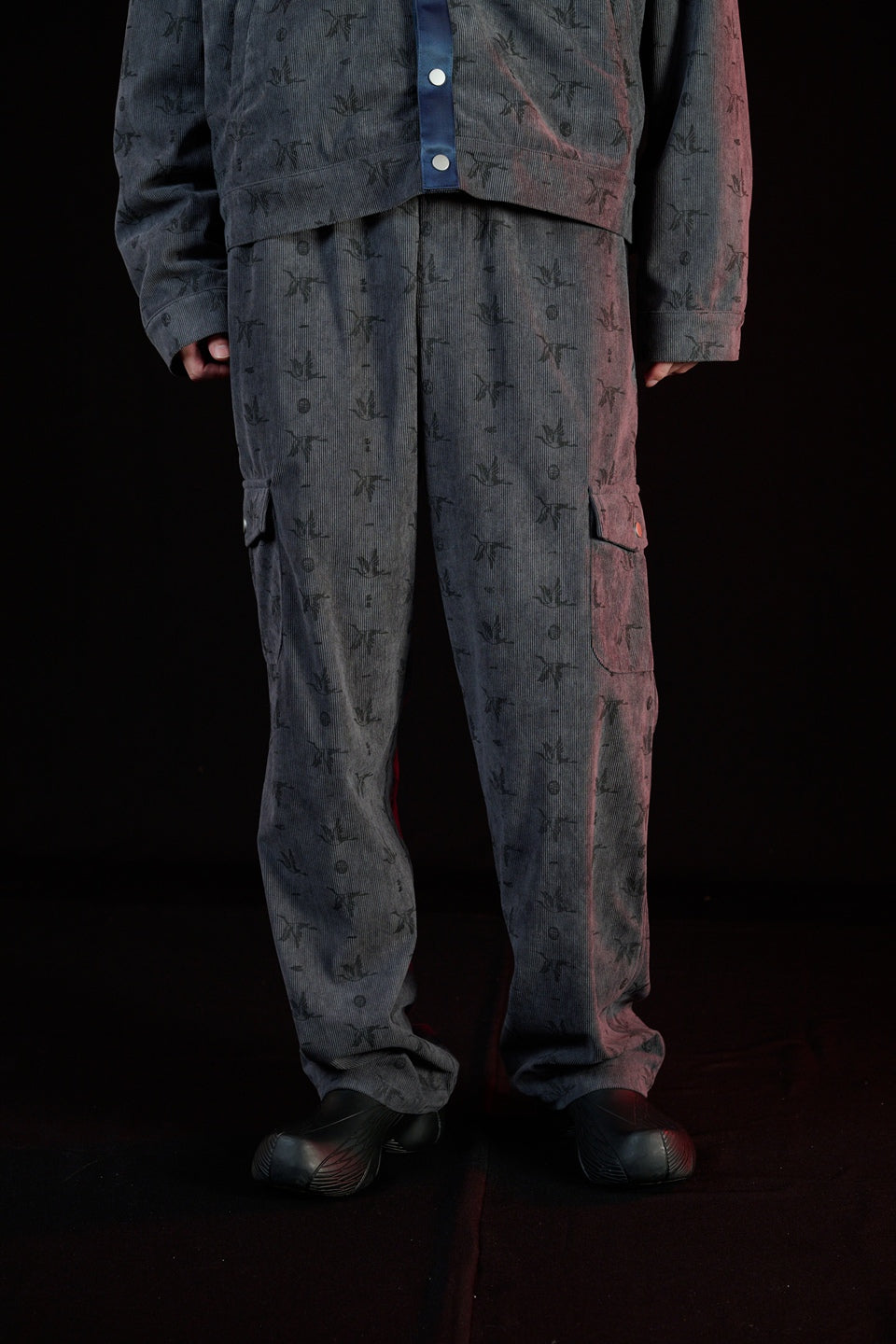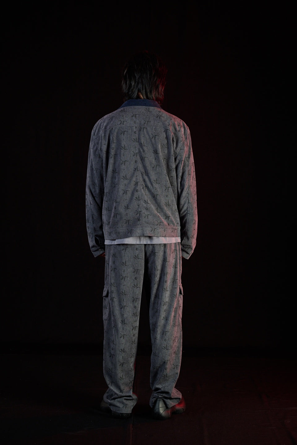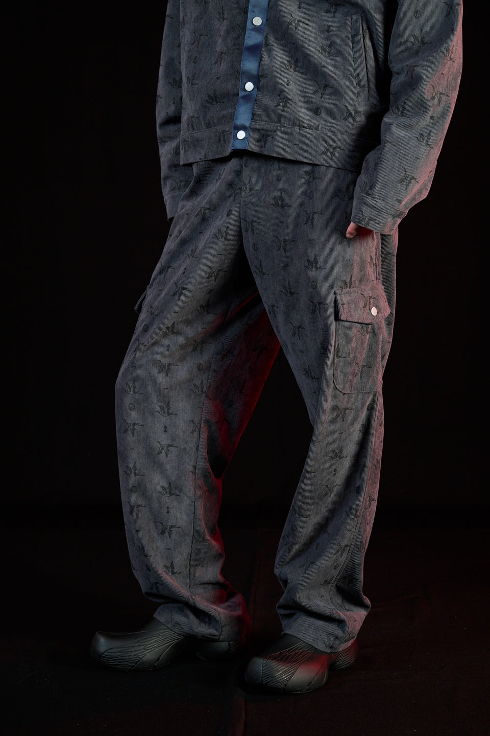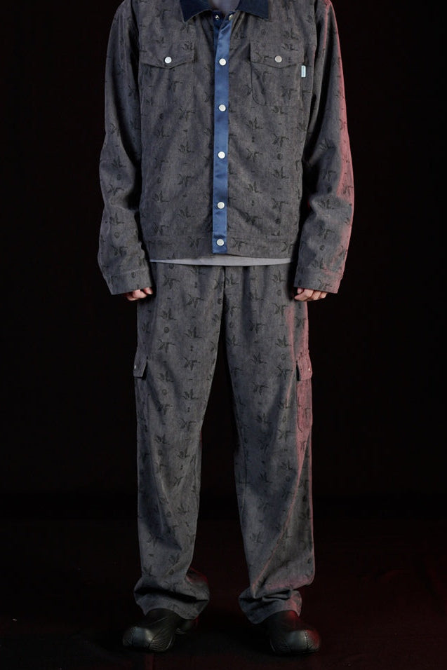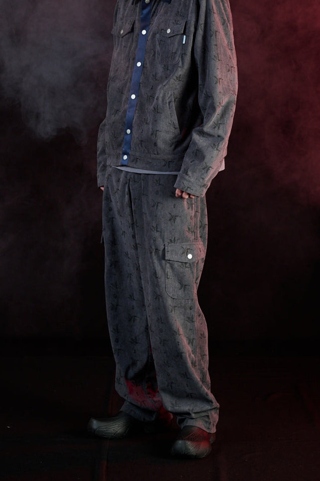 俐落直筒比例好處是拉長腿部線條,立體口袋結構強化機能層次,搭配滿版壓印的「鶴」Logo 貫穿整體布面,象徵品牌精神中靜而有力的內在燃點,在秋冬無論搭配各式上衣都能展現呈穩的平衡度。同款式更是有同款面料外套可作成套搭配。