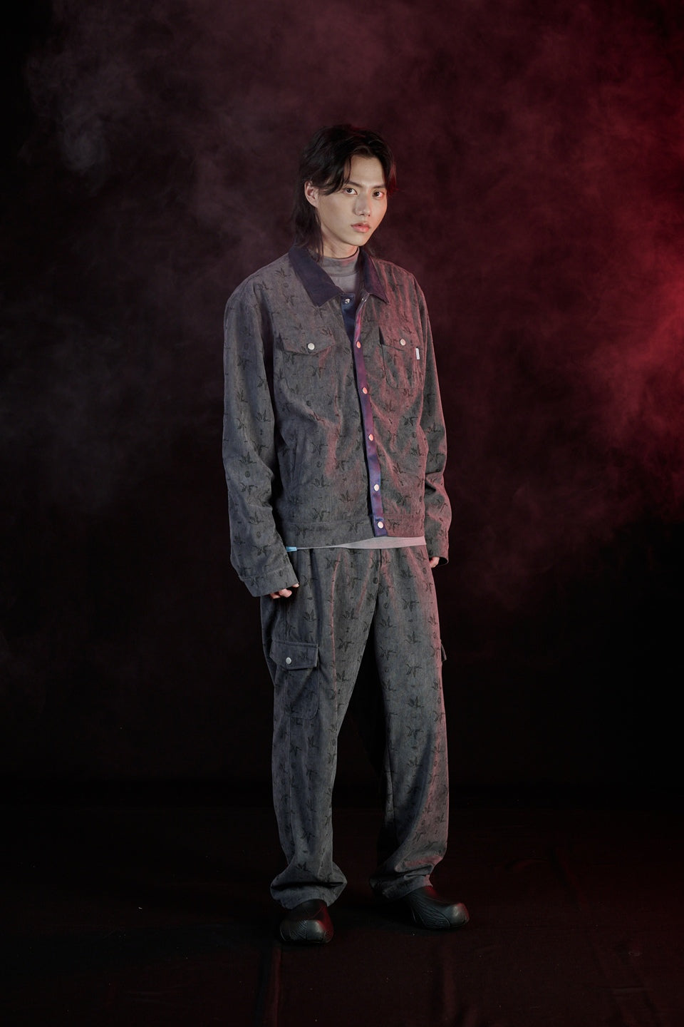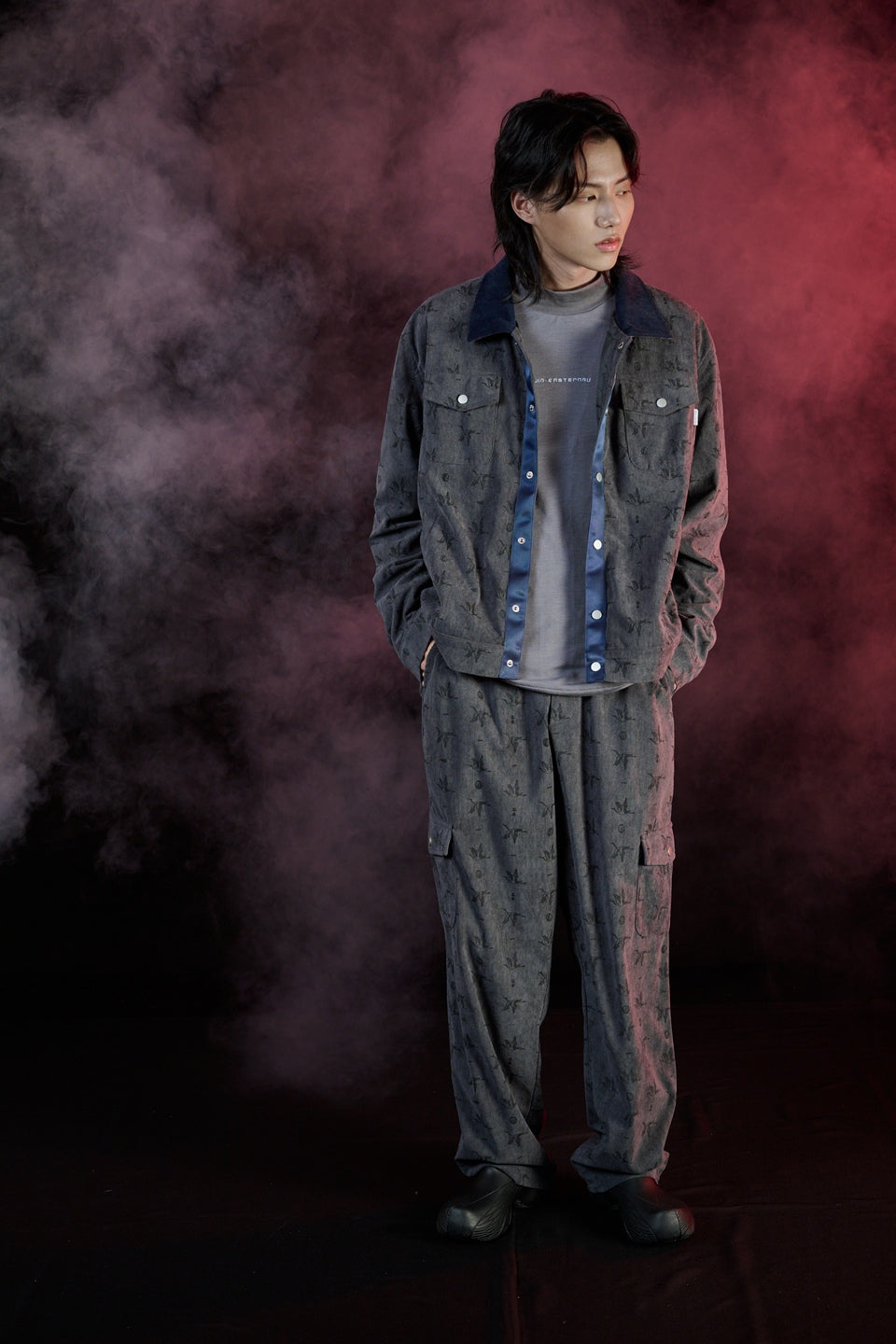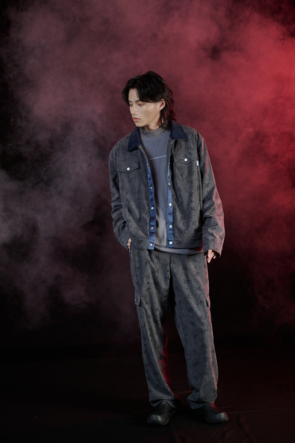 燃界 BURNBOUND 主題概念,以「靜中蘊燃」為靈感出發。褲型取經典直筒比例為基礎,結構上融入六口袋工作褲設計出發,以職人工作褲為藍本,重新構築現代都市中的實著感。