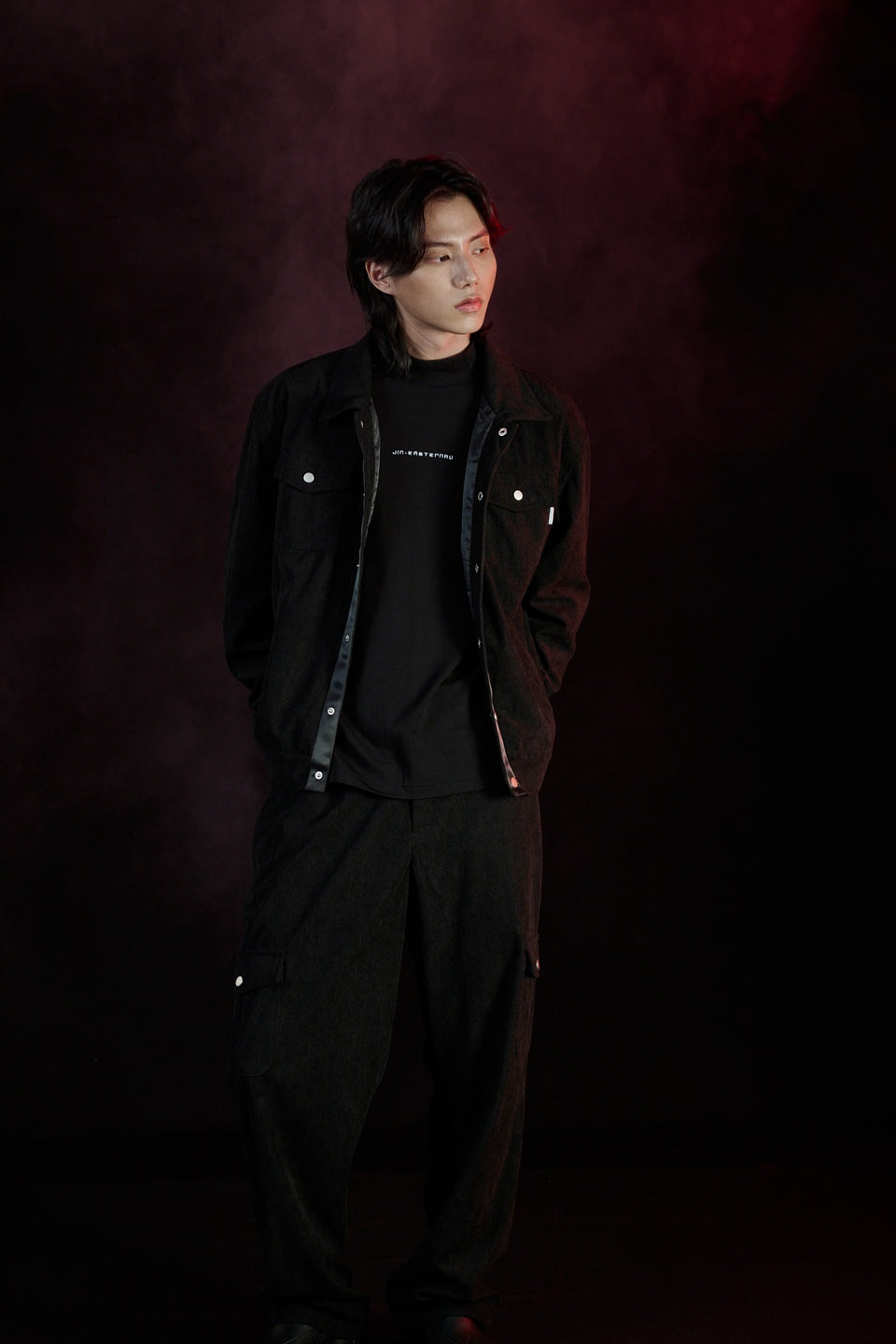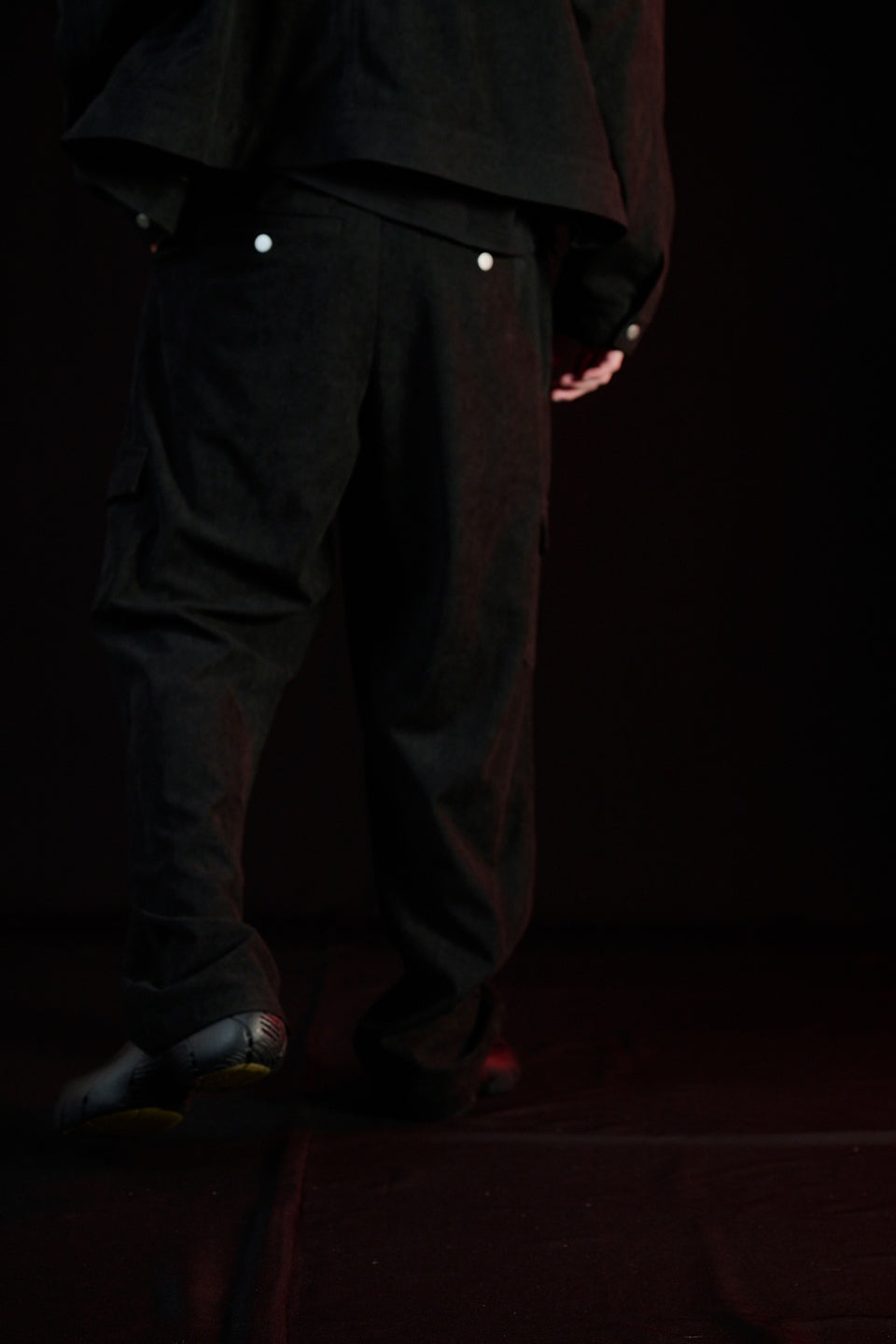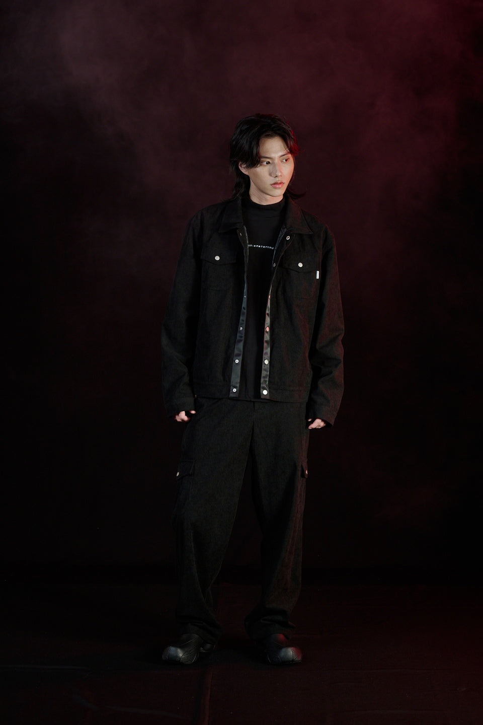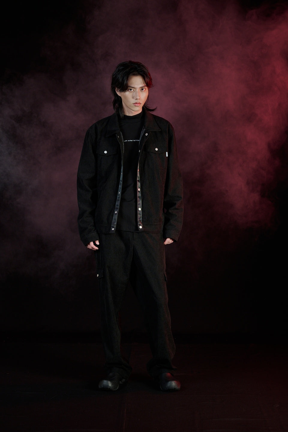 燃界 BURNBOUND 主題概念,以「靜中蘊燃」為靈感出發。褲型取經典直筒比例為基礎,結構上融入六口袋工作褲設計出發,以職人工作褲為藍本,重新構築現代都市中的實著感。