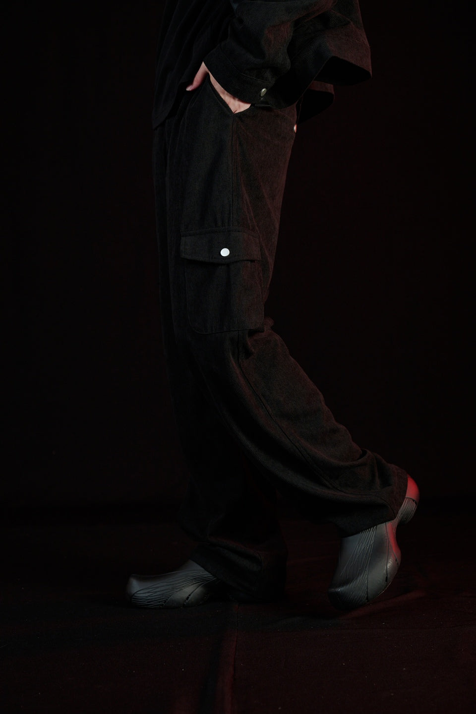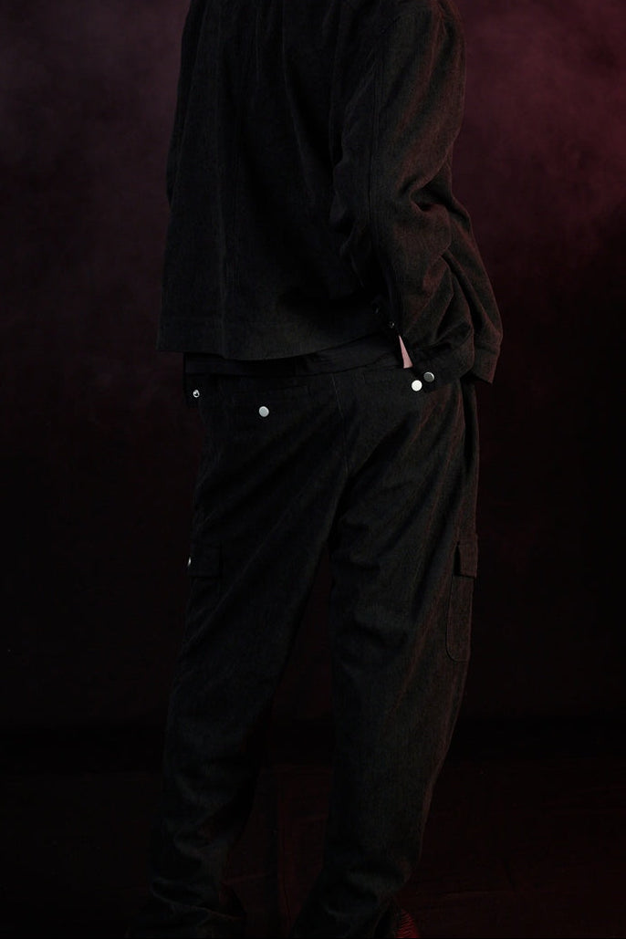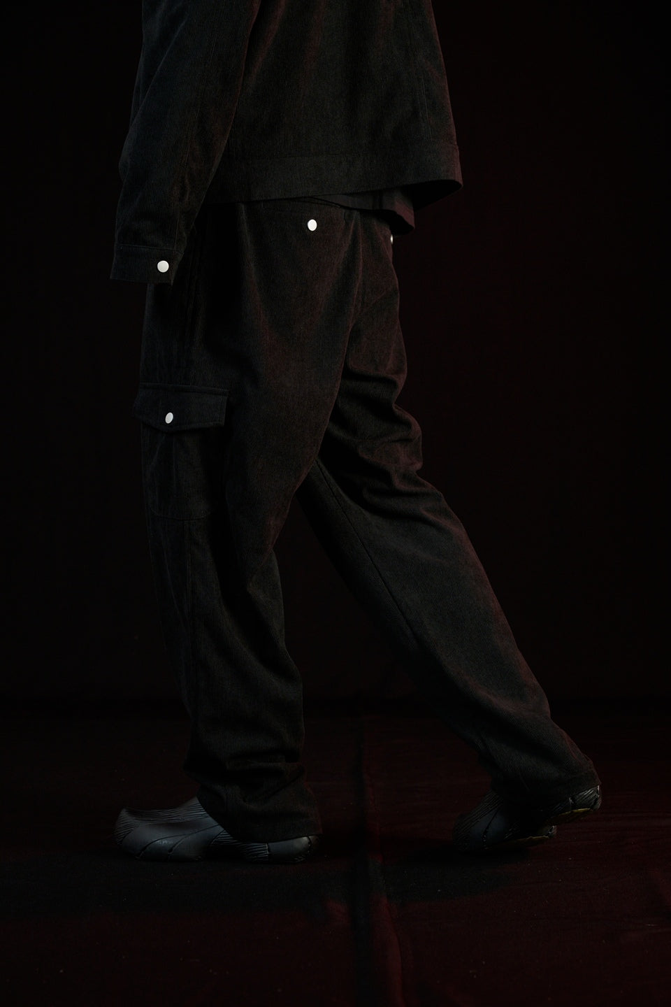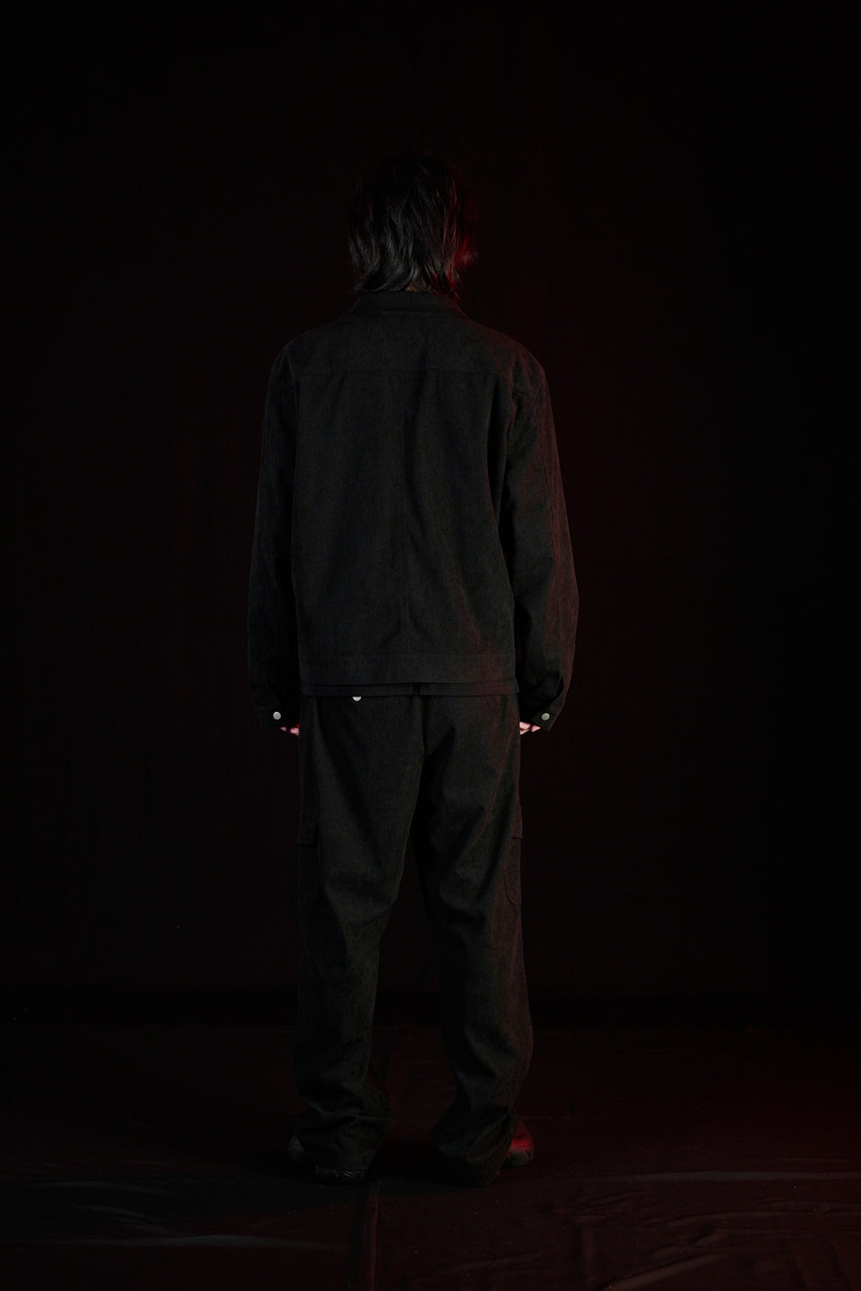 燃界 BURNBOUND 主題概念,以「靜中蘊燃」為靈感出發。褲型取經典直筒比例為基礎,結構上融入六口袋工作褲設計出發,以職人工作褲為藍本,重新構築現代都市中的實著感。