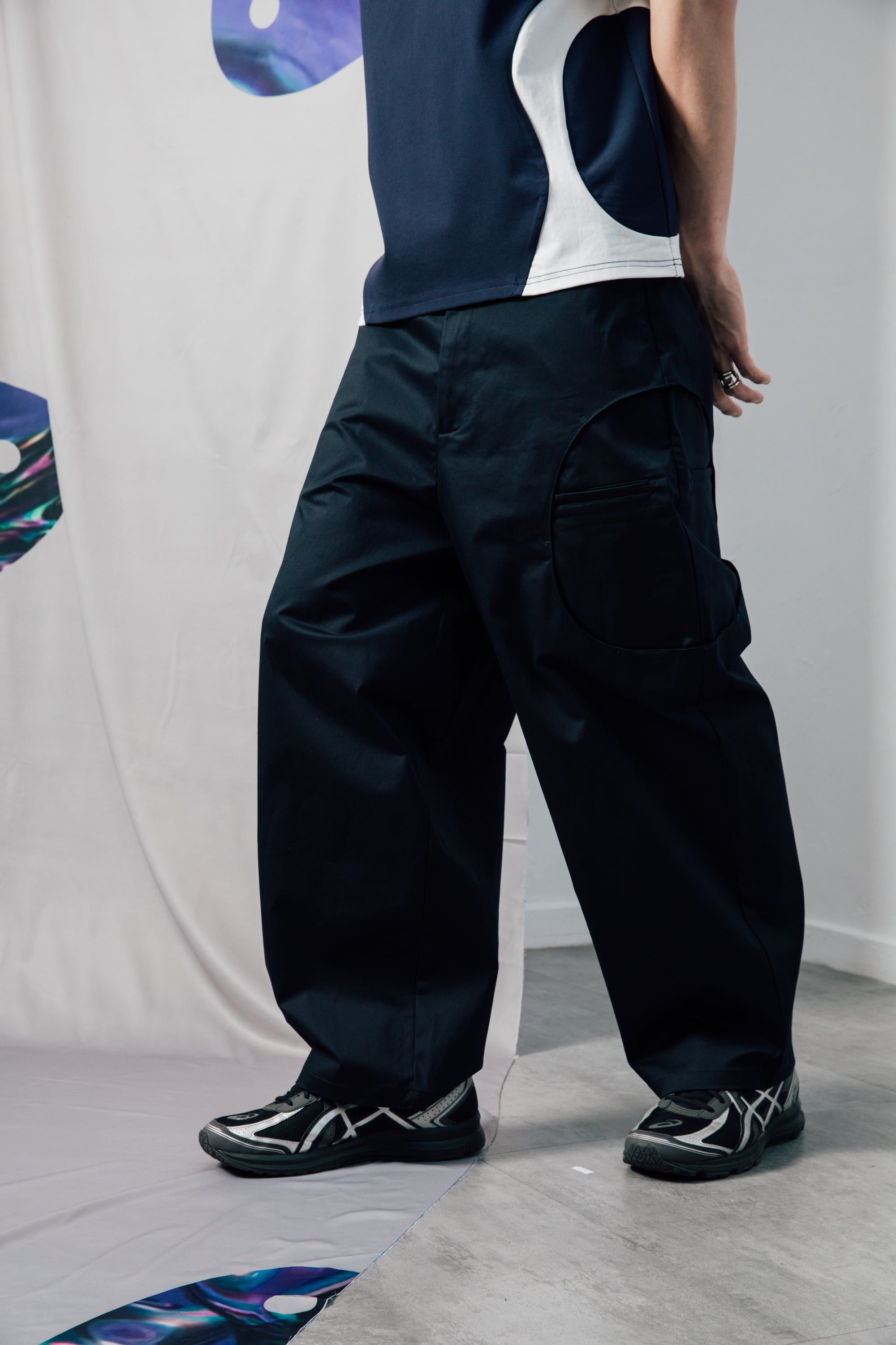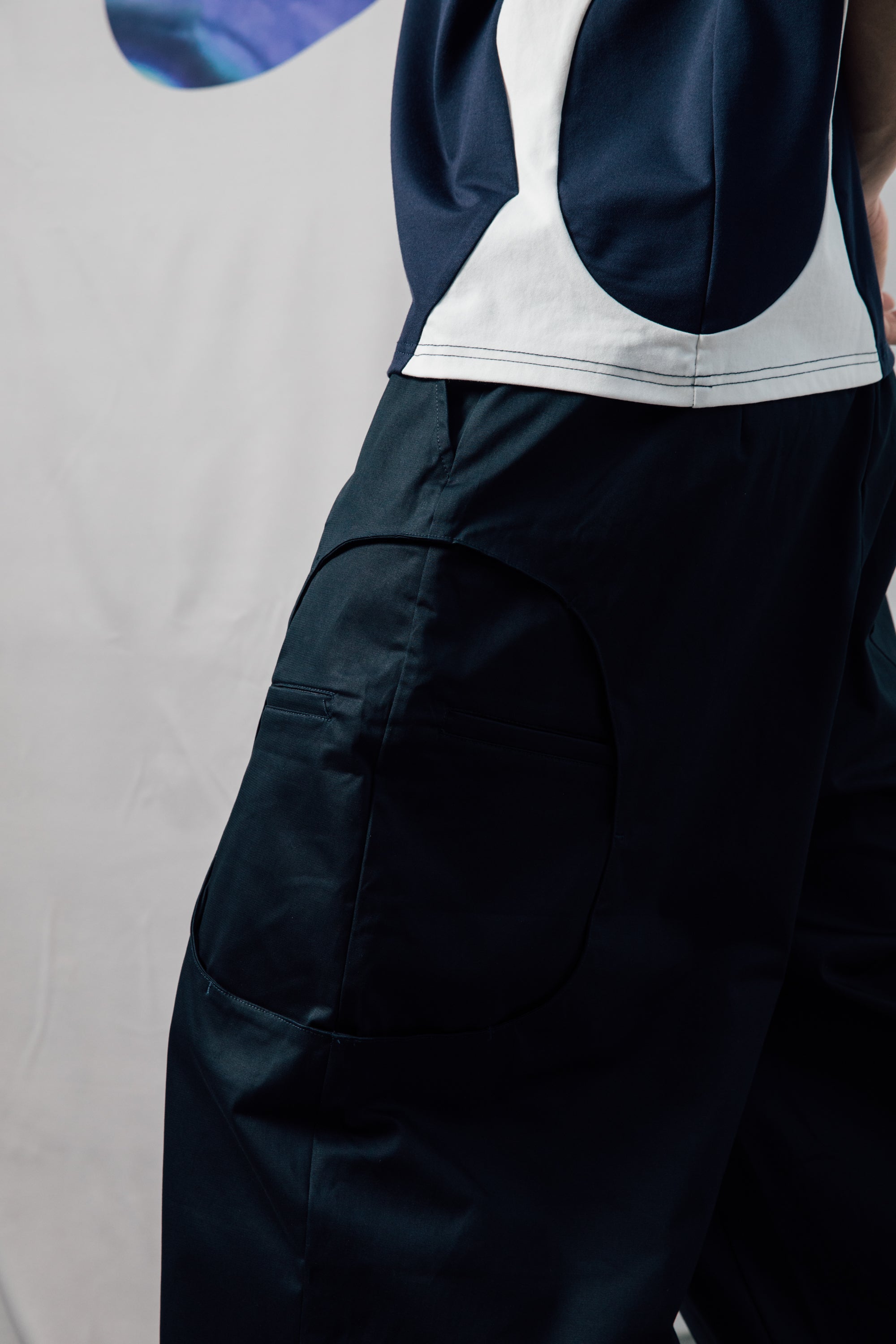 Jinpinmay Geometric Deconstructed Mid-Rise Tapered Pants-Dark Blue