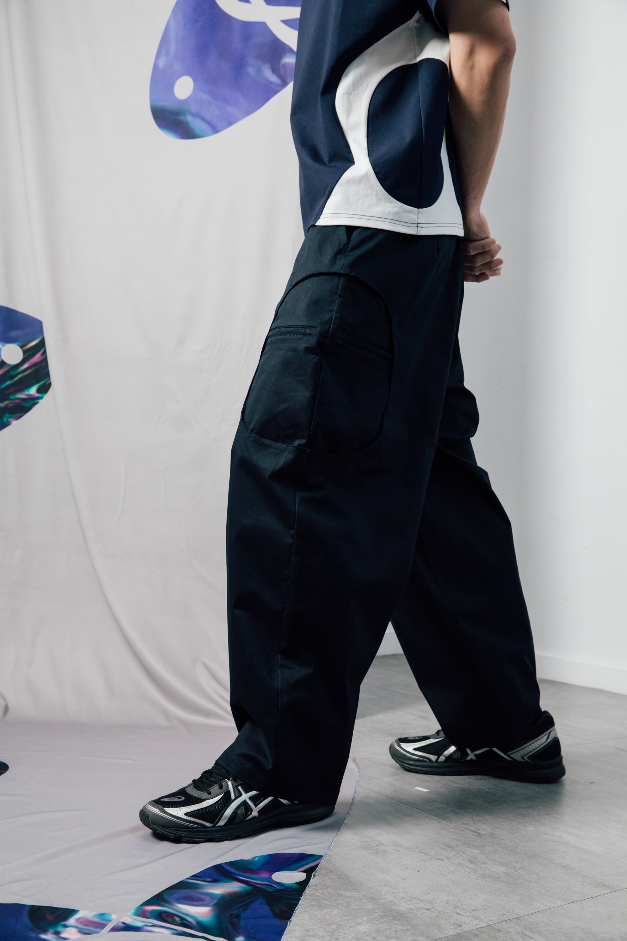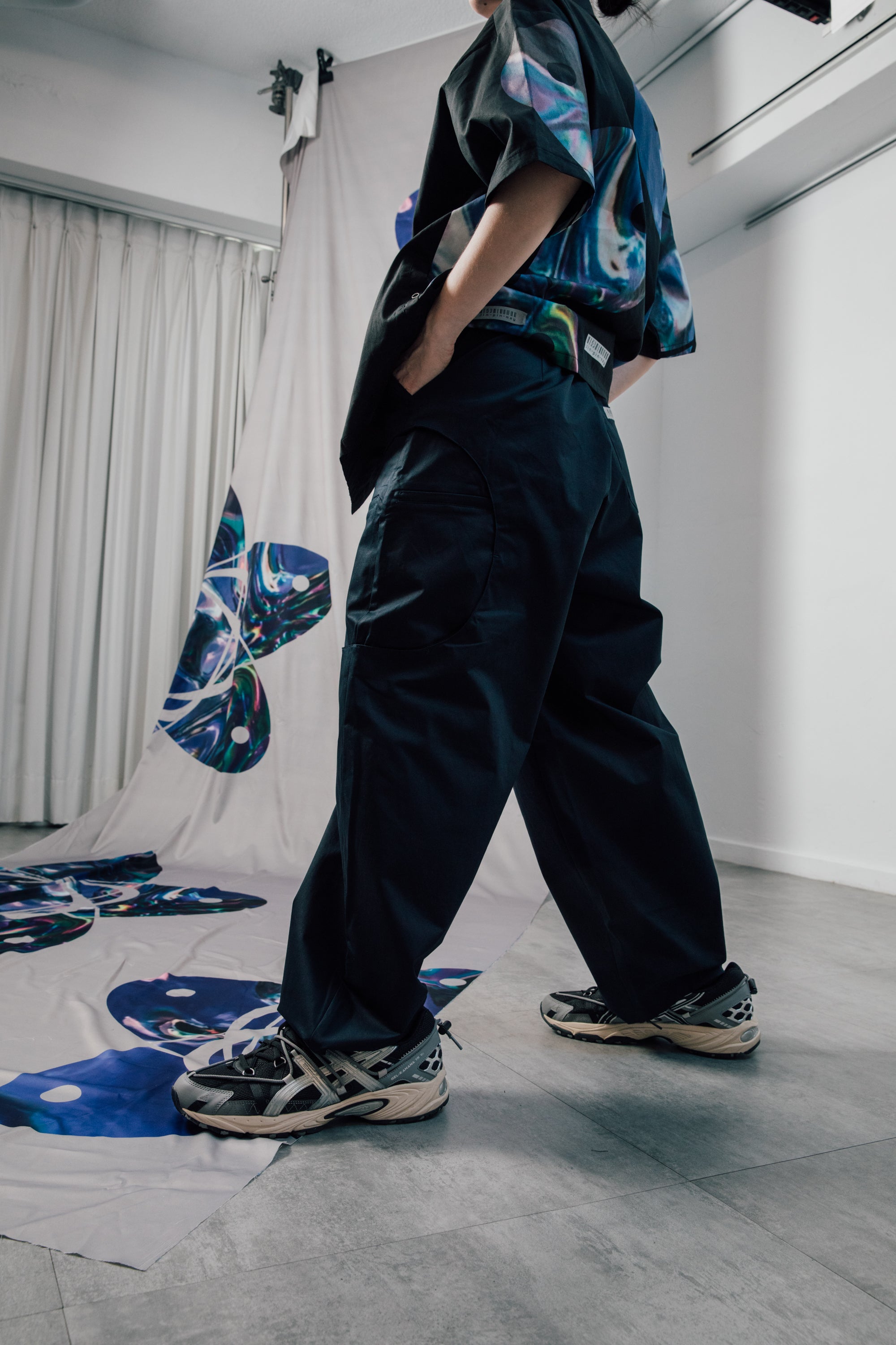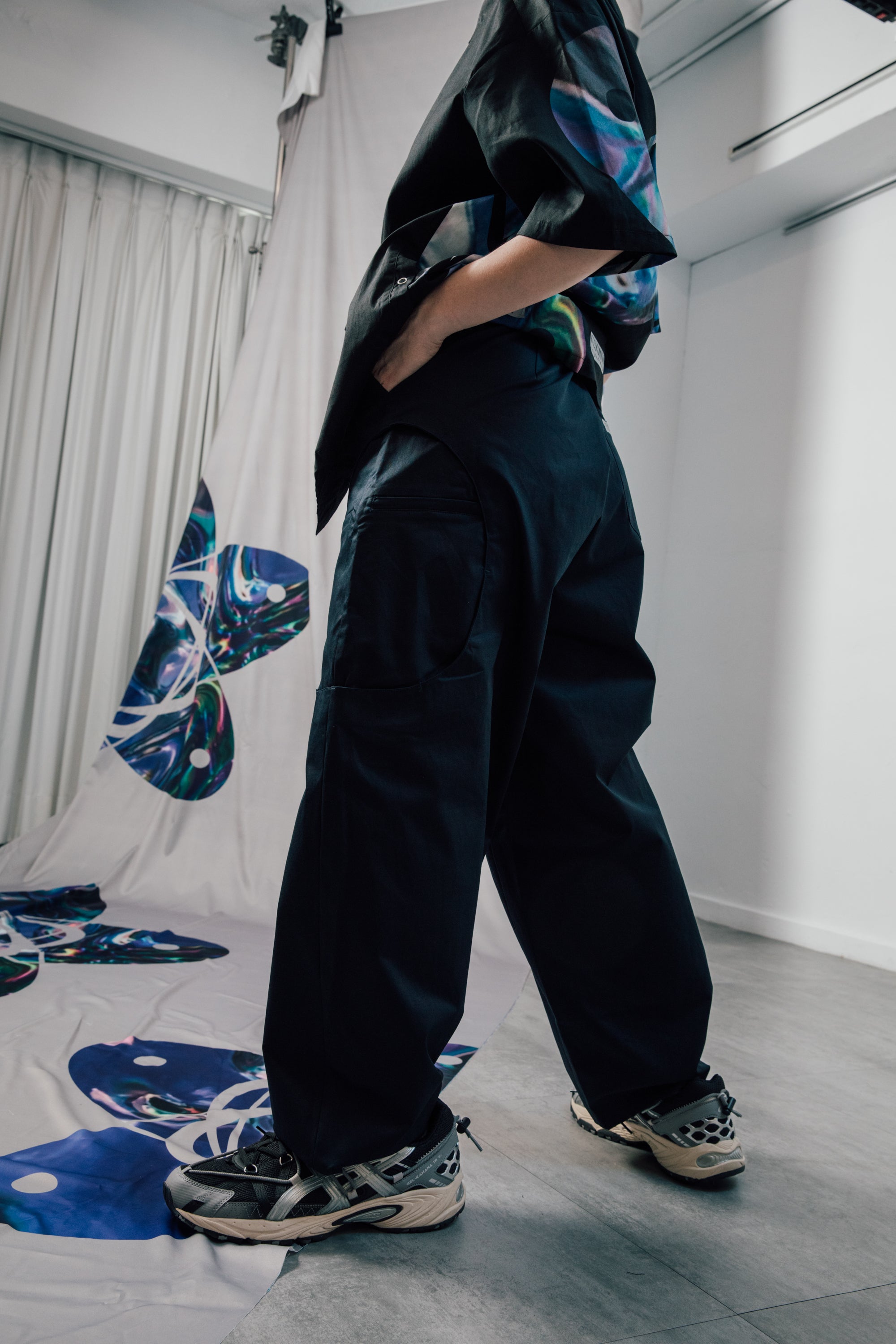 This pair subverts the design of typical overalls, employing geometric deconstruction techniques, a rounded frame, and a hidden zipper, rebalancing practical functionality and design language. The mid-rise waistband is ideal for both genders, and the sleek tapered silhouette continues the "Jinpinmay" story of two design languages working side by side.