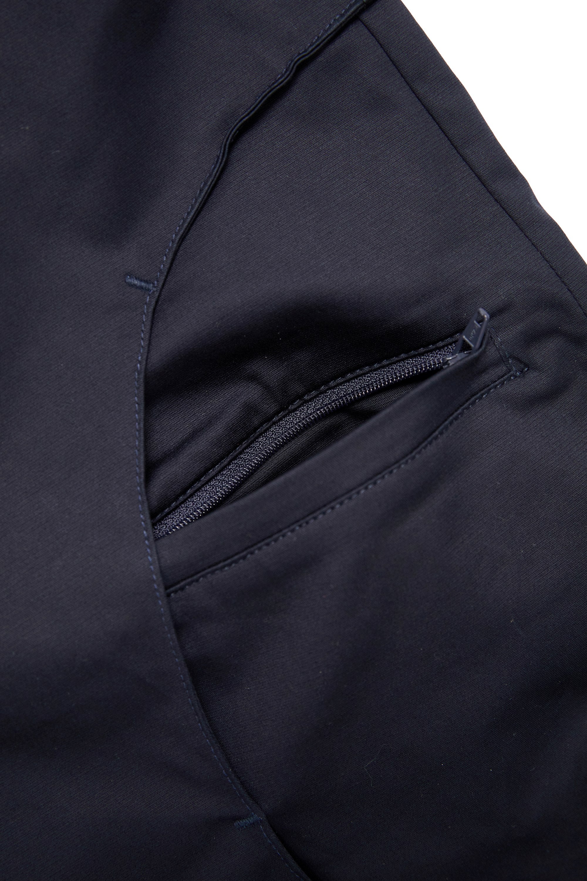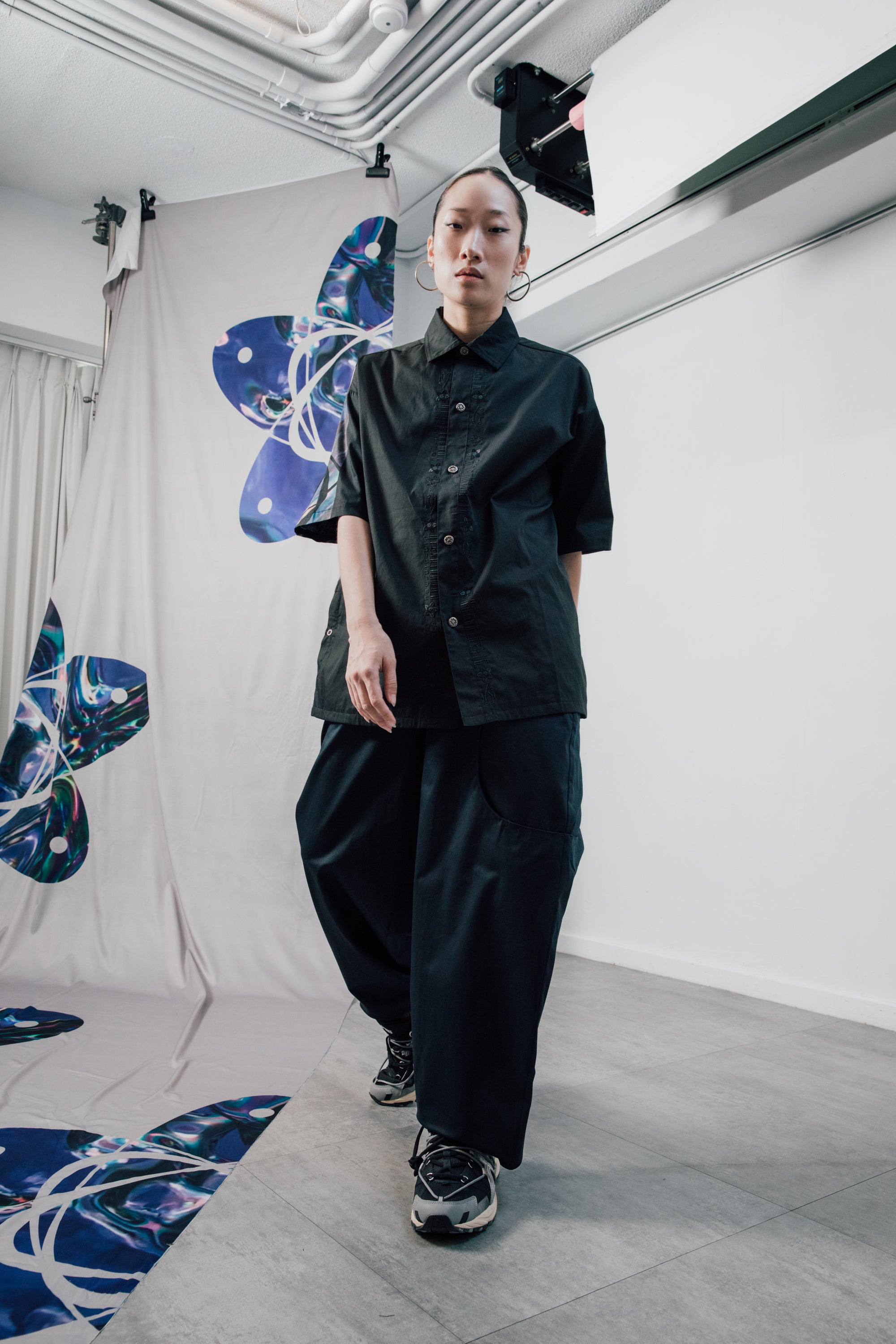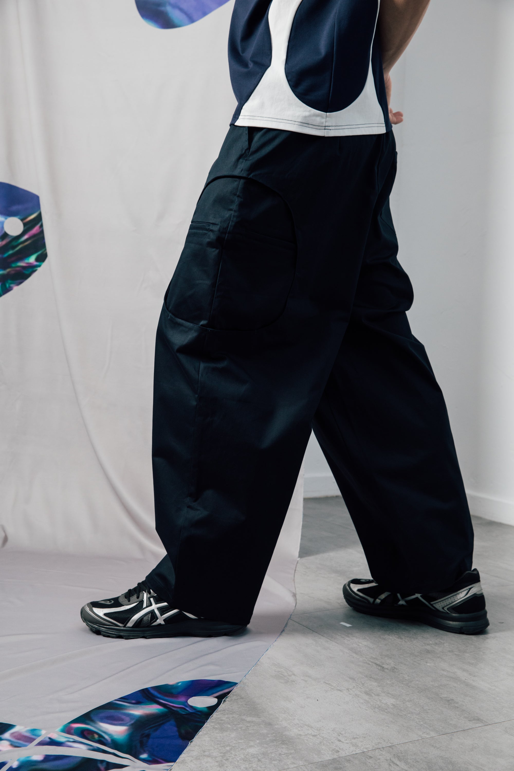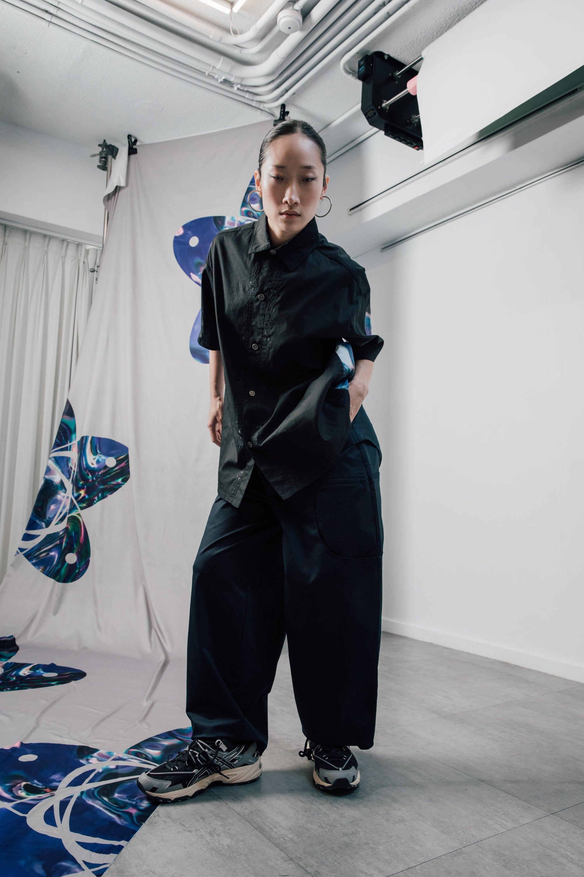 This pair subverts the design of typical overalls, employing geometric deconstruction techniques, a rounded frame, and a hidden zipper, rebalancing practical functionality and design language. The mid-rise waistband is ideal for both genders, and the sleek tapered silhouette continues the "Jinpinmay" story of two design languages working side by side.