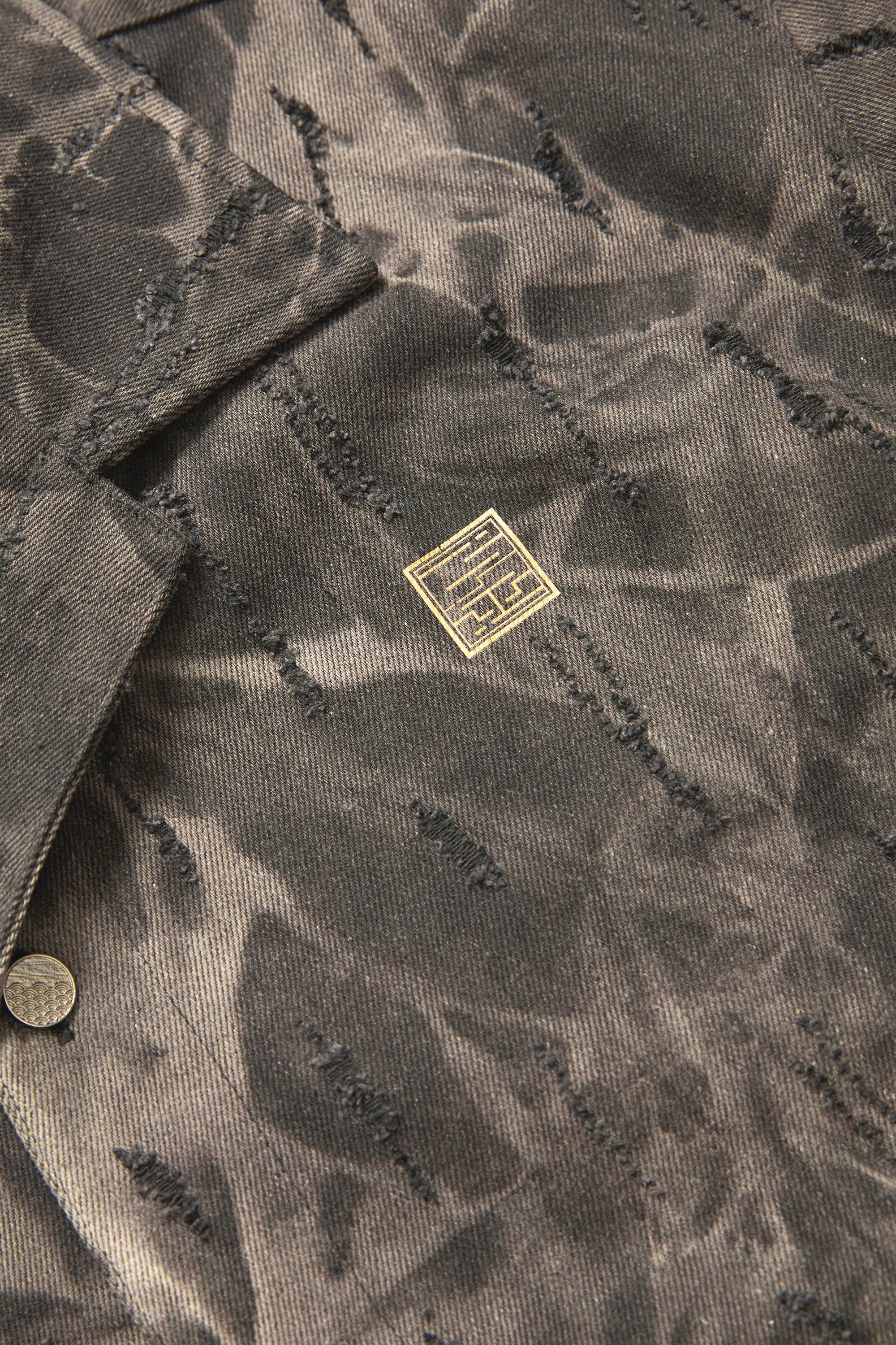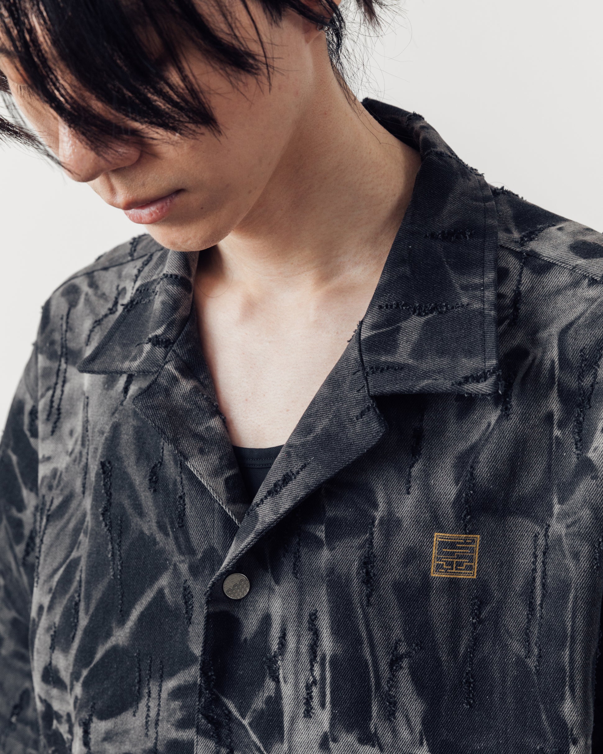 JINEASTERNAU タイダイクロッシェデニムシャツ - ブラックサンドデニム