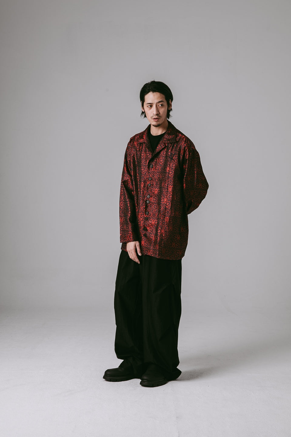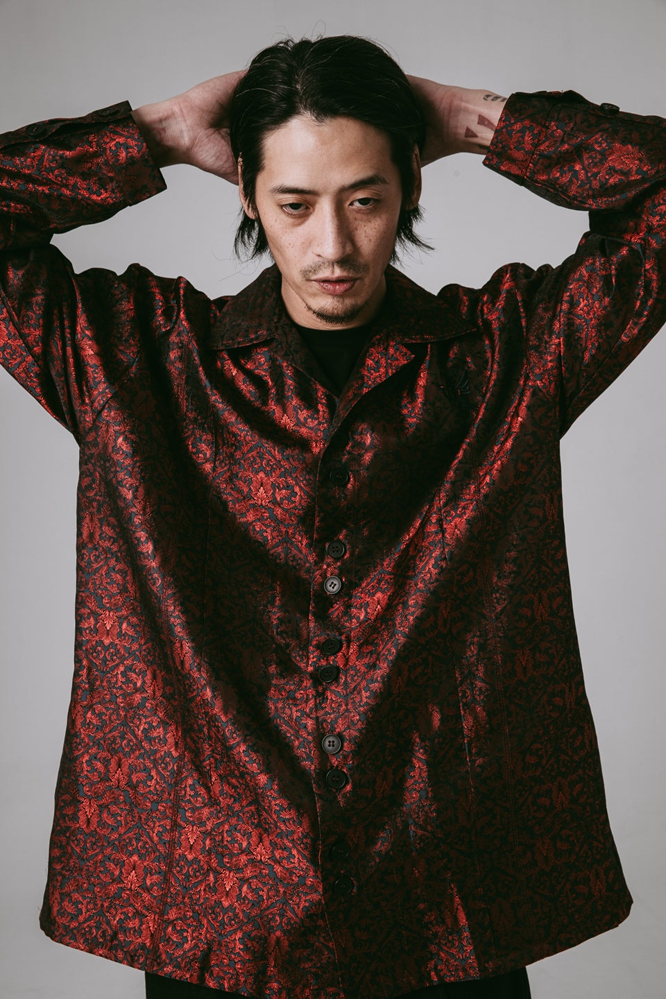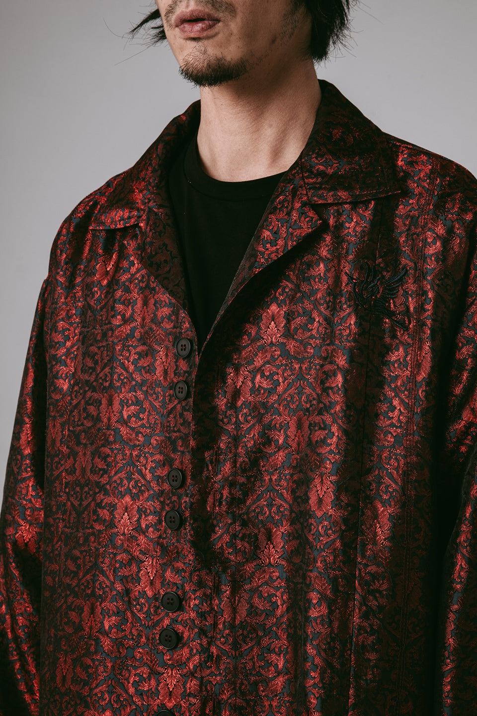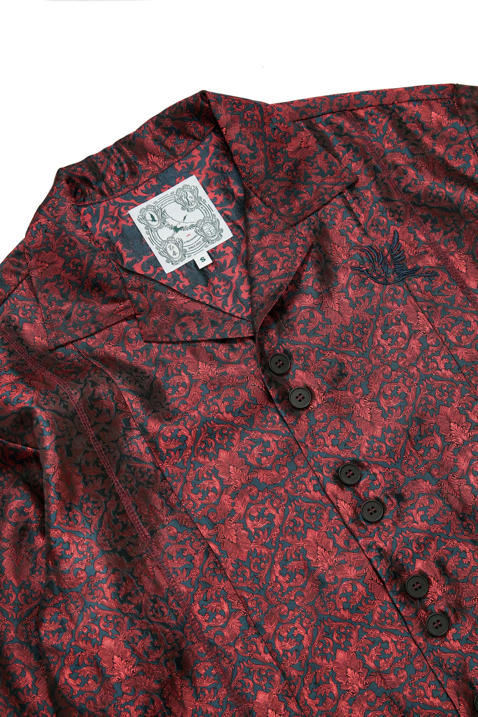 結構上延續品牌經典襯衫輪廓,前後剪接線強化立體度,兩側隱藏式插手袋平衡造型與機能。門襟特別設計雙扣設計,增加單品細節度外,更呼應東方服飾結構的儀式感。搭配胸前飾經典 JINEASTERNAU 鶴圖騰刺繡,象徵靜謐中的精神飛升。