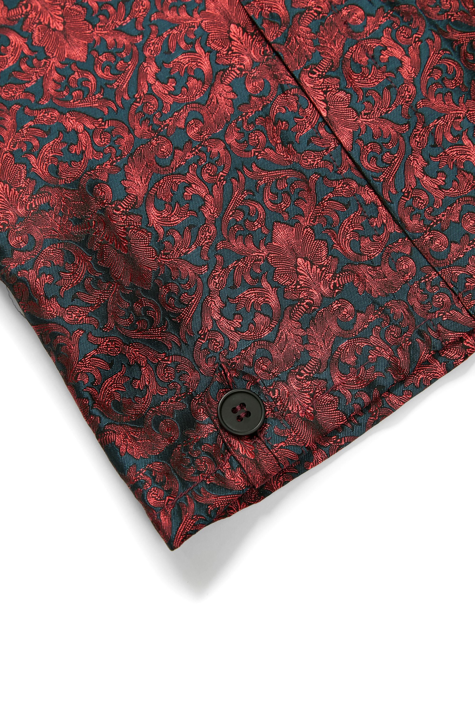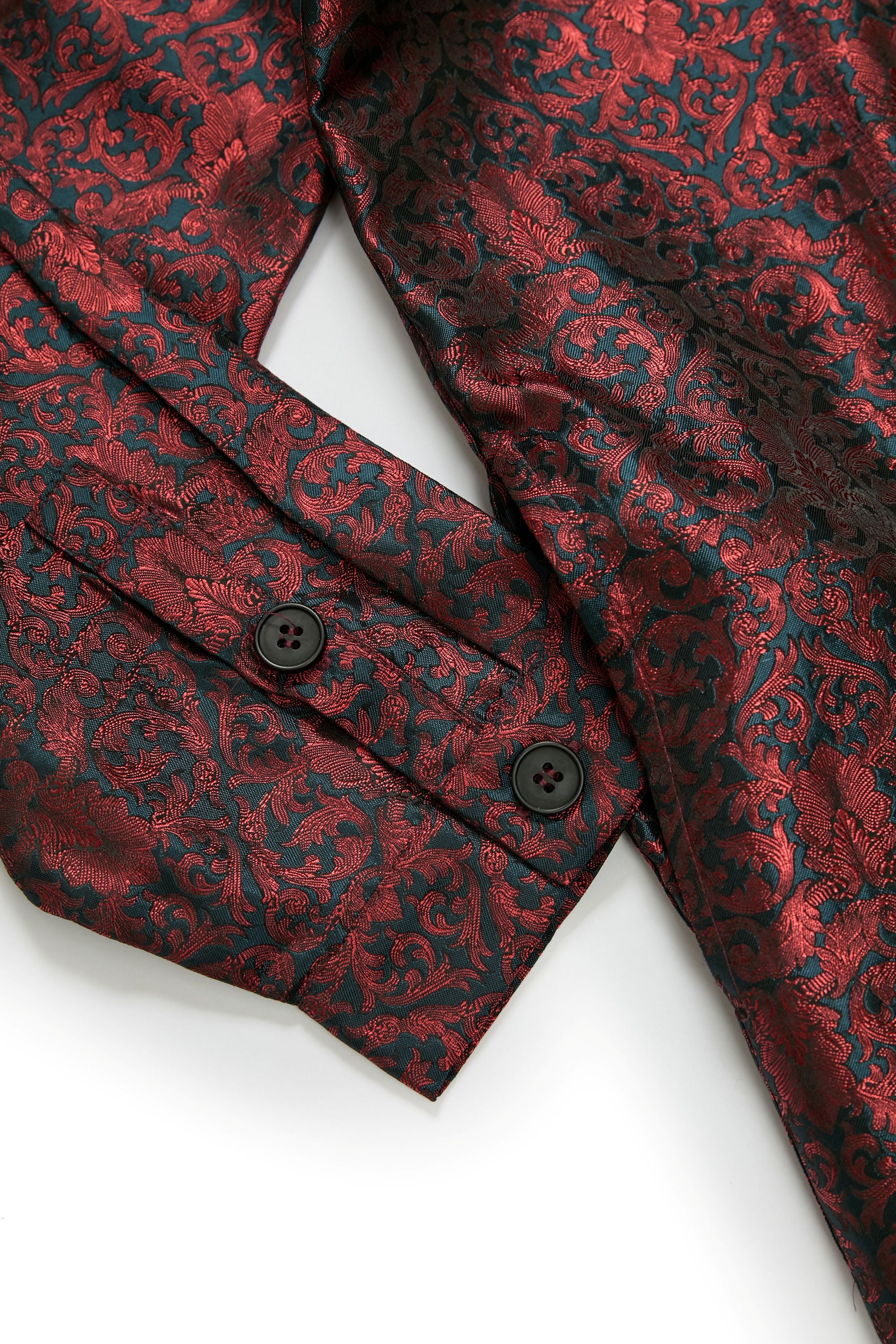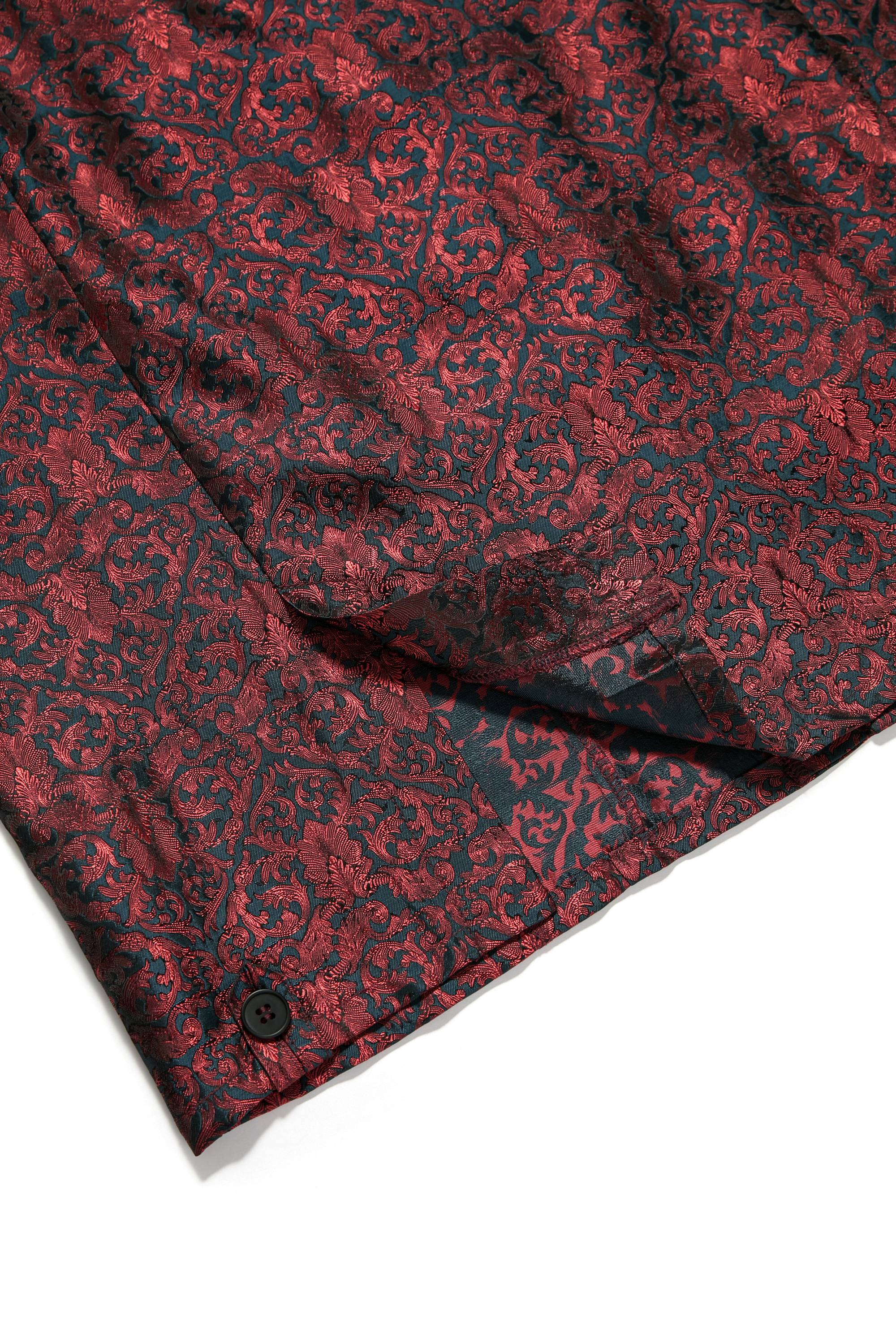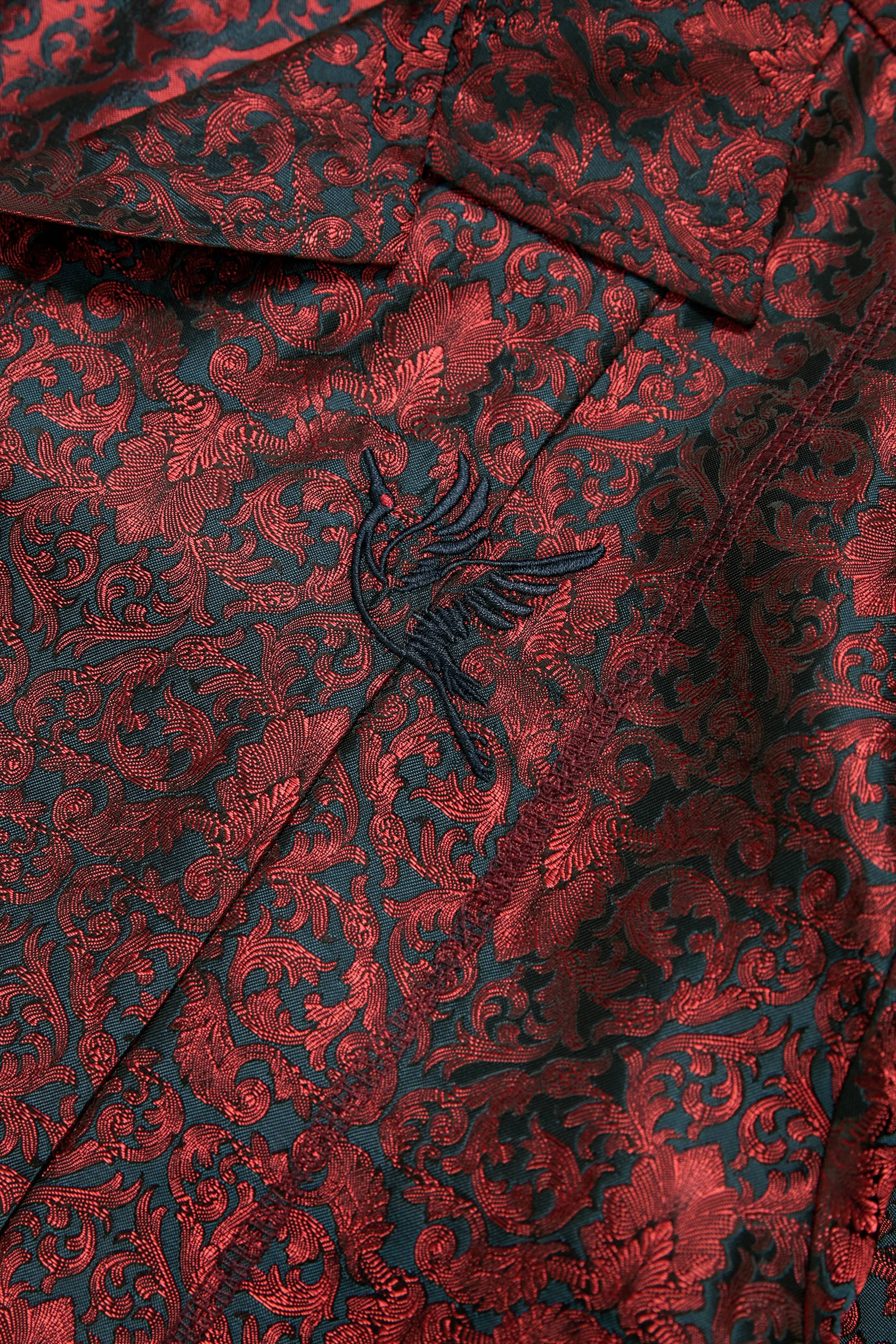 布料選用源自東漢末的忍冬紋纏枝織錦,忍冬俗稱金銀花,其紋樣以藤蔓捲曲為特徵,以盤旋蔓生的藤枝象徵生生不息之力,亦呼應“燃盡後仍延展”的精神核心。