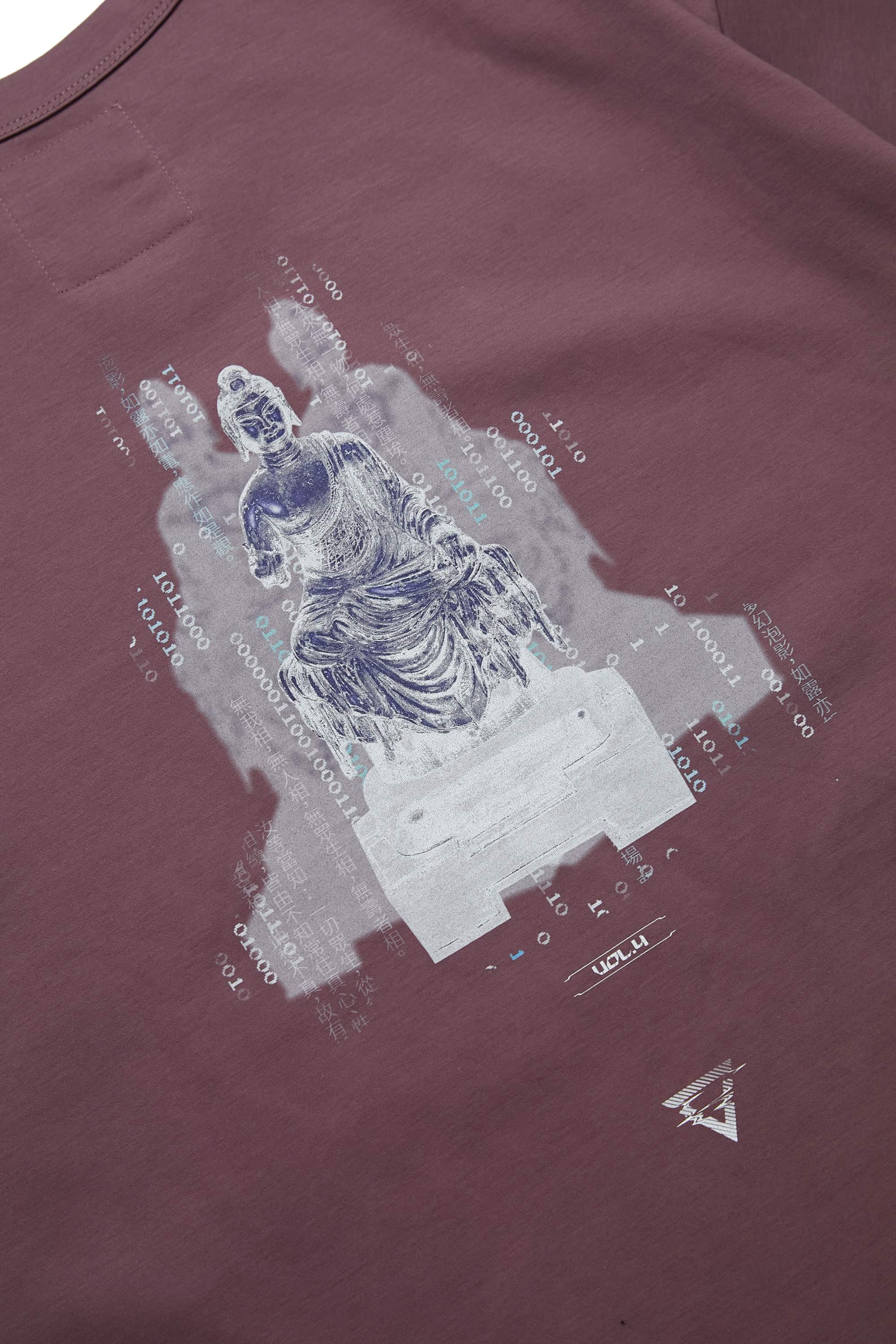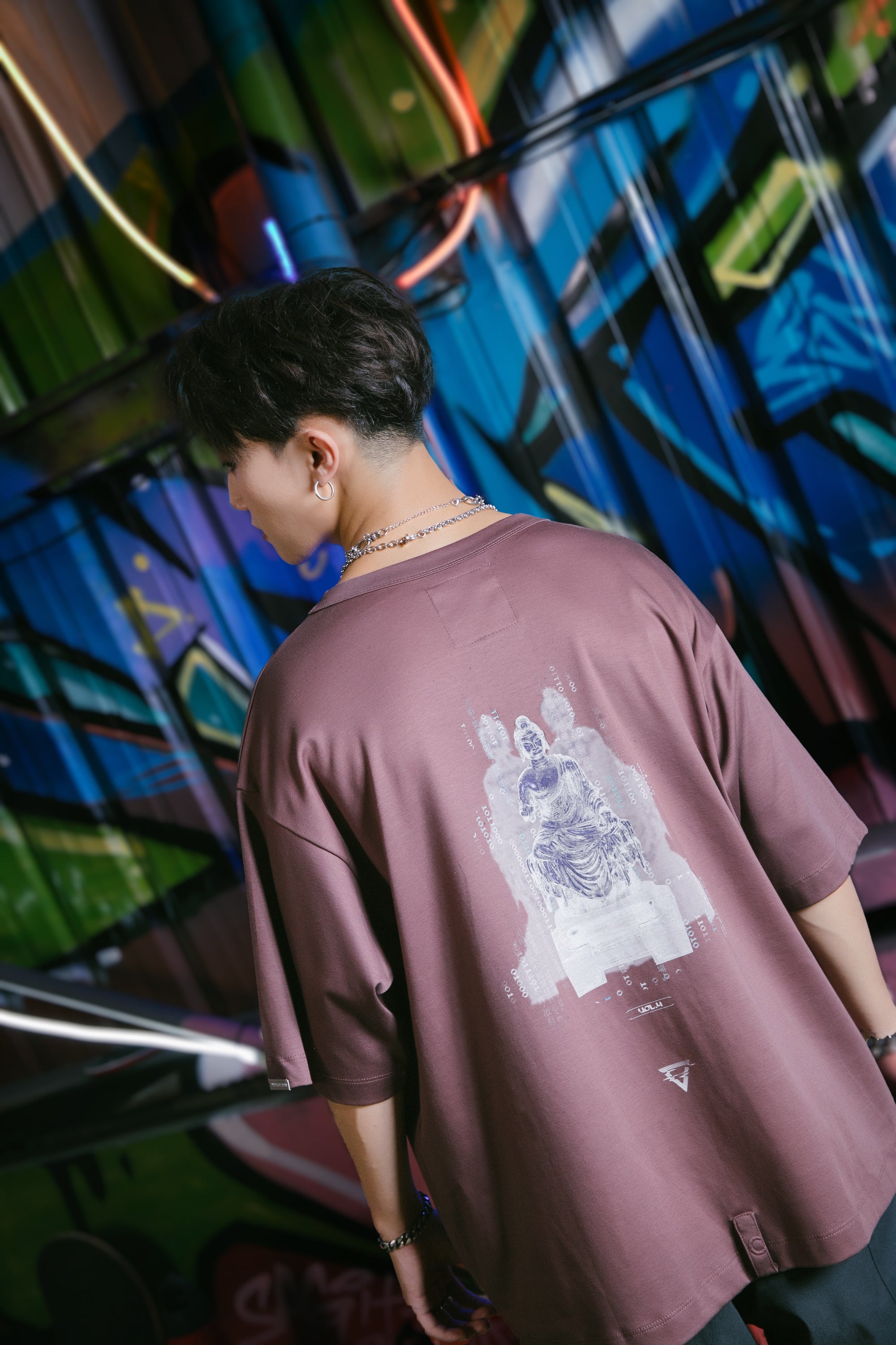 100%コットン製の、ゆったりとした着心地のトップス。胸元には控えめながらも立体的な「SSS CLASS」のレーザーエンボスロゴが施され、背後の仏像とのコントラストが際立ちます。一方は未来的なテクノロジーの語彙を、もう一方は古き良き時代の精神的な拠り所を想起させます。ブランド独自のアイアンクリップカフスが高級感を添え、この「原点回帰」の仏教ショートトップスに独特の雰囲気を添えています。