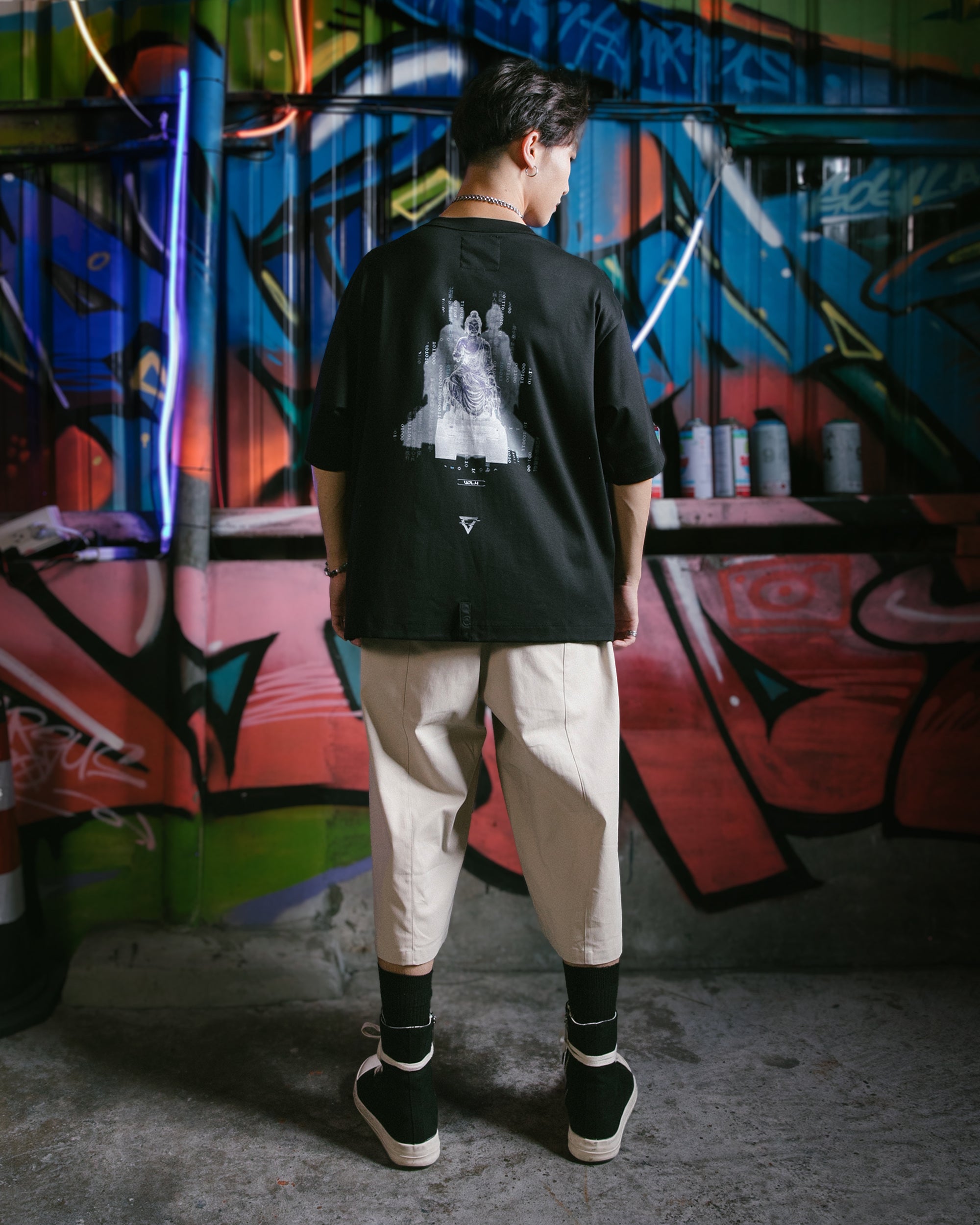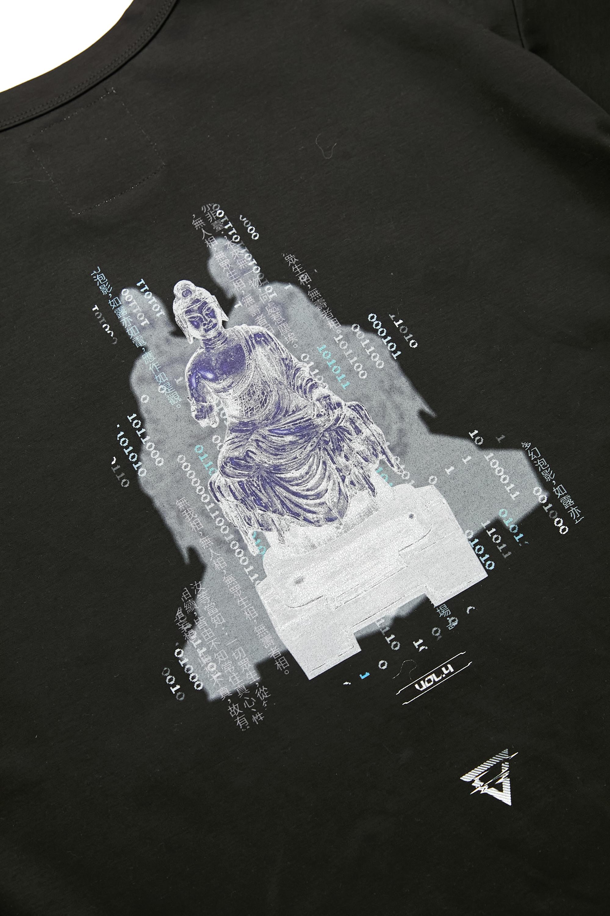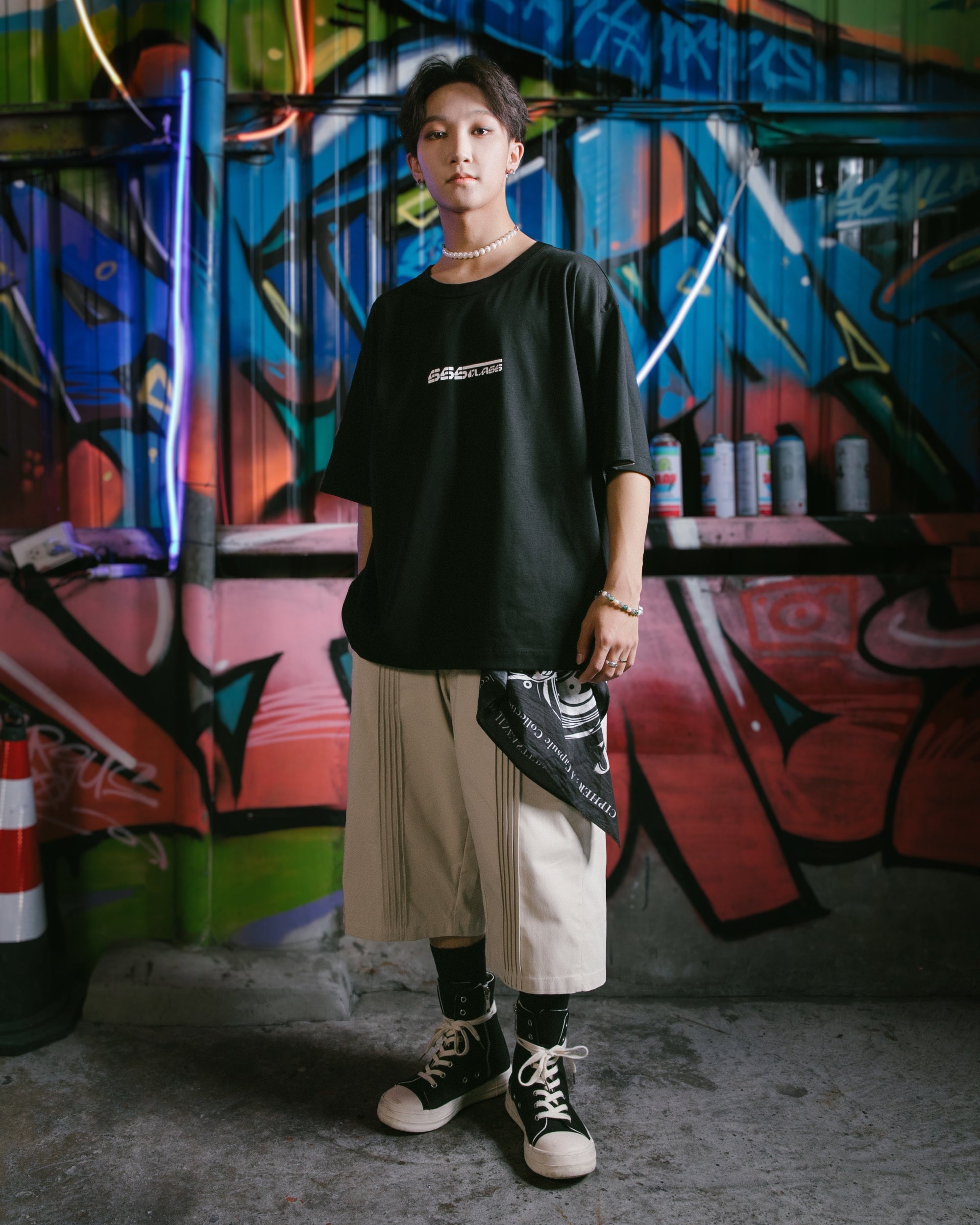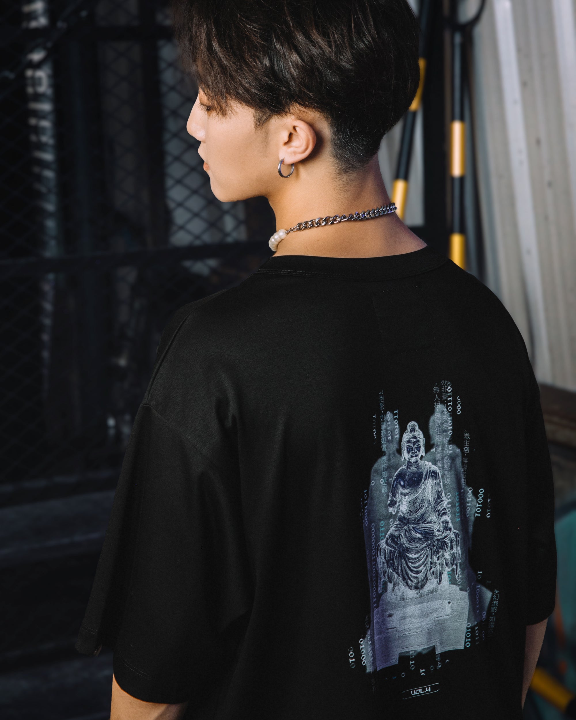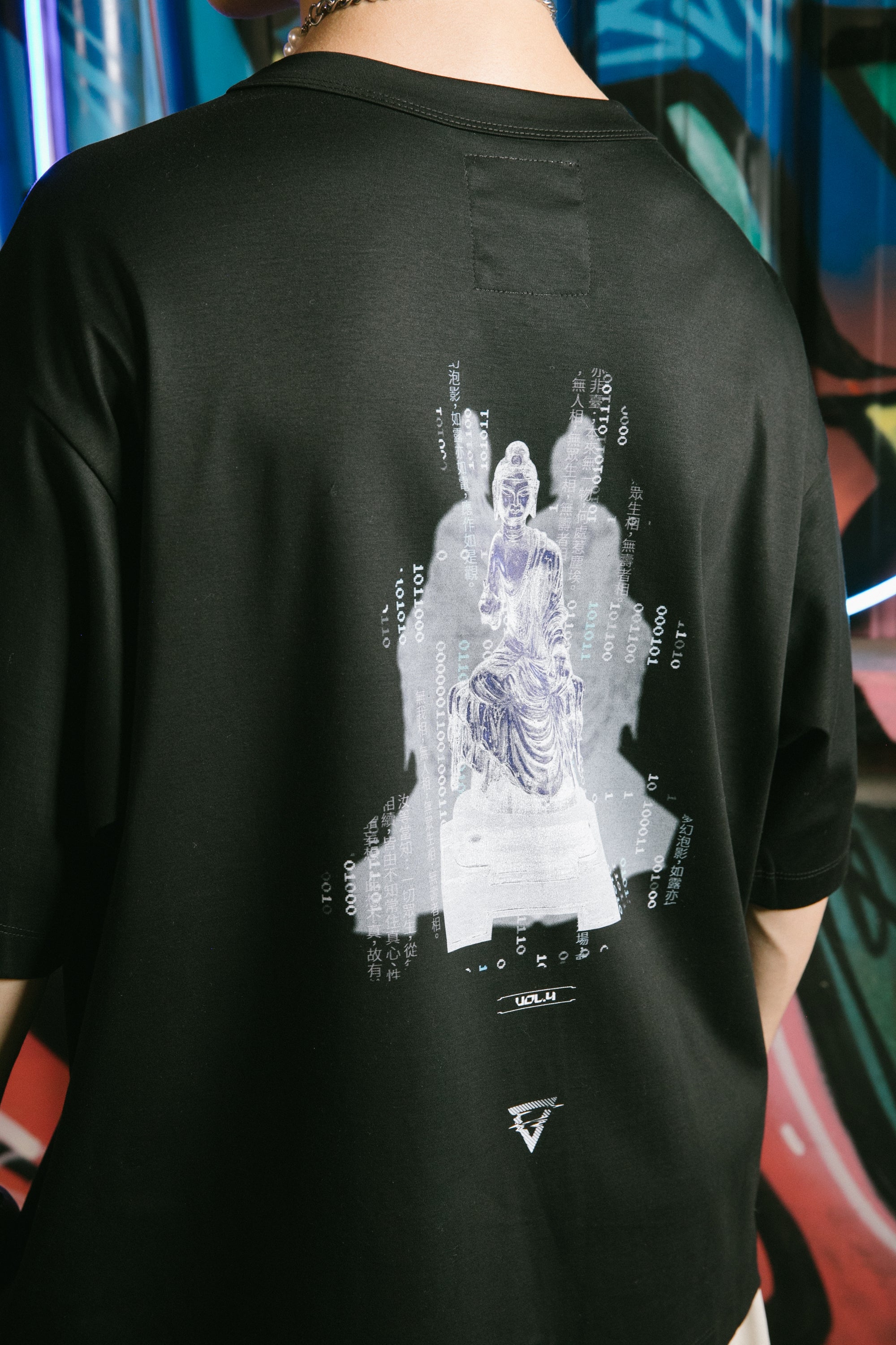 100%コットン製の、ゆったりとした着心地のトップス。胸元には控えめながらも立体的な「SSS CLASS」のレーザーエンボスロゴが施され、背後の仏像とのコントラストが際立ちます。一方は未来的なテクノロジーの語彙を、もう一方は古き良き時代の精神的な拠り所を想起させます。ブランド独自のアイアンクリップカフスが高級感を添え、この「原点回帰」の仏教ショートトップスに独特の雰囲気を添えています。